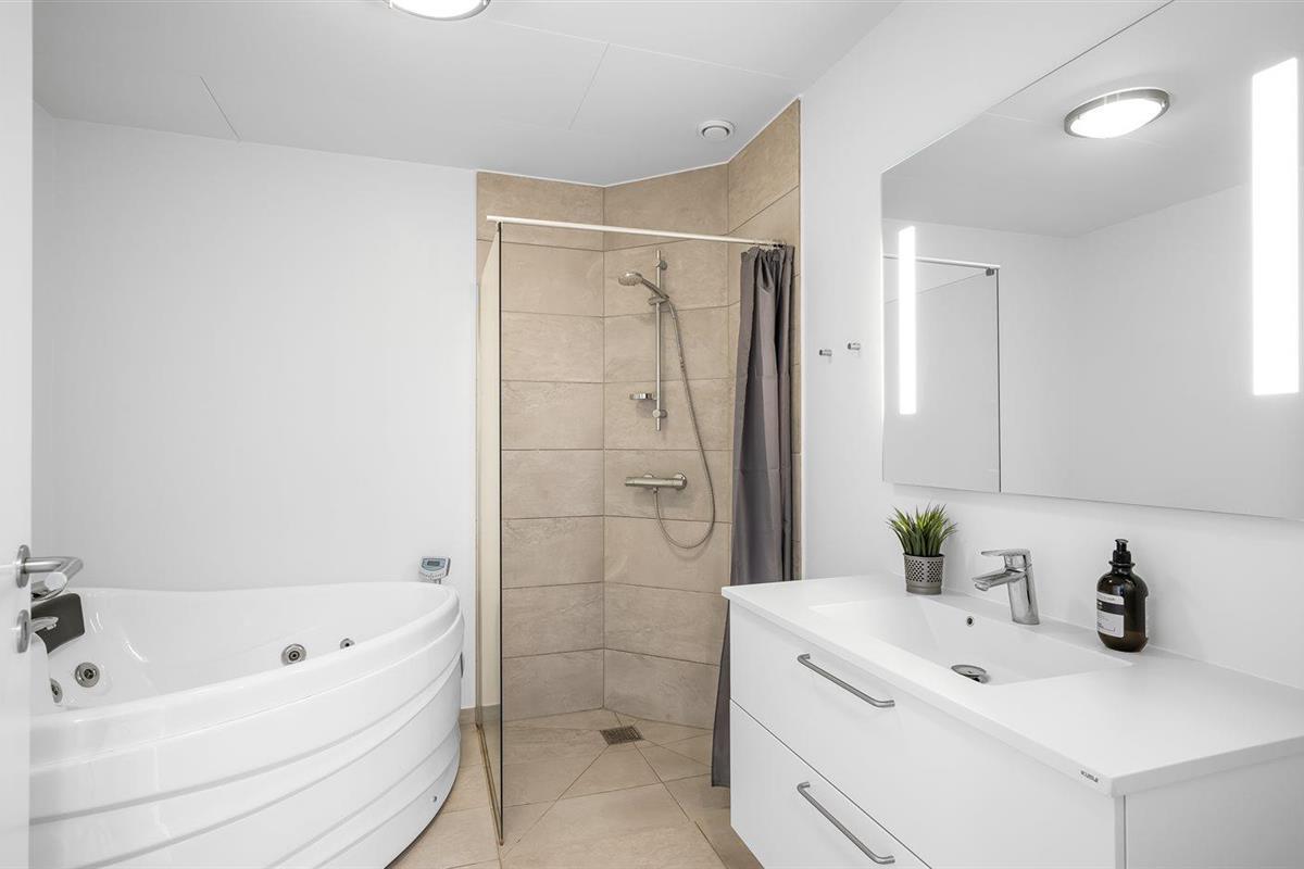 Er is 2 badkamers met douchehok en 2 toiletten. Er is vloerverwarming in 2 van de badkamers.