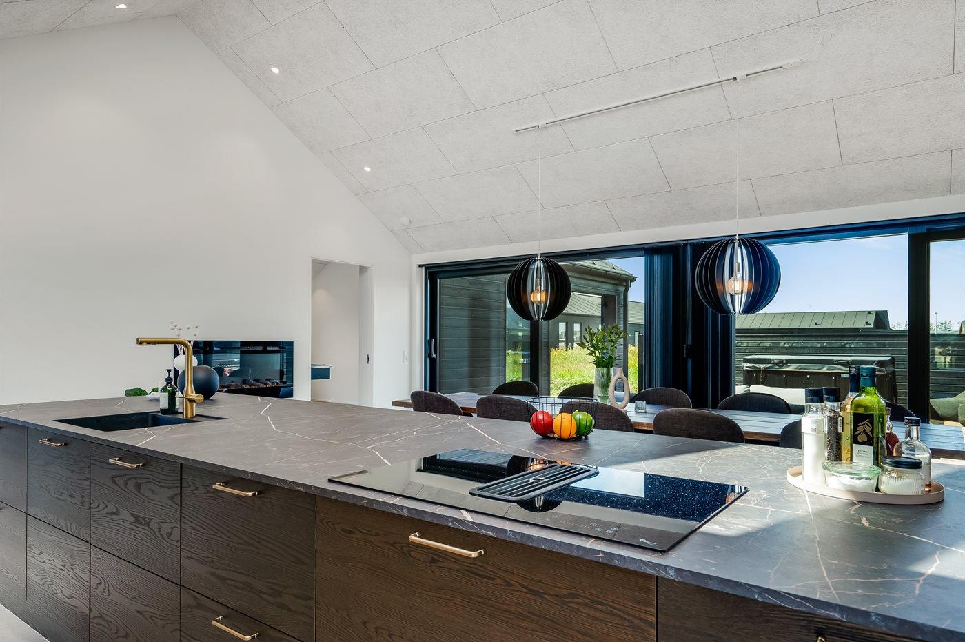 De keuken is uitgerust met koelkast Er is 4 inductiekookplaten, heteluchtoven, magnetron en vaatwasser.
