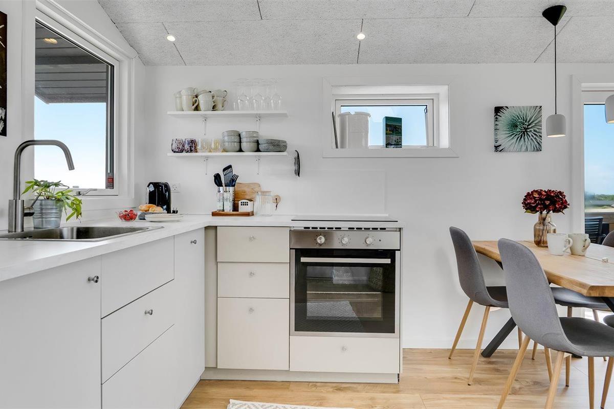 De keuken is uitgerust met koelkast Er is 4 inductiekookplaten, heteluchtoven en vaatwasser.