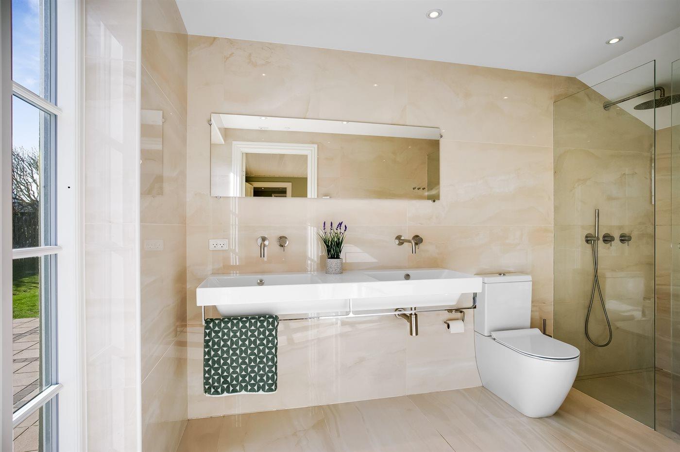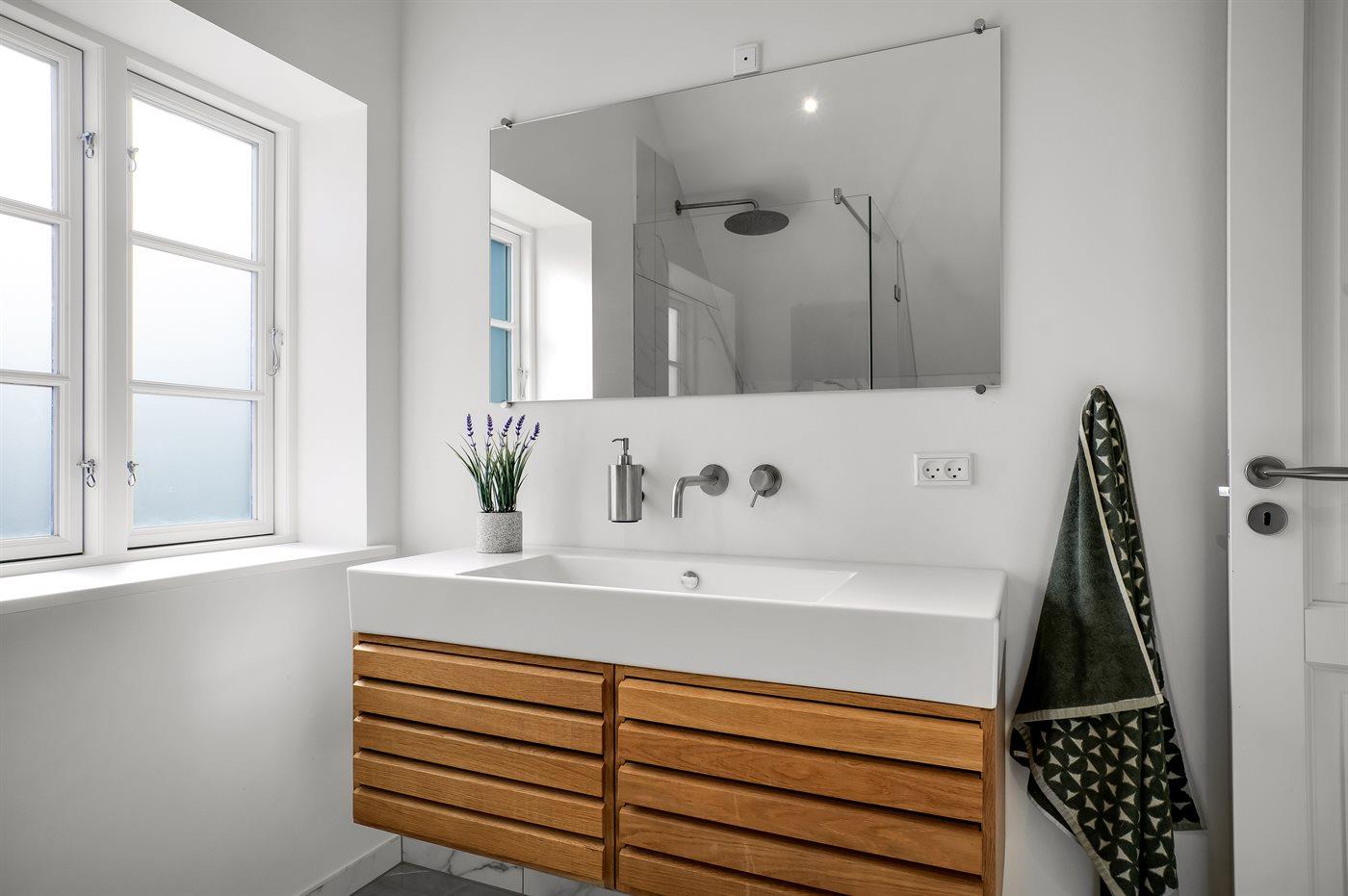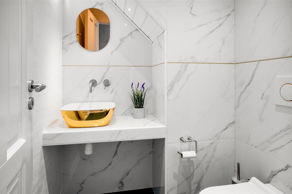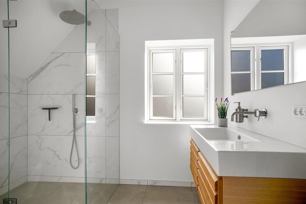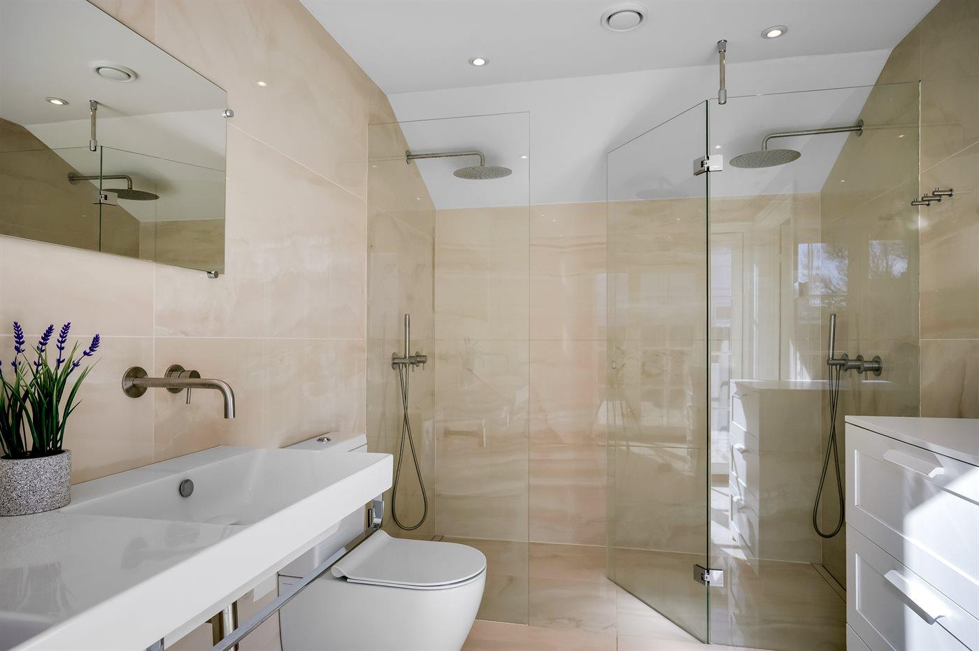 Er is 2 badkamers met douchehok en 3 toiletten, waarvan 1 gastentoilet. Er is vloerverwarming in 2 van de badkamers. Er is vloerverwarming in het gastentoilet.