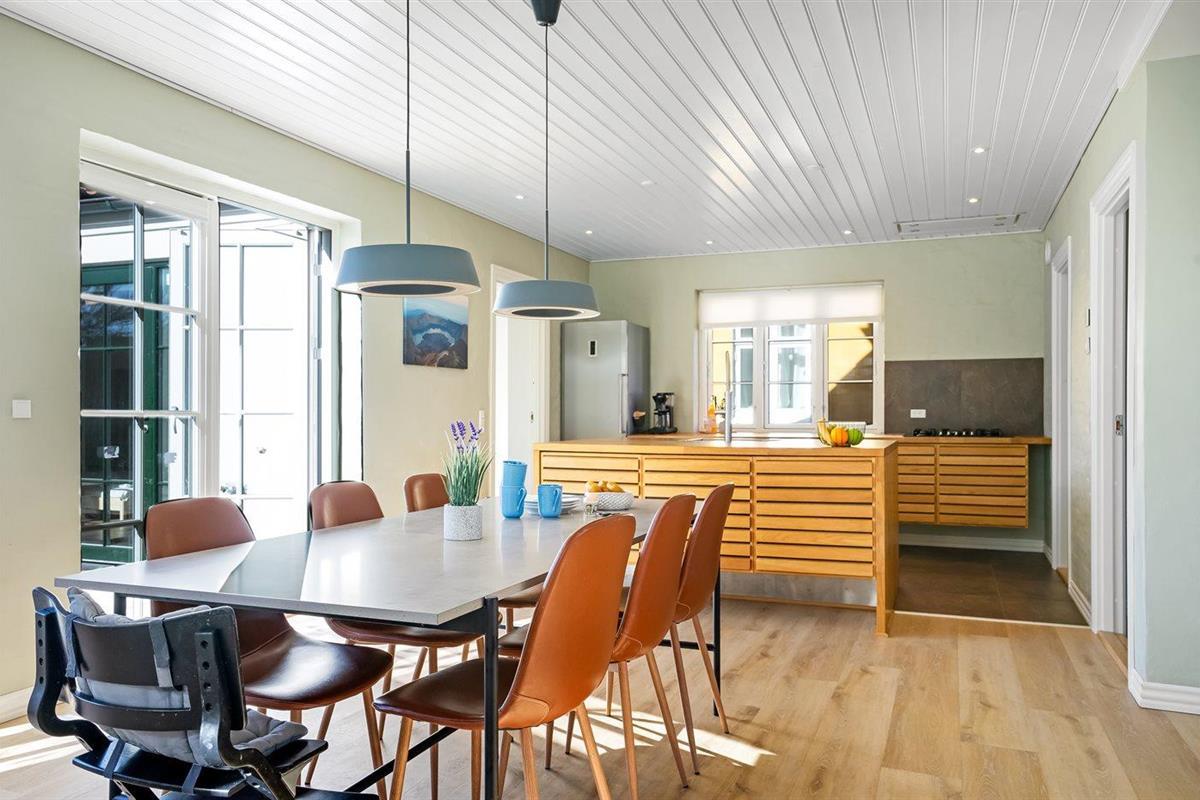 De keuken is uitgerust met koelkast Es is 4 gaspitten, heteluchtoven, magnetron en vaatwasser. Vloerverwarming in de keuken.