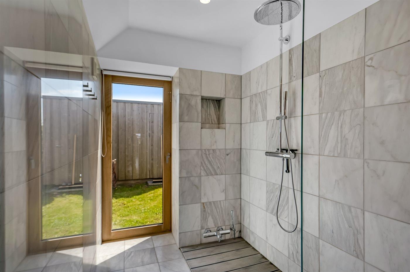 Er is 2 badkamers met douchehok en 2 toiletten. Er is vloerverwarming in 2 van de badkamers.
