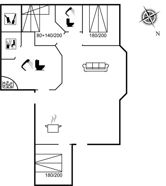 Er is 2 badkamers met douchehok en 2 toiletten. Er is vloerverwarming in 2 van de badkamers. De sauna biedt de gelegenheid tot ontspanning.