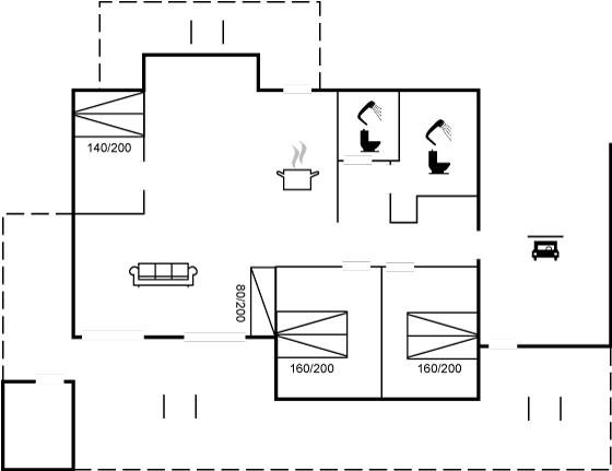 De vakantiewoning is gelegen op een 270 m² groot Duingrond. Afstand tot de zee 500 m. Dichtstbijzijnde winkel 400 m. Bij de vakantiewoning hoort beschut terras. U kunt buiten een maaltijd bereiden in de buitenkeuken. Barbecue. Carport ter beschikking. Parkeerplaats bij het huis.