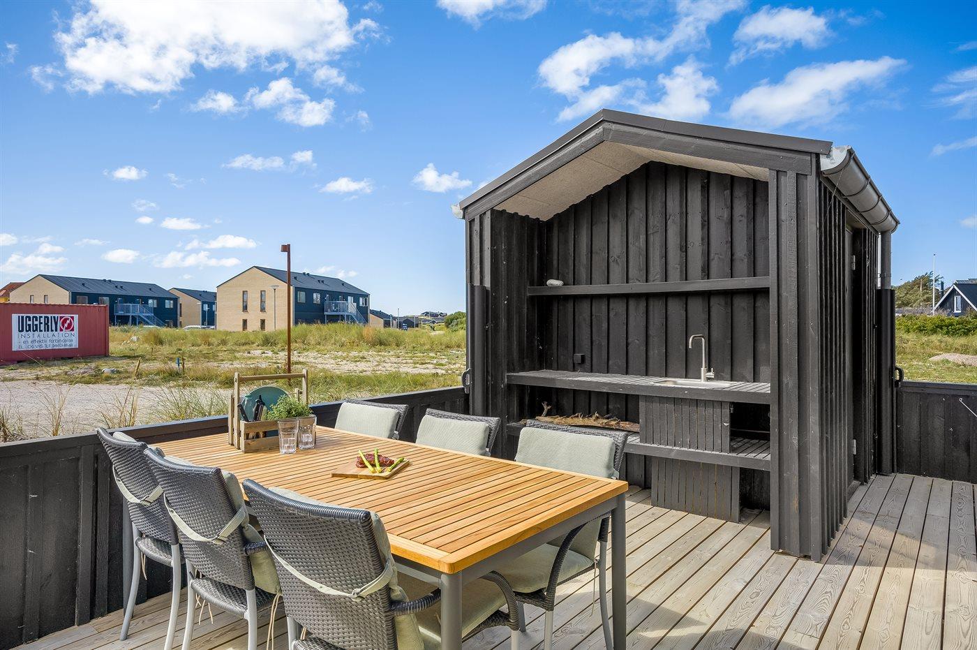 Modern vakantiehuis in Løkken met zeezicht, buitenkeuken en vloerverwarming, perfect voor een ontspannen verblijf.