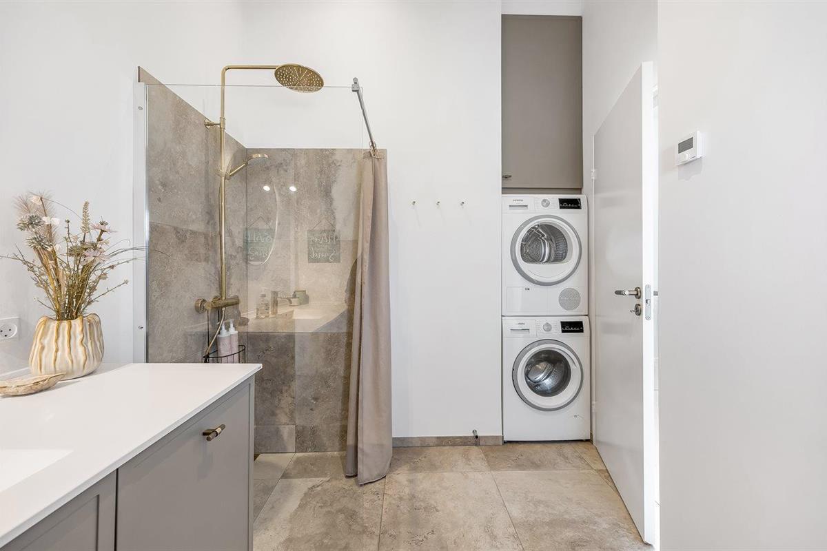Er is 1 badkamer met douchehok en 2 toiletten, waarvan 1 gastentoilet. Er is vloerverwarming in 1 badkamer.