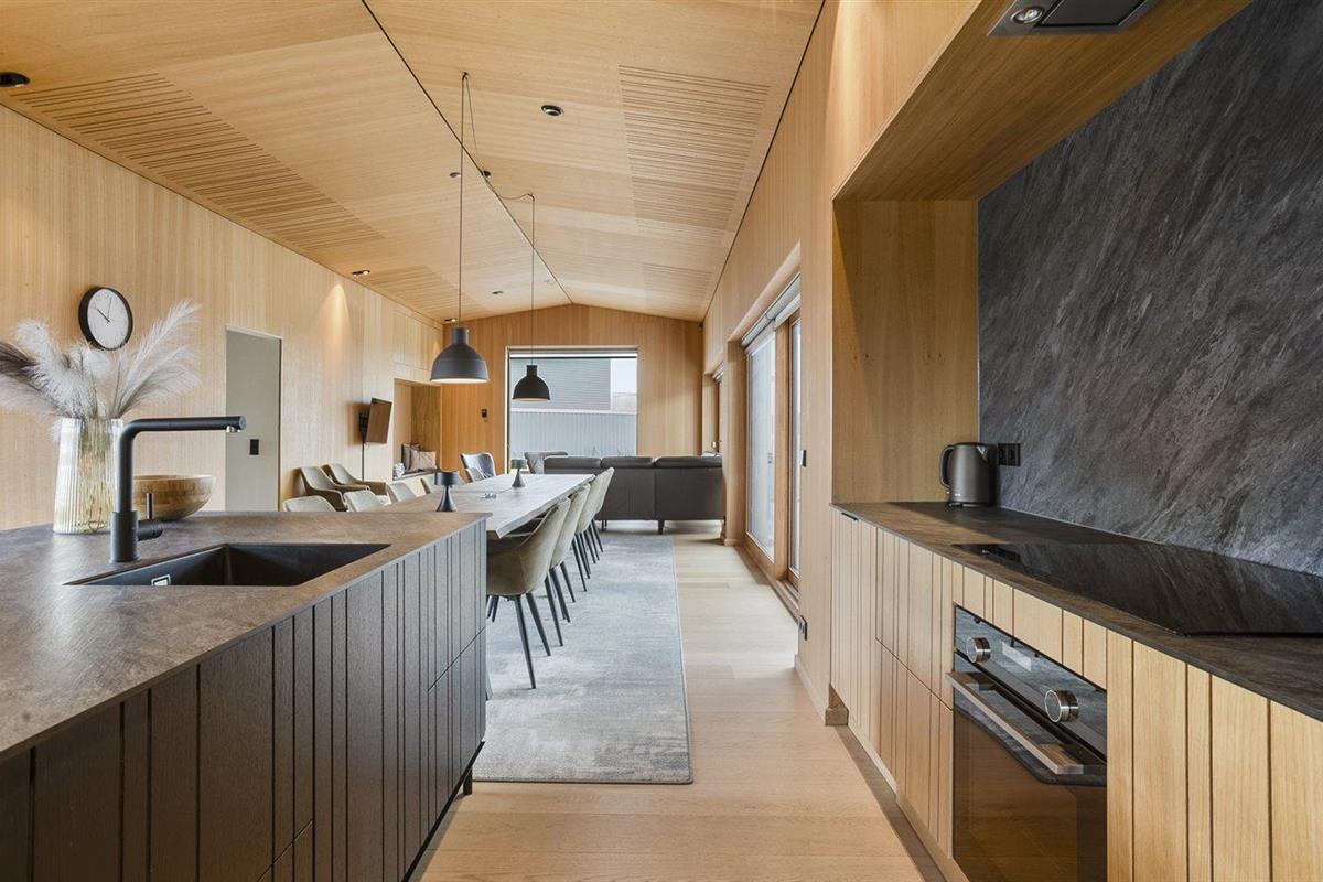 De keuken is uitgerust met koelkast Er is 4 inductiekookplaten, heteluchtoven en vaatwasser.