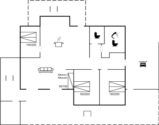 Er zijn in totaal 3 slaapkamers. De slaapplaatsen zijn als volgt verdeeld: 6 slaapplaatsen in tweepersoonsbedden. 1 slaapplaats in alkoof. - 1 van deze slaapplaatsen bevindet zich in de huiskamer.