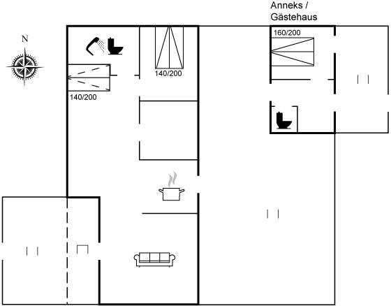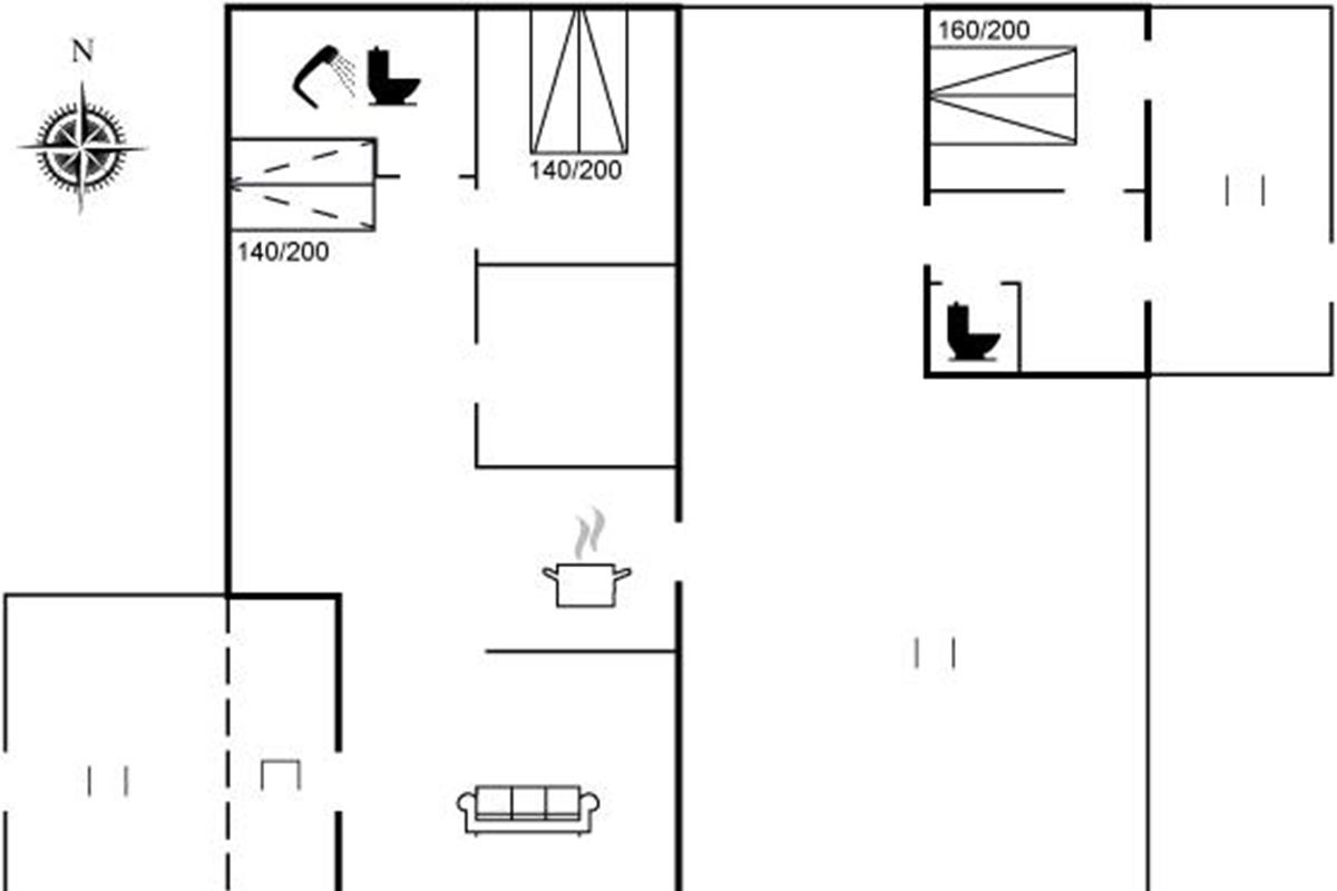 De vakantiewoning is gelegen op een 3300 m² groot natuural grond. Afstand tot de zee 300 m. Dichtstbijzijnde winkel 3000 m. Bij de vakantiewoning hoort 65 m² terras en 10 m² groot overdekt terras - waarvan in totaal 75 m² beschut terras. Zandbak. Parkeerplaats bij het huis.