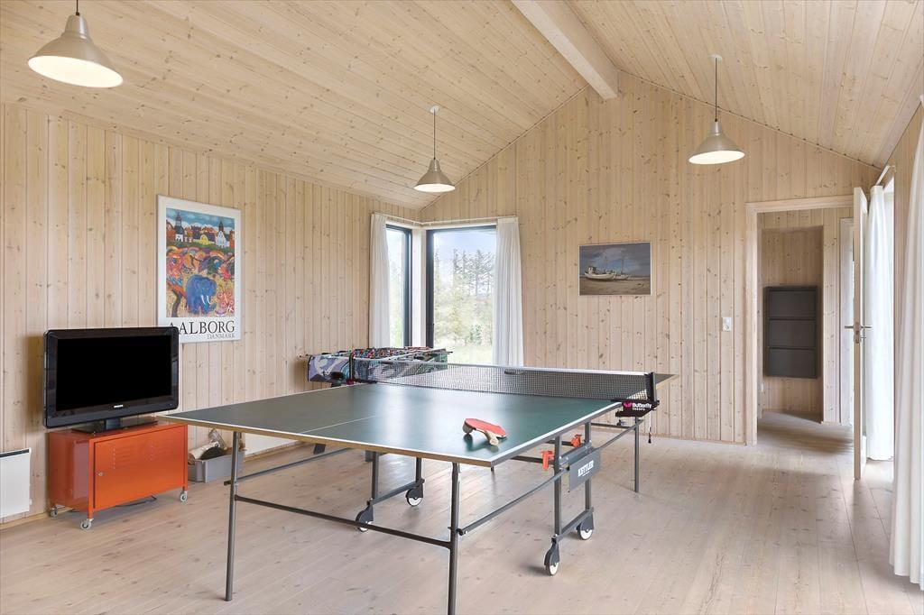 Das Ferienhaus ist modern und stilvoll eingerichtet und legt großen Wert auf lichtdurchflutete, großzügige Räume. Der Grundriss ist durchdacht, und es gibt Platz für alle. Das Haus verfügt über vier komfortable Schlafzimmer, sodass die ganze Familie gut schlafen kann, sowie zwei Badezimmer – eines mit einem Spa, das nach einem aktiven Tag zur Entspannung einlädt. Im Wohnzimmer sorgt der warme Kamin für eine gemütliche Atmosphäre, und die großen Fenster lassen viel Tageslicht herein. Für die Aktiven gibt es einen tollen Aktivitätsraum mit einem Tischtennistisch, der zu spannenden Spielen und viel Spaß einlädt. Egal, ob Sie eine ruhige Zeit mit einem guten Buch oder ein lebendiges Tischtennisturnier verbringen möchten, dieses Haus bietet beides.