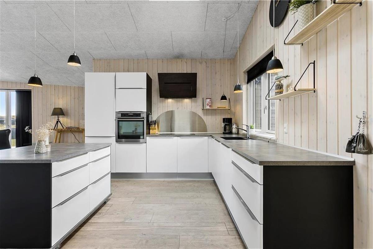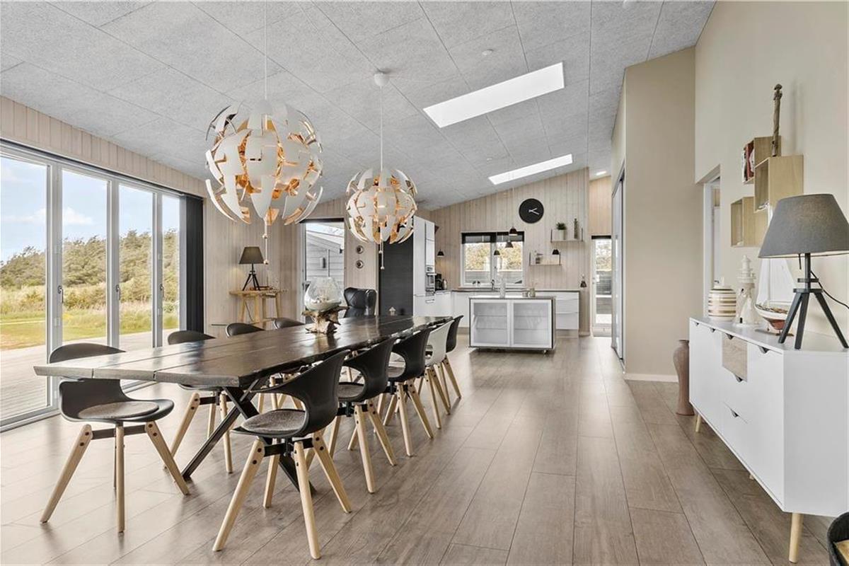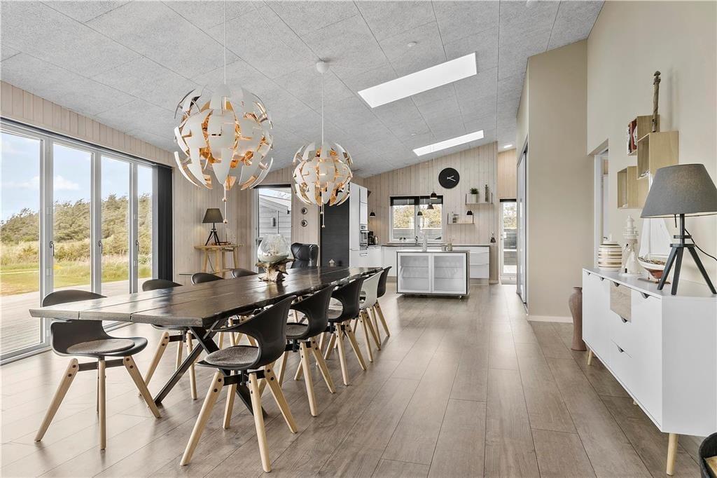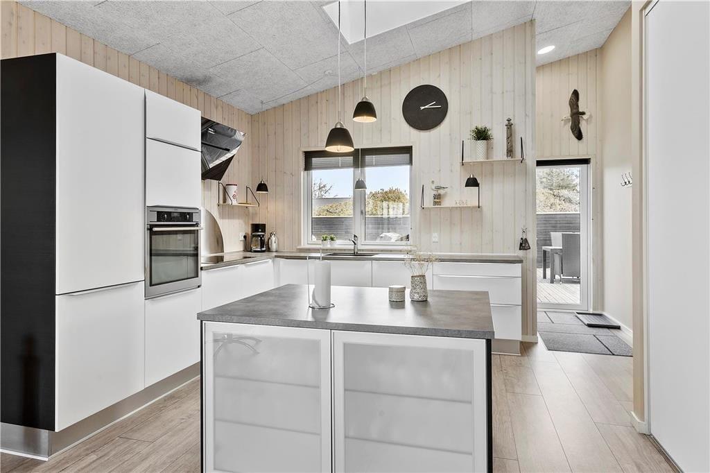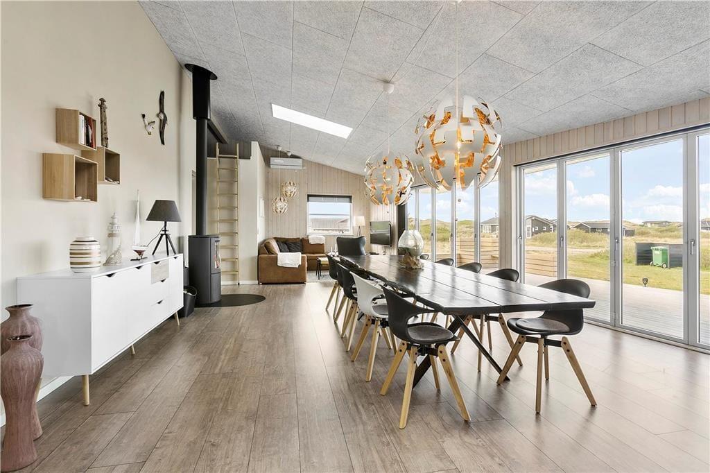 Das Ferienhaus wurde 2016 in besten Materialien erbaut und in höchster Qualität eingerichtet. Die Architektur ist innovativ und modern – mit einem Schlafzimmer- und Badebereich entlang der Südseite, während sich die offene Küche und der Wohnbereich auf der Nordseite des Hauses befinden. In diesem Teil des Hauses reicht die Decke bis zum Giebel, und große Fensterfronten lassen das herrliche Licht der Nordsee hinein, das zusammen mit dem Holzofen eine gemütliche Atmosphäre schafft. Mit drei Schlafzimmern, einem Hems mit zwei Matratzen und zwei Badezimmern mit Duschkabinen bietet das Haus Platz für bis zu sechs Personen – ideal für Familienurlaube oder für zwei bis drei Paare, die gemeinsam diese schöne Region Nordjütlands erkunden möchten. Das Haus ist mit moderner Ausstattung versehen, die den Urlaub zu einem unbeschwerten Erlebnis macht – perfekt für entspannte Qualitätszeit mit den Liebsten: WLAN, Satellitenfernsehen, Wärmepumpe und hochwertige Haushaltsgeräte. Bitte bring nur deinen eigenen Laptop oder ein Tablet mit – so kannst du dich auch schnell über die vielen Sehenswürdigkeiten und Ausflugsziele in der Umgebung informieren.