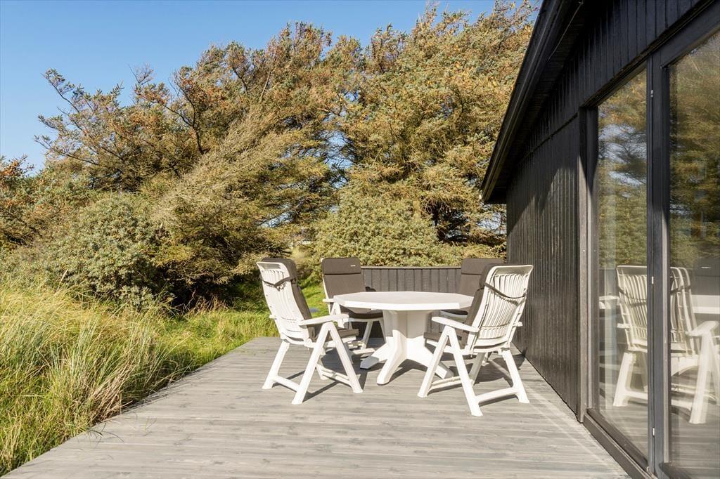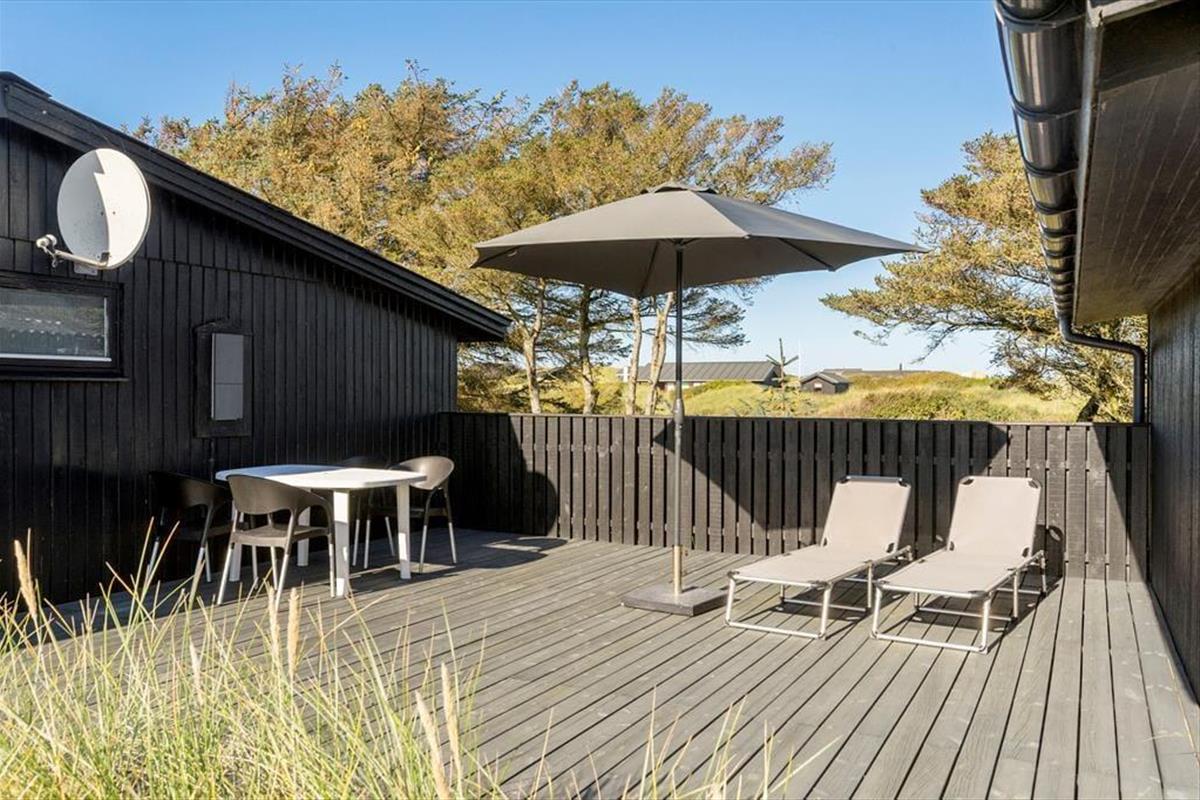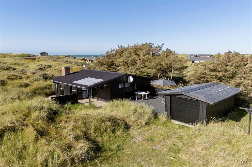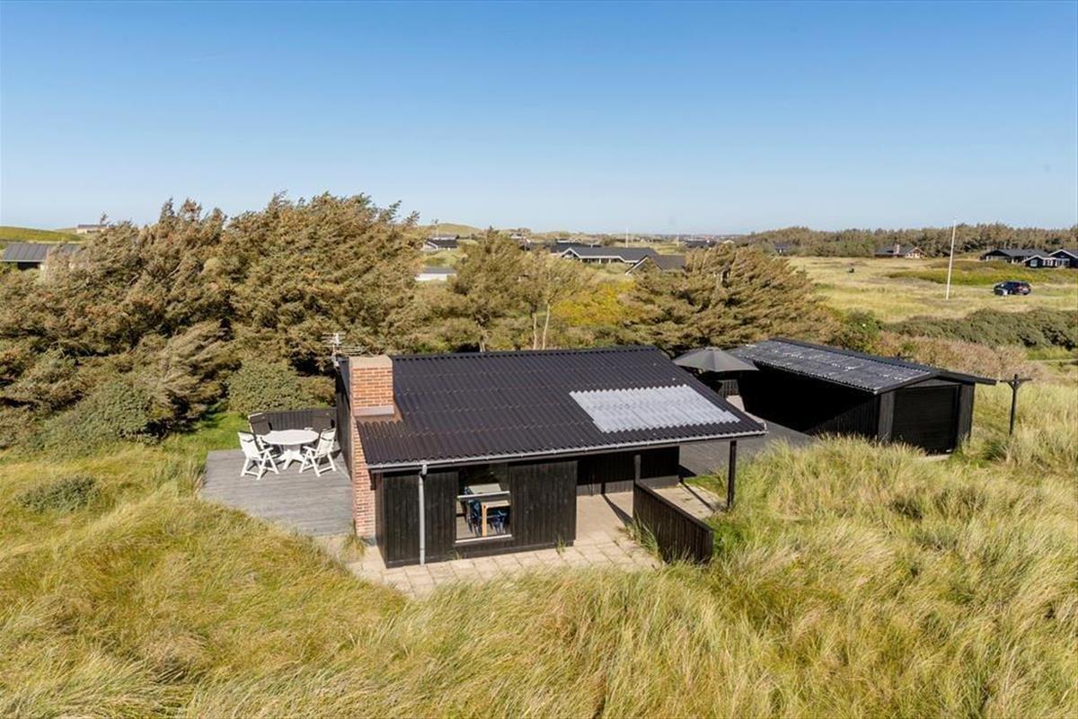 Das Haus liegt auf einem schönen Naturgrundstück mitten in den Dünen, mit einer schönen Aussicht über die Landschaft. Das Haus liegt ruhig und völlig ungestört. Zur Nordsee sind es nur 250 Meter und man gelangt über einen kleinen Pfad hinunter zum Strand. Auf beiden Seiten des Hauses gibt es eine schöne Terrasse und vom Wohnzimmer aus gelangt man auf eine überdachte Terrasse, welche zu gemütlichen Grillabenden im Windschatten einlädt. Gartenmöbel, Grills und Liegestühle stehen Ihnen zur Verfügung.