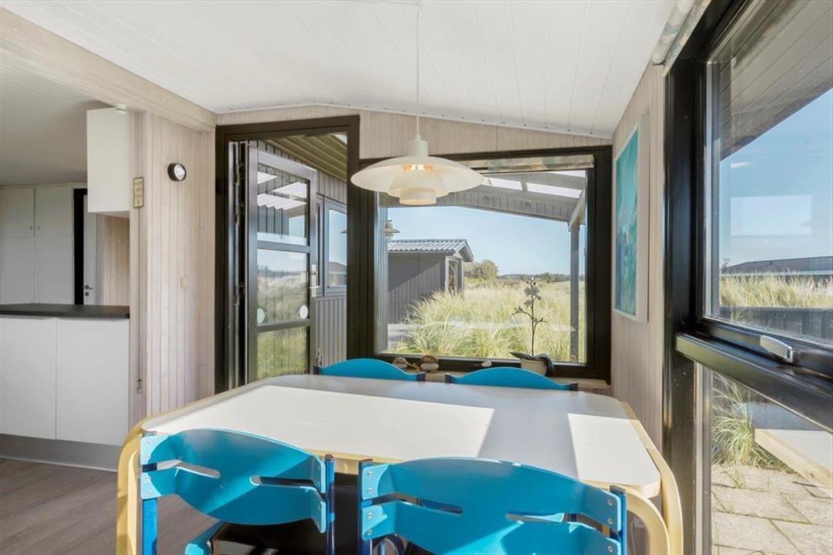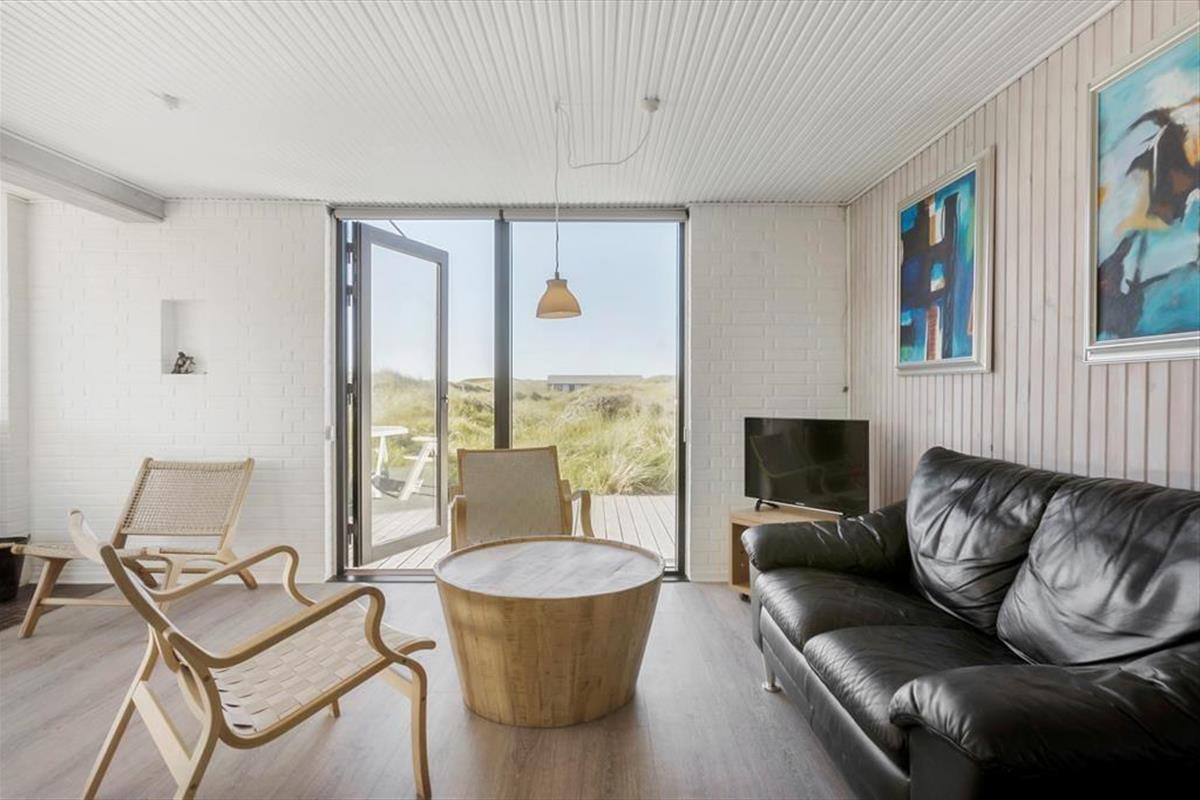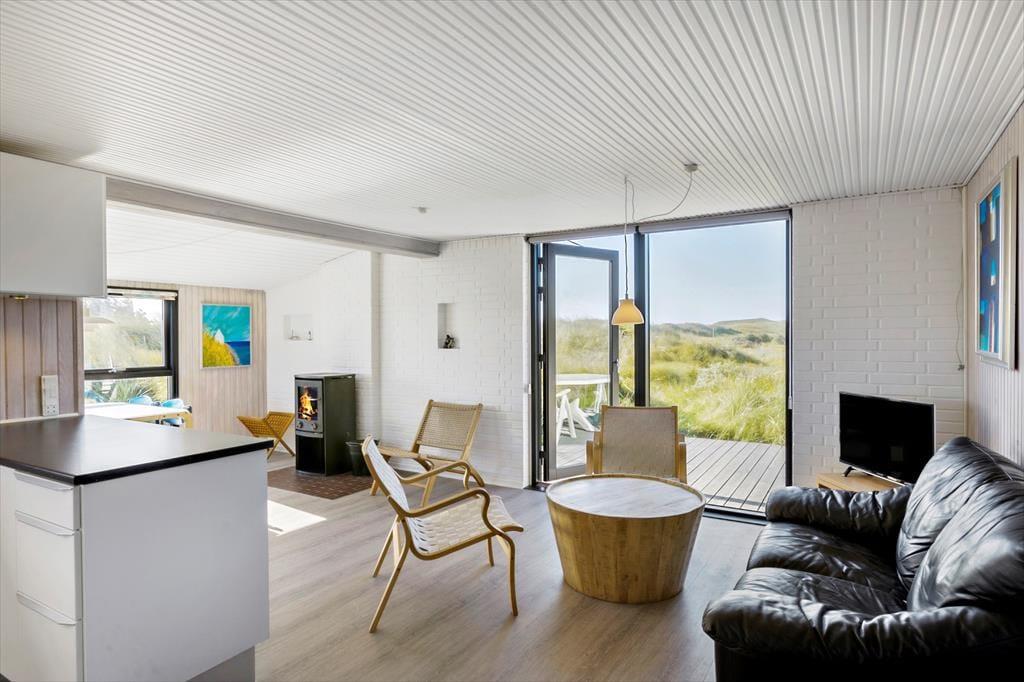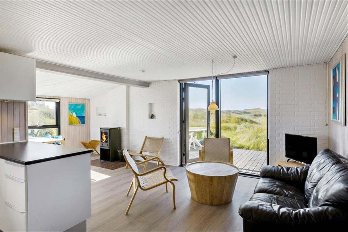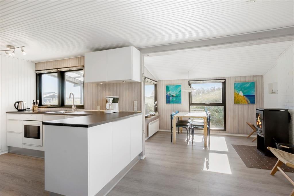 Dieses gemütliche und geschmackvoll eingerichtete Haus ist 63m2 gross. Aufgrund der Grösse empfehlen wir daher, nur einen Hund mitzubringen. Das Haus ist hell, gepflegt und ausgestattet mit einem grossen offenen Aufenthaltsraum, welcher sowohl eine praktisch eingerichtete Küche, einen Essbereich vor dem Kamin als auch einer gemütlichen Fernsehecke. Die vielen Fenster lassen viel Licht hinein und geben die Möglichkeit, die atemberaubende Natur, in welcher das Haus belegen ist, zu geniessen. Vom Wohnbereich kommen Sie direkt hinaus auf die Terrasse mitten in den Dünen. Das Haus verfügt über zwei Zimmer, eines davon mit Doppelbett, das andere mit einem Etagenbett. Daher eignet sich das Haus am besten für ein Paar oder eine kleine Familie, welche eine schöne Zeit zusammen verbringen möchten. Waschmaschine, Geschirrspülmaschine, sowie drahtloses Internet können Ihnen den Urlaub noch angenehmer machen.