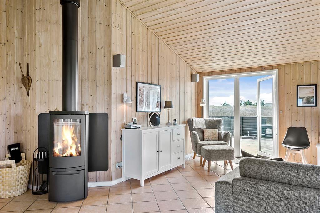 Das Ferienhaus ist mit hochwertigen Möbeln eingerichtet. Der durchgängige Stil und die sorgfältige Farbwahl sorgen für eine positive Stimmung. Das Haus ist sehr geräumig und bestens dafür geeignet, dass die ganze Familie darin eine tolle Zeit miteinander verbringen kann. Die Küche ist durch eine halbhohe Wand vom Ess- und Wohnbereich getrennt. Der Raum ist sehr hell und offen und der durchgängige Kachelboden ist mit einer Fußbodenheizung ausgestattet. Damit Sie garantiert nicht frieren, können Sie den Raum ebenfalls mit der Wärmepumpe oder natürlich dem gemütlichen Kaminofen aufwärmen – ideal für kalte Wintertage. Das Haus verfügt über zwei gute Badezimmer, von denen besonders eines sehr geräumig und mit Sauna und Whirlpool ausgestattet ist. Das Haus bietet insgesamt acht Schlafplätze, die sich auf vier Schlafzimmer verteilen; drei davon ausgestattet mit Doppelbetten, sowie einem „Kinderzimmer“ mit zwei Einzelbetten und Zugang zur Oberetage, die über zwei zusätzliche Matratzen verfügt – mit Sicherheit ein Hit für die Kleinen.