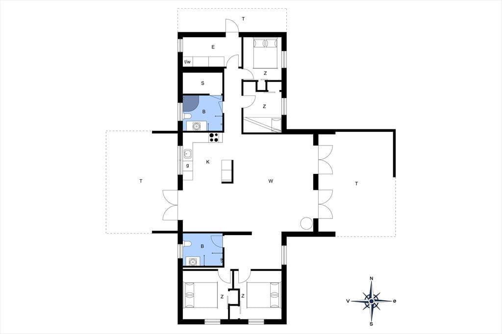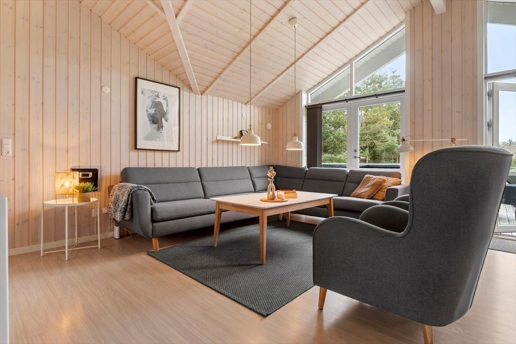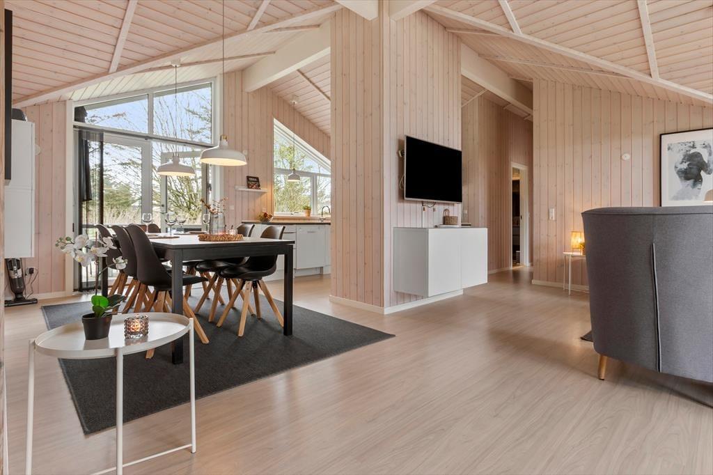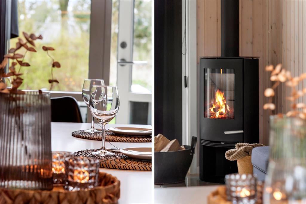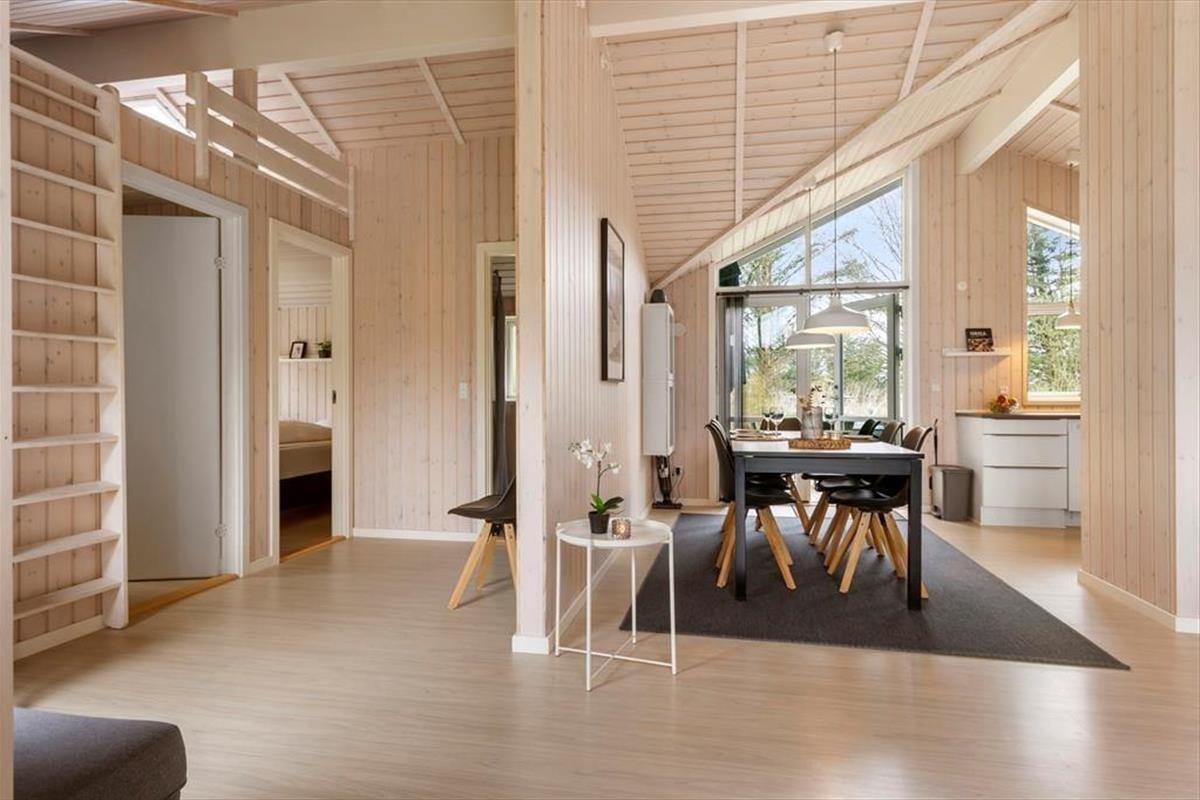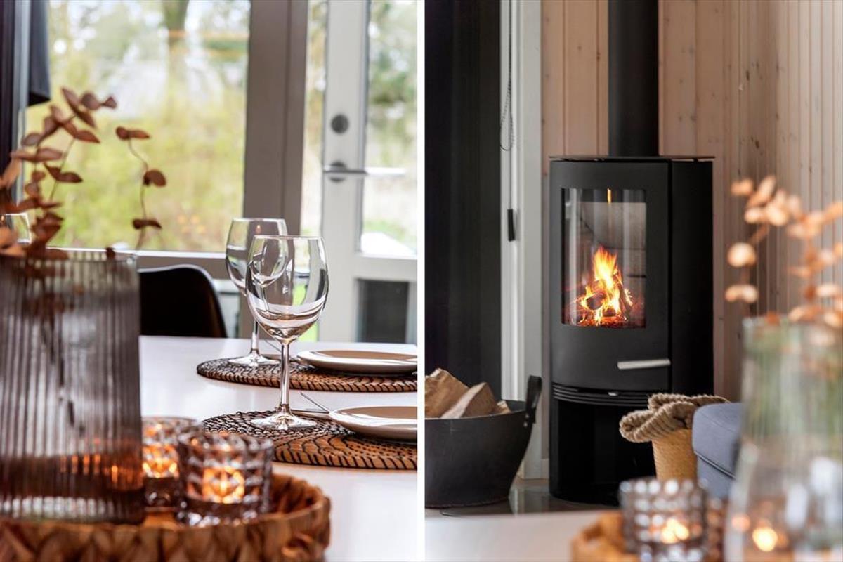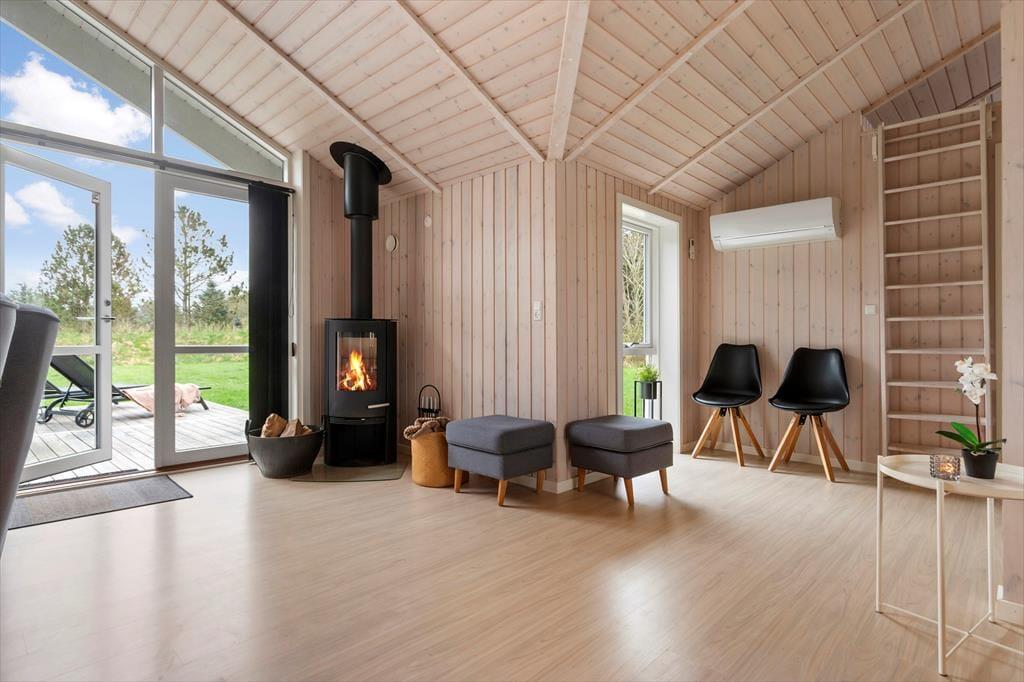Wir laden Sie ein in ein schönes und gemütliches Ferienhaus mit Holzwänden, viel Licht von den großen Fenstern, gemütlichen und modernen Möbeln und auch einem Kaminofen, der für das echte Sommerhaus-Feeling sorgt. Das Herz des Hauses bietet der offene Wohn- und Küchenbereich mit hohen Decken, einem Essbereich und Türen zu beiden Terrassen in Richtung Ost und West. Das Haus ist gut eingerichtet mit zwei Schlafzimmern, jedes mit eigenem Bad, die auf beide Enden des Hauses verteilt sind - besonders praktisch, wenn man kleine Kinder dabei hat, die früh ins Bett gehen sollen. Oder auch für zwei befreundete Paare, die zusammen Urlaub machen und auch mal ungestört sein wollen. Das Ferienhaus ist ausgestattet mit allen wichtigen Haushaltsgeräten, Waschmachine und Trockner, einer Wärmepumpe und natürlich auch mit W-Lan, damit Sie immer auf dem neuesten Stand bleiben können und Informationen über die vielen Sehenswürdigkeiten der Umgebung finden können.