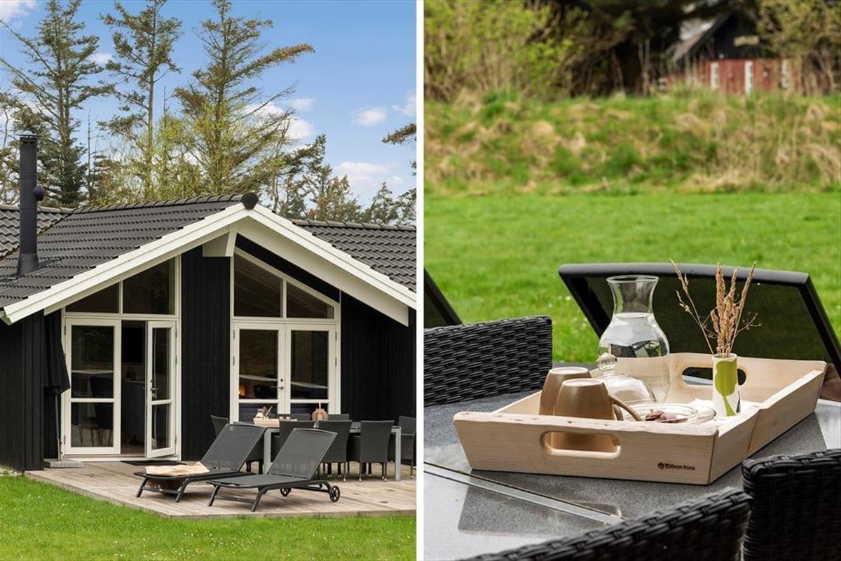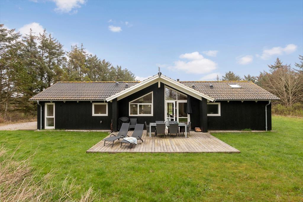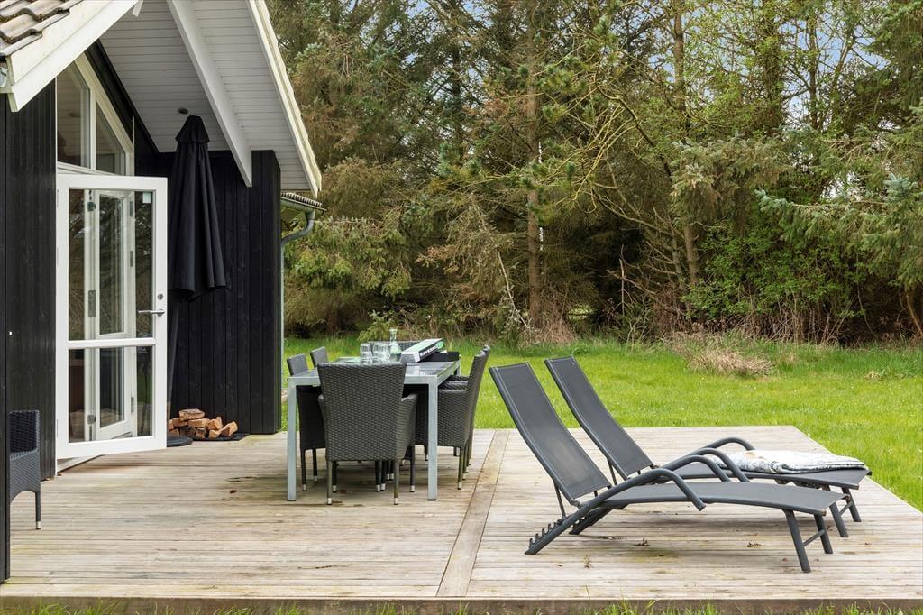 Das Ferienhaus liegt auf einem großen Naturgrund mit viel Platz zum Spielen und Toben. Auf beiden Seiten des Hauses gibt es eine Terrasse, sodass Sie die Sonne zu jeder Tageszeit genießen können. Wenn Sie sich etwas Schatten wünschen, können Sie sich unter den überdachten Teil der Terrasse zurückziehen. Gartenmöbel, Liegestühle und ein Grill stehen Ihnen zur freien Verfügung.