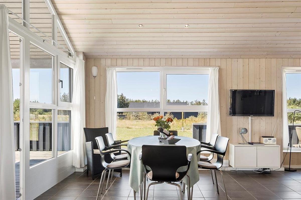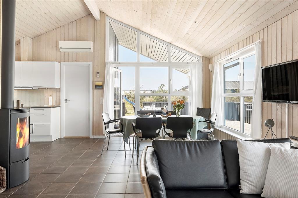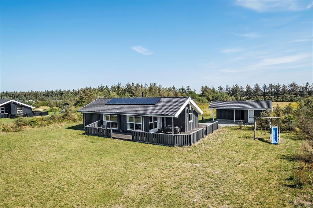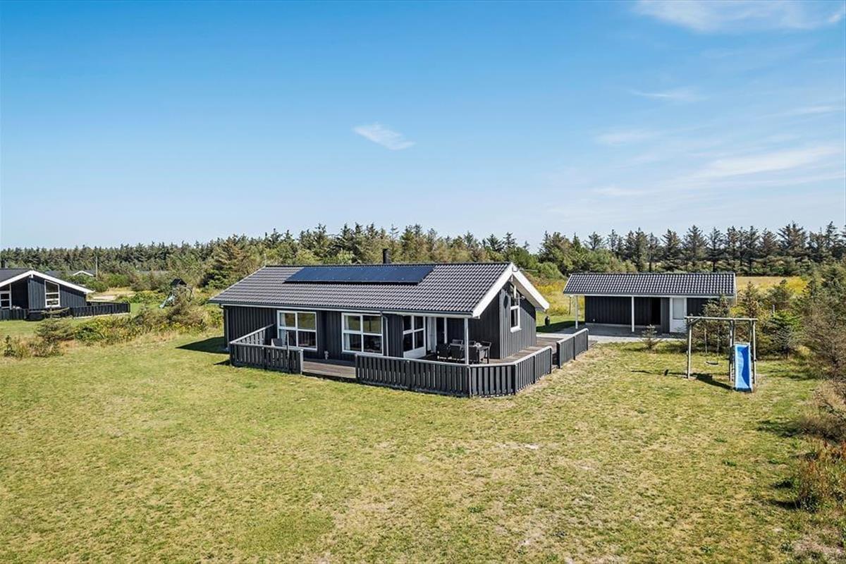 Dieses modern eingerichtete Ferienhaus aus dem Jahr 2009 lädt Sie ein zu einem gelungenen Urlaub für die ganze Familie. Das Herzstück des Hauses ist der offene Küchen- und Wohnbereich mit den großen, schönen Fensterpartien, welche wirklich das wundervolle nordische Licht ins Haus bringen und eine tolle Atmosphäre schaffen. Hier gibt es sowohl eine Wärmepumpe, Fußbodenheizung und einen gemütlichen Kaminofen. Das Haus eignet sich für 8 Personen, mit drei Schlafzimmern und einer kleinen Oberetage, welche besonders bei den jungen Gästen immer sehr beliebt ist. Es gibt sowohl eine Gästetoilette, als auch ein geräumiges Bad mit einem tollen Whirlpool, wo es sich nach einem langen Tag am Strand besonders schön entspannen lässt. Desweiteren verfügt das Haus auch über Waschmaschine, Trockner, eine Geschirrspülmaschine, Satellitenfernsehen und natürlich kostenloses W-Lan.