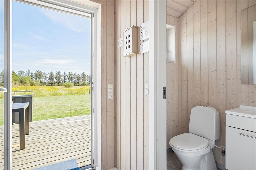 Løkken ist einer der größten Ferienorte Dänemarks. Im Sommer sprüht der Ort vor Leben und guter Stimmung. Das Haus liegt etwas südlich von Løkken in einer beliebten Ferienhaussiedlung. Die tolle Lage sorgt dafür, dass man sich jederzeit zwischen dem regen Treiben im Ort und der ruhigen Gegend um das Haus herum entscheiden kann. Vom Haus aus sind es nur wenige Kilometer zum Golfklub von Løkken und nur ein kurzes Stück weiter zum beliebtesten Freizeitpark Dänemarks – dem Fårup Sommerland. Der Strand von Løkken liegt nur wenige Gehminuten vom Ferienhaus entfernt und ist einer der allerbesten Strände des Landes mit weißem, feinen Sand, blauen Wellen und hohen Dünen, sowie der Möglichkeit zum Windsurfen, Drachenfliegen und vielen anderen spannenden Erlebnissen.
