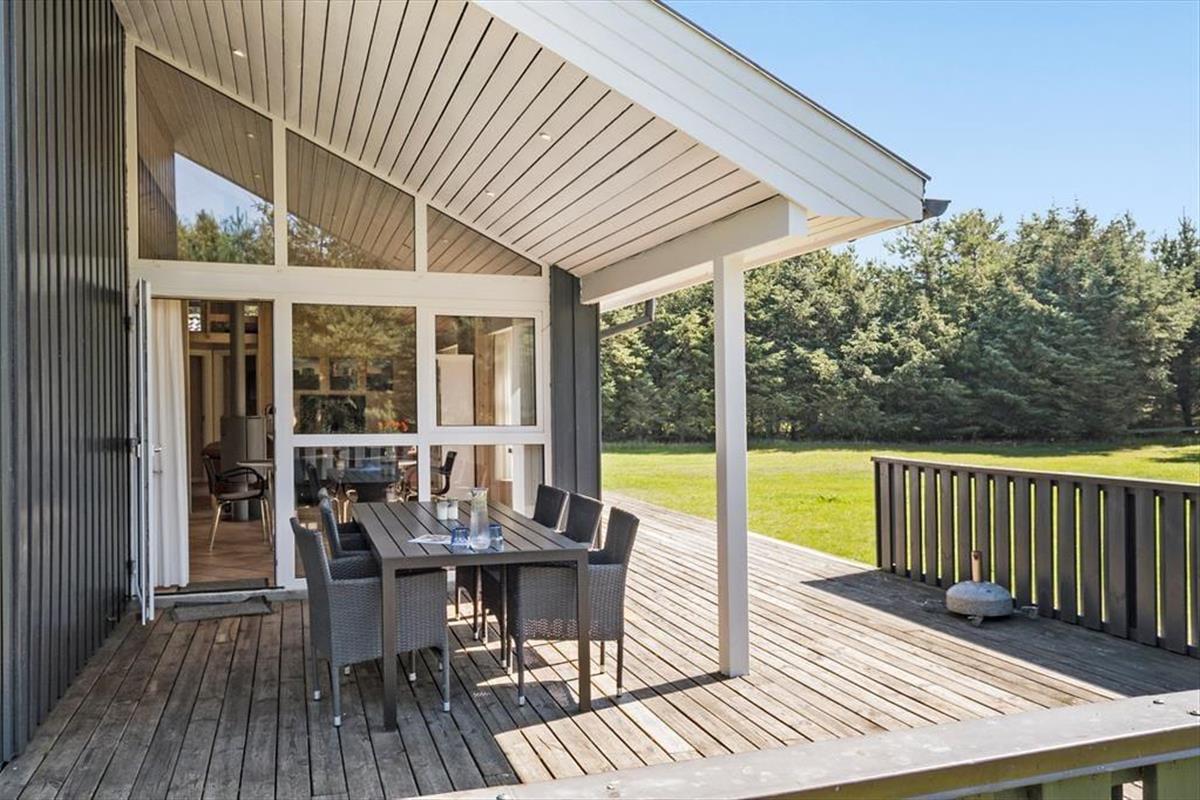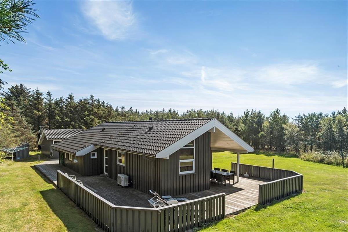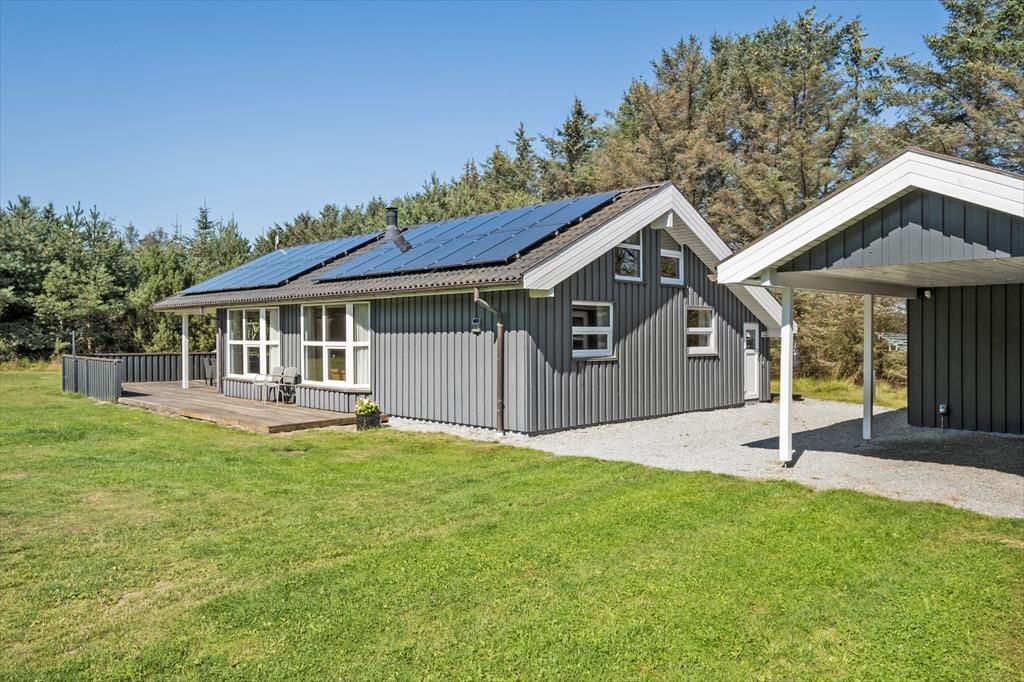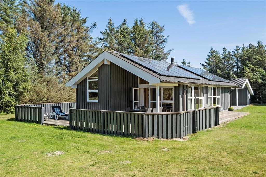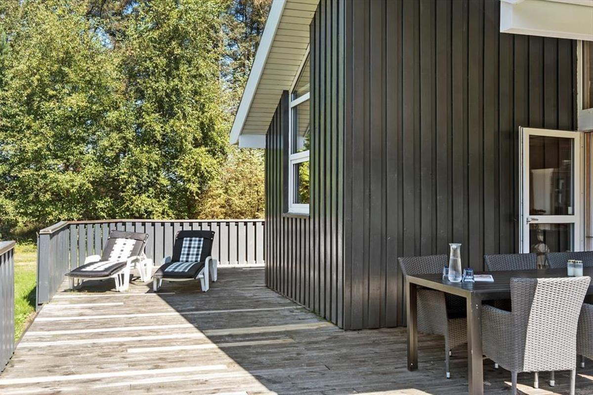 Das Ferienhaus liegt am Ende eines verkehrsarmen Weges und grenzt an ein Naturschutzgebiet; für einen ungestörten Urlaub in der schönen Natur ist somit gesorgt. Der 2500 m2 große Naturgrund, auf dem das Haus sich befindet, bietet ganz viel Platz zum Spielen und Toben. Es gibt auch ein Klettergerüst mit Schaukel und Rutsche, sodass auch die Kleinsten auf jeden Fall ihren Spaß haben werden. Der schöne Terrassenbereich rahmt das Haus von drei Seiten ein und sorgt dafür, dass Sie immer einen Platz in der Sonne oder im Schatten finden. Der überdachte Teil der Terrasse lädt zu langen Grillabenden ein. Gartenmöbel, Liegestühe und ein Grill stehen Ihnen selbstverständlich auch zur freien Verfügung.