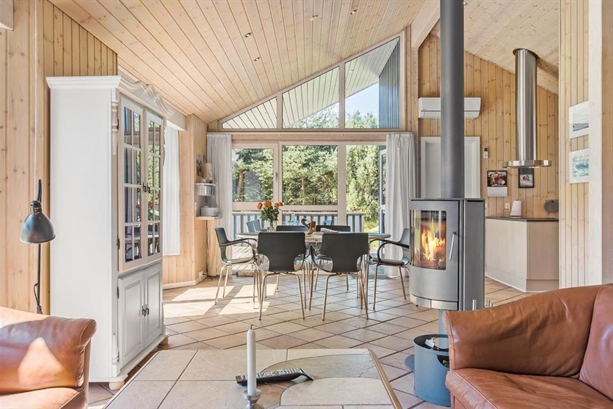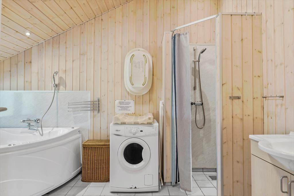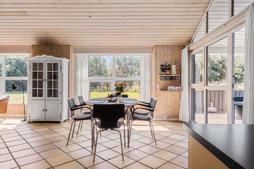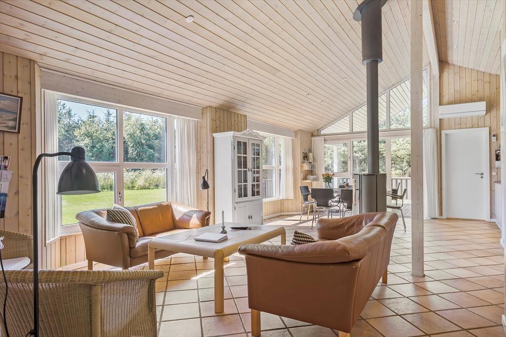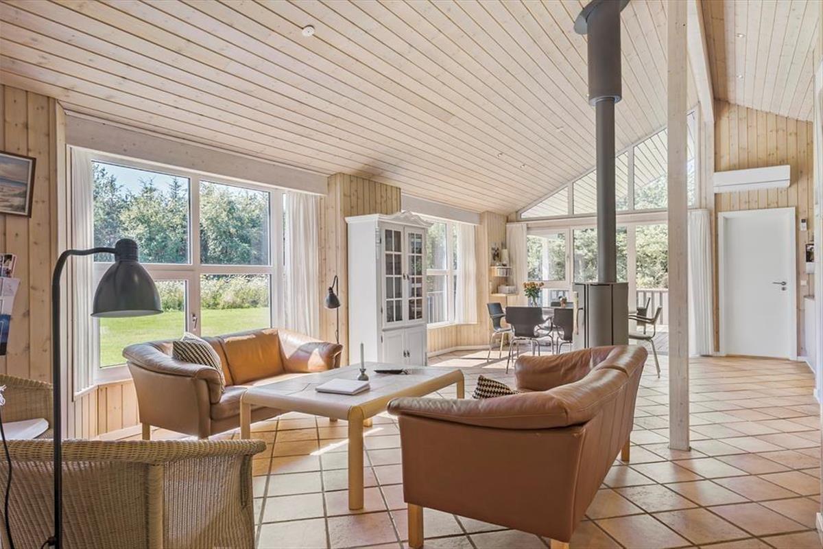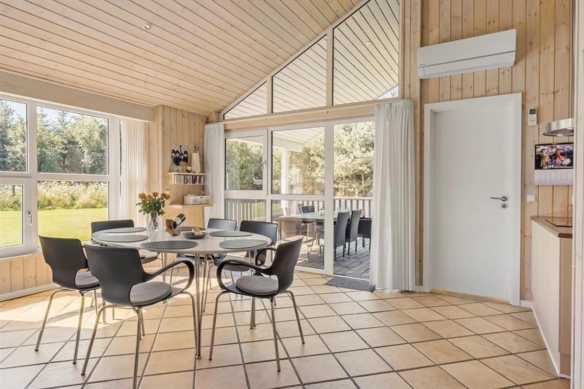 Dieses schöne und helle Ferienhaus aus dem Jahr 2006 liegt in einer attraktiven Ferienhaussiedlung südlich des Badeortes Løkken. Das Herz des Hauses ist der große Aufenthaltsraum mit einem Kaminofen in der Mitte, welcher den Raum in die gemütliche Sitzecke auf der einen und dem Essbereich auf der anderen Seite einteilt. Die zwei schönen Erker bringen Ihnen das einzigartige, nordische Licht direkt ins Wohnzimmer und sorgen für eine ganz besondere Atmosphäre. Das Haus verfügt über drei Schlafzimmer, zwei mit Doppelbetten und eines mit zwei Einzelbetten, sowie zwei Matratzen auf einer kleinen Oberetage, die besonders bei den Kleinen immer sehr beliebt ist. Dadurch ist das Haus für bis zu acht Personen geeignet. Nach einem tollen Strandtag lässt es sich im Whirlpool im großen Badezimmer wunderbar entspannen und es gibt auch eine Gästetoilette im Haus. Das Haus ist sehr gut ausgestattet, es gibt eine Wärmepumpe, Waschmaschine und Trockner, W-Lan.
