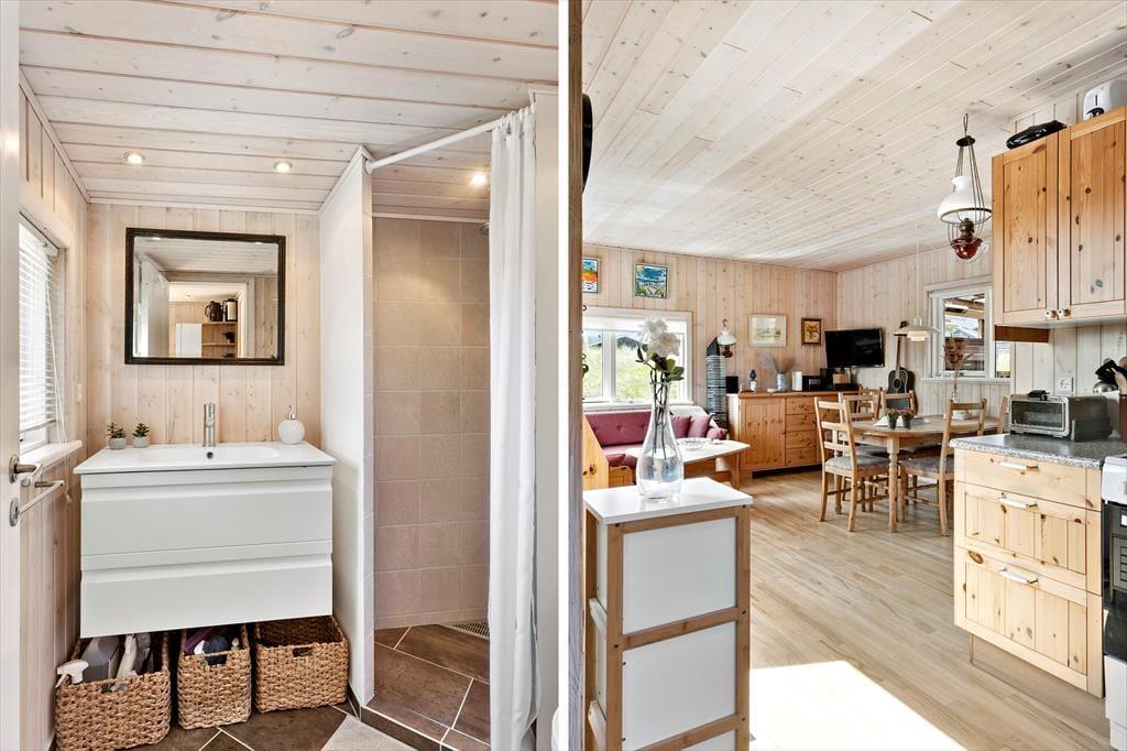 Im Inneren bietet das Ferienhaus eine helle und einladende Atmosphäre, die dich sofort zu Hause fühlen lässt. Die offene Küche ist ideal, um deine Lieblingsgerichte zuzubereiten, während du dich in der Essecke und im Wohnzimmer mit anderen unterhältst. Du kannst wertvolle Zeit mit deiner Familie oder Freunden genießen, während das natürliche Licht den Raum erfüllt und die Ruhe über das ganze Haus kommt. Das Haus verfügt über zwei komfortable Schlafzimmer und ein Badezimmer, das zum Entspannen und Wohlfühlen einlädt. Bitte beachte, dass keine TV-Kanäle im Haus verfügbar sind, aber ein TV und ein DVD-Player zur Verfügung stehen.