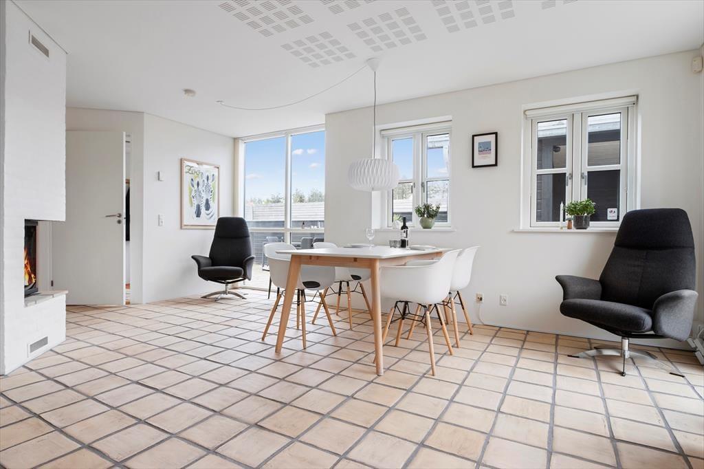 Dieses hübsche Ferienhaus über zwei Etagen liegt im Josefines Have, einem Viertel mit sowohl Ferien- als auch Wohnhäusern, welche vom Architekten Jørgen Ussing gezeichnet worden sind. Dieses schöne Ferienhaus ist wie gemacht für einen entspannten Strandurlaub, zu zweit oder auch als Familie. Das Erdgeschoss des Hauses enthält eine moderne Küche mit allen wichtigen Haushaltsgeräten, einen schönen Wohnbereich mit Essplatz, Sitzecke und einem fantastischen Kaminofen mitten im Raum, welcher aus verschiedenen Winkeln betrachtet werden kann. Die drei Schlafzimmer, liegen im Obergeschoss. Hier befindet sich außerdem auch ein schönes Badezimmer mit einem kleinen Whirlpool für maximal zwei Personen. Alles in allem ein gepflegtes, helles und modern eingerichtetes Haus. Bringen Sie gerne Laptop oder Tablet mit in den Urlaub, damit Sie das kostenlose W-Lan verwenden können – damit können Sie auf jeden Fall bei mitreisenden Kindern und Jugendlichen punkten.