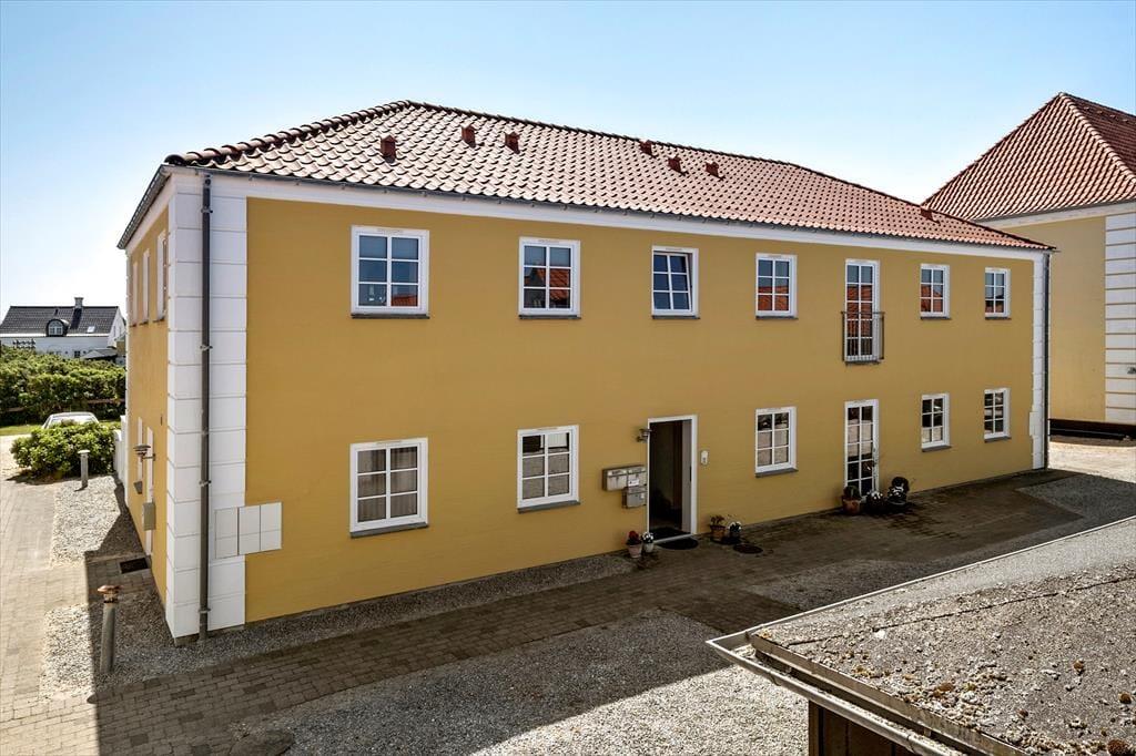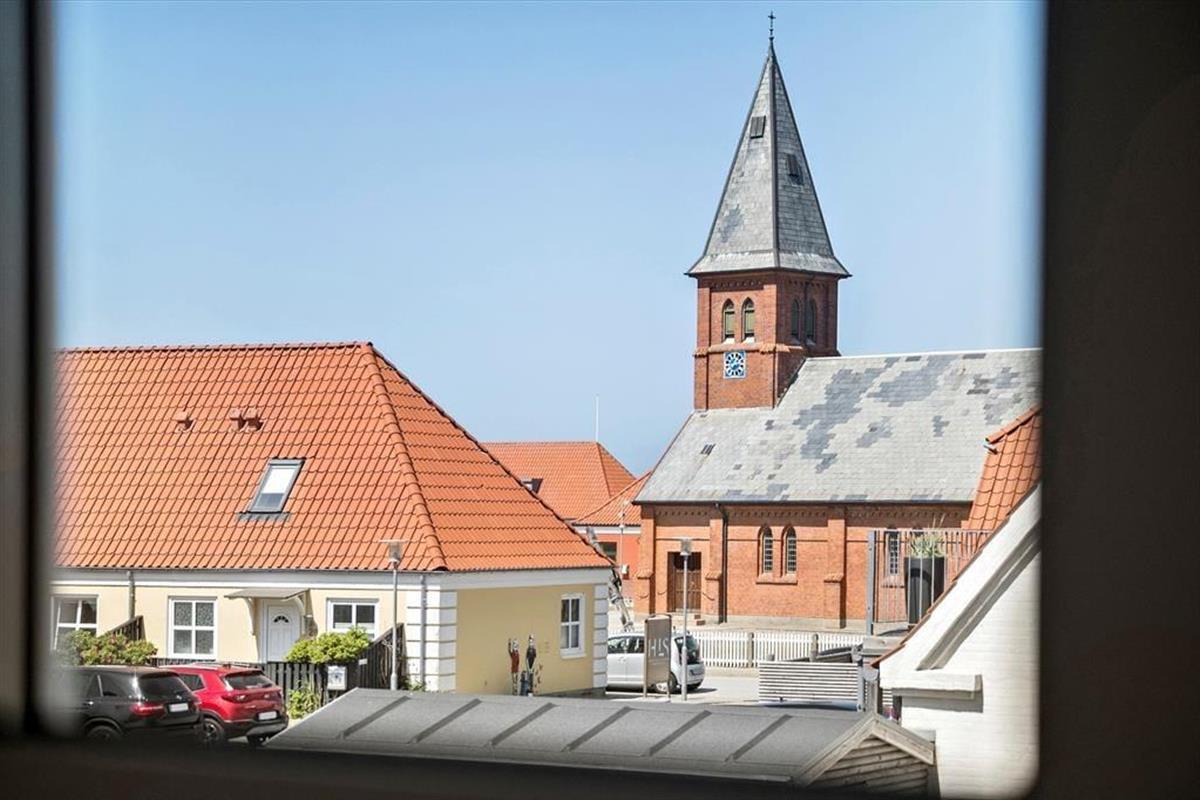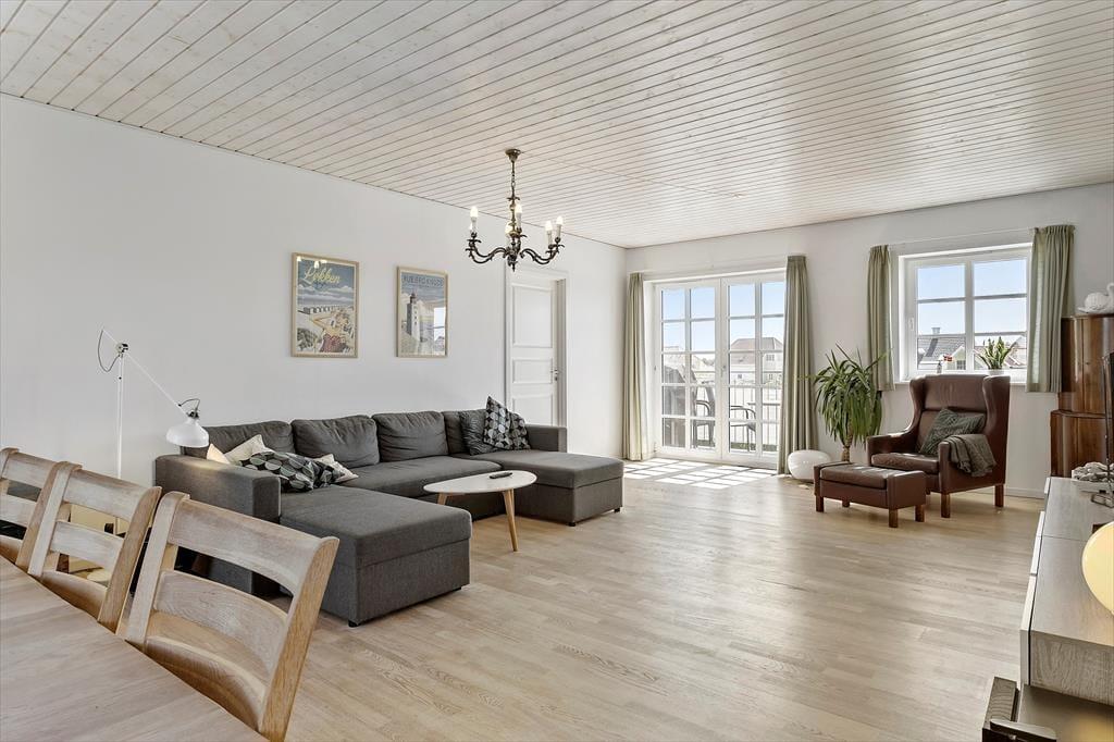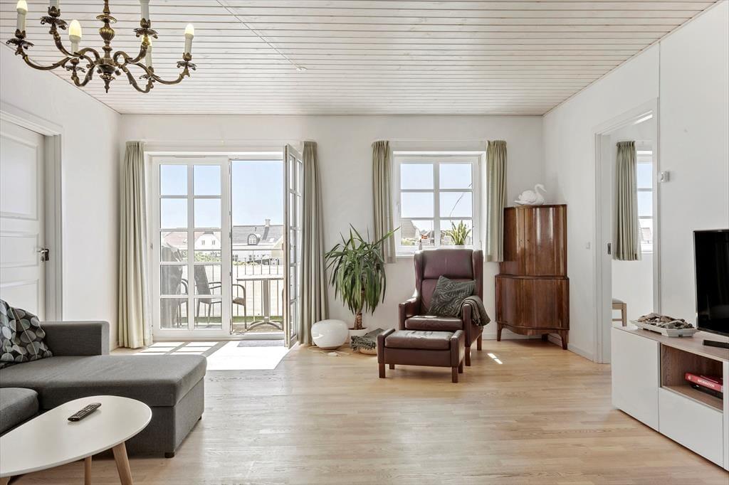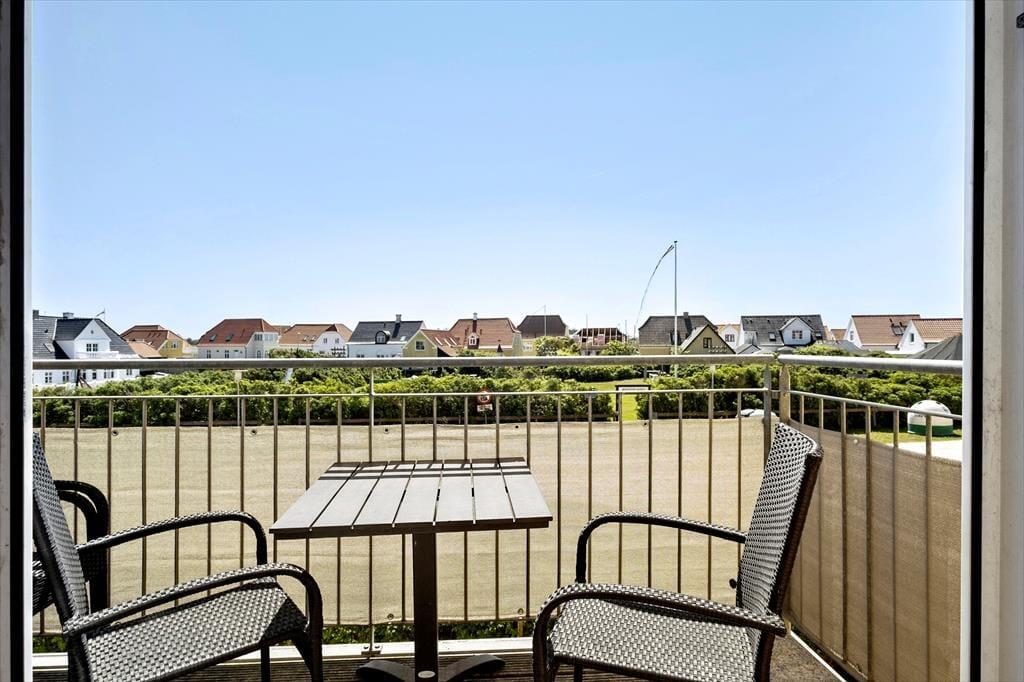 Die attraktive Wohnung befindet sich im ersten Stockwerk innerhalb eines Wohnkomplexes. Zur Wohnung gehört ein schöner, kleiner und vom Wohnraum aus zugänglicher Balkon, auf dem Sie wunderbar den ersten Becher Kaffee am Morgen genießen oder am Abend entspannt einen frisch gefangenen Fisch grillen können. Die Wohnung liegt ein wenig abseits beziehungsweise hinten und ist somit gut vor Blicken neugieriger Spaziergänger abgeschirmt. Vor der Wohnung befindet sich die schöne Grünanlage “Markedspladsen” mit einem guten Kinderspielplatz, einem Grillplatz und einem großen Bolzplatz.
