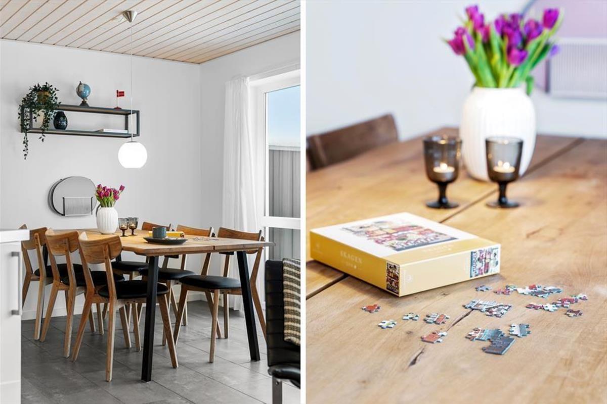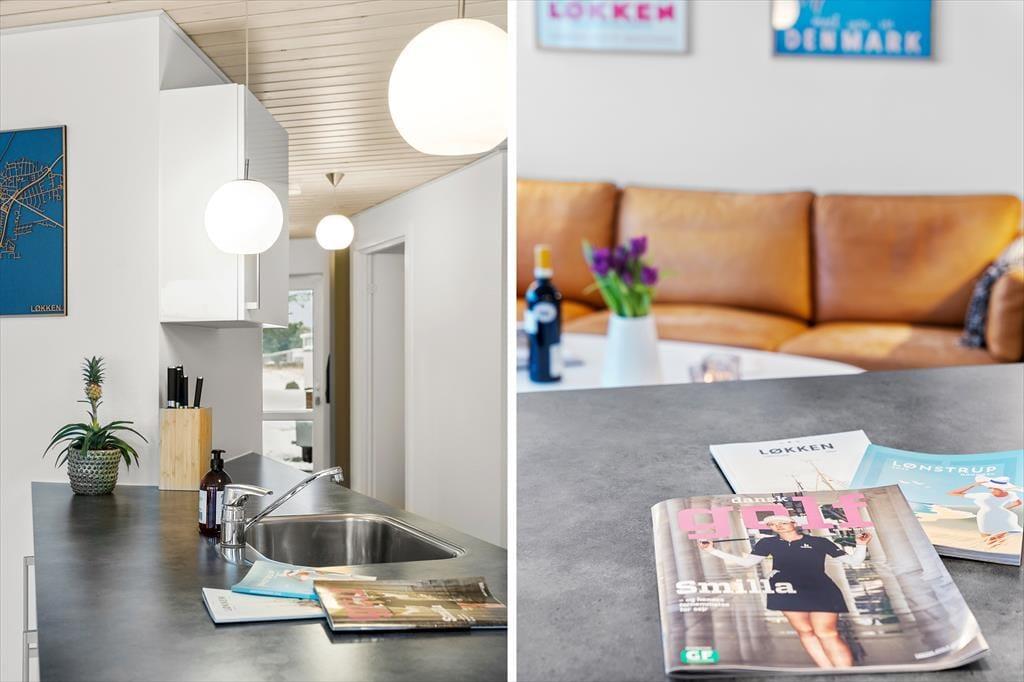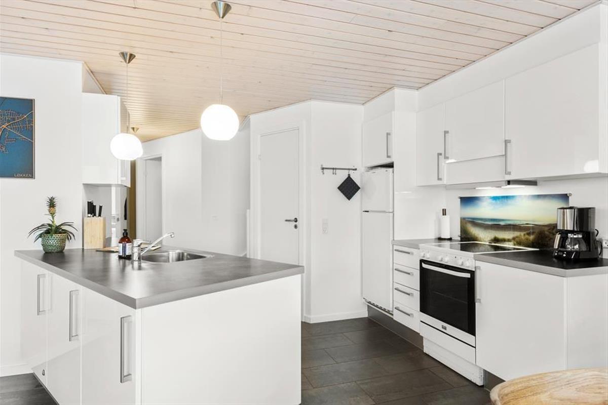 Nur 940 Meter vom Haus entfernt liegt der breite, weiße Sandstrand, der definitiv zu den besten der Region gehört. Hier gibt es reichlich Gelegenheit, am Wasserrand zu spielen, Sandburgen zu bauen, Drachen steigen zu lassen – der Fantasie sind keine Grenzen gesetzt. Sie können lange Spaziergänge entlang des Strandes oder in den Dünen machen oder einen schnellen Sprung in die blauen Wellen wagen. Vom Ferienhaus aus ist es auch nur ein kurzer Weg ins Zentrum von Løkken. Løkken ist ein beliebter Ferienort mit vielen gemütlichen Restaurants und guten Einkaufsmöglichkeiten sowie einem Schwimmbad und Museen. Es gibt für jeden Geschmack etwas. In erreichbarer Entfernung mit dem Auto finden Sie zudem spannende Ausflugsziele für die ganze Familie, wie Fårup Sommerland, Family Fun Farm Park, Børglum Kloster oder Rubjerg Knude. Oder unternehmen Sie einen Ausflug in die nördlichste Stadt Dänemarks, Skagen.