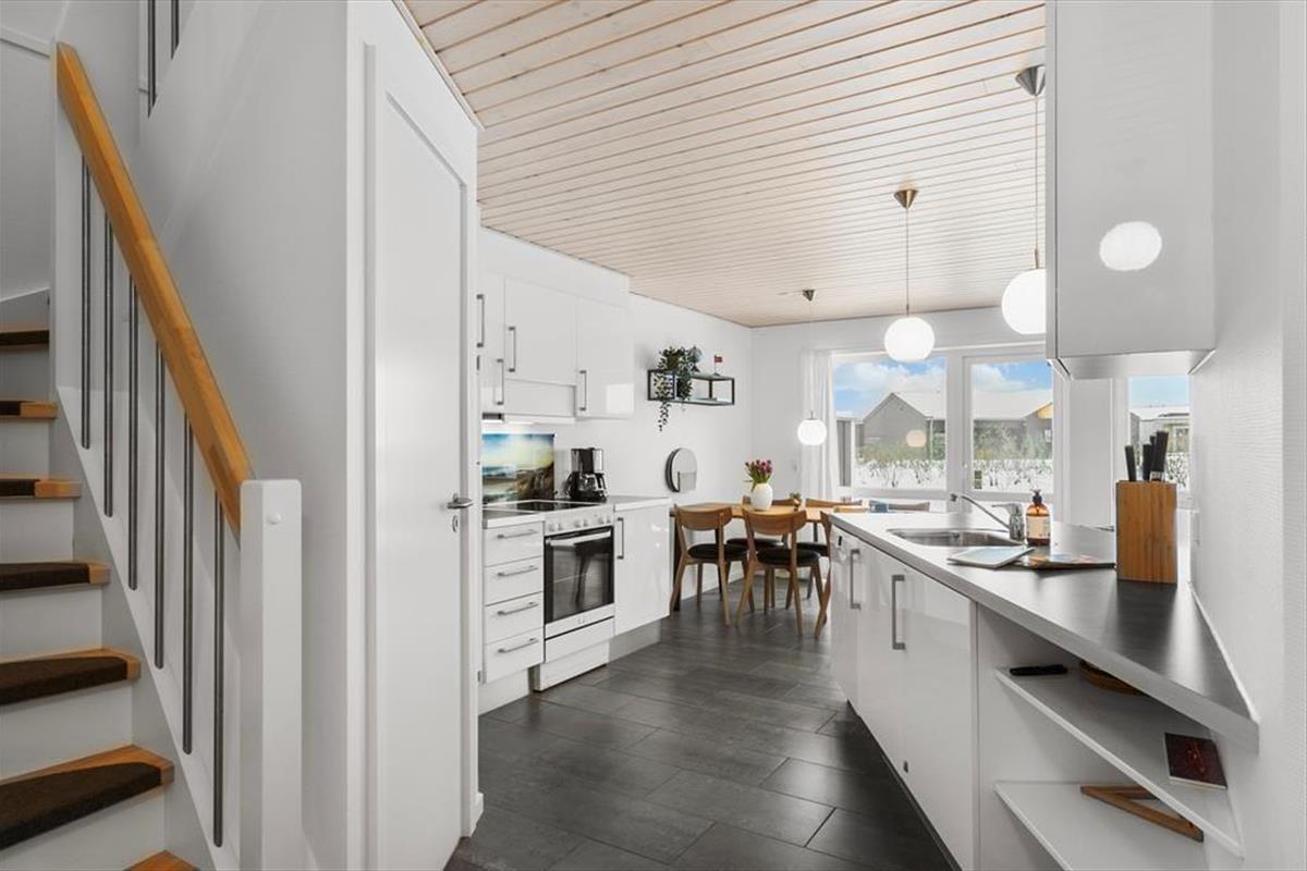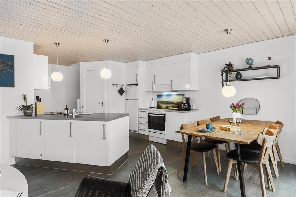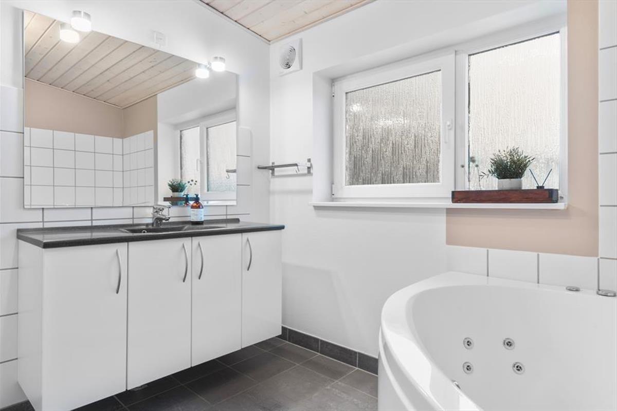 Die Ferienwohnung, die zum Løkken Feriepark gehört, Nordenlys, erstreckt sich über zwei Etagen und bietet viel Platz für die ganze Familie. Im Erdgeschoss befindet sich eine große, offene Küche, die mit dem Wohnzimmer verbunden ist. Von hier aus gelangen Sie auf eine schöne, nach Süden ausgerichtete Terrasse. Im Erdgeschoss gibt es außerdem ein Badezimmer mit Sauna. Hier finden Sie auch eines der Schlafzimmer des Hauses. Das Haus ist perfekt eingerichtet für die Familie, die Ruhe und viel Platz sucht. Im ersten Stock befindet sich ein großes Badezimmer mit Whirlpool. Hier gibt es auch zwei weitere Schlafzimmer mit Doppelbetten und ein Büro. Vom einen Schlafzimmer und vom Büro aus gibt es ebenfalls Zugang zu einer wunderschönen Terrasse, die teilweise überdacht ist. Hier haben Sie wirklich die Grundlage für einen schönen Familienurlaub in einer fantastischen Umgebung.