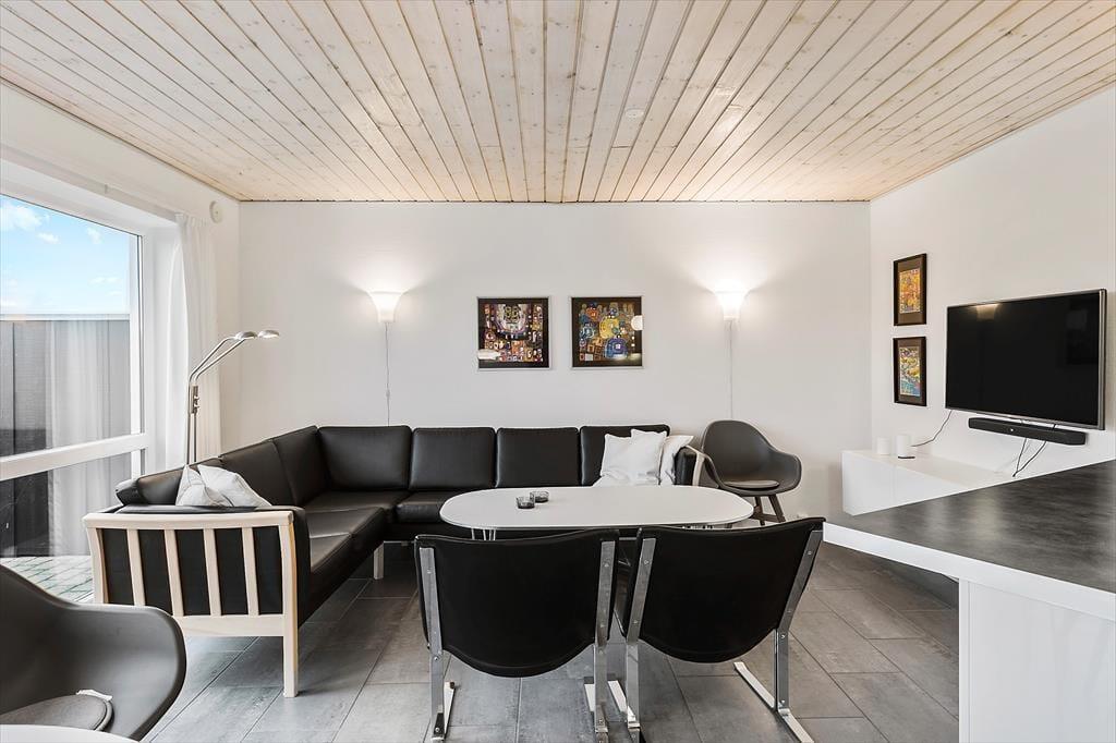 Auf einem großartigen Areal namens Sea West und Nordenlys, südöstlich der Stadt Løkken, mit Blick auf den Golfplatz und hoher Lage, befindet sich dieses herrliche Ferienhaus. Auf dem schönen Balkon oder der großen Terrasse gibt es viel Gelegenheit, den dänischen Sommer zu genießen, während man dem Rauschen der Wellen der Nordsee zuhört. In der Nähe der Wohnung befindet sich ein großer und schöner Spielplatz, der sowohl kleinen als auch größeren Kindern Freude bereiten wird. Für Golfinteressierte liegt direkt daneben eine große Pay & Play Golfanlage. Die gesamte Umgebung ist mit grünen Flächen gestaltet und bietet Möglichkeiten für Spaziergänge.