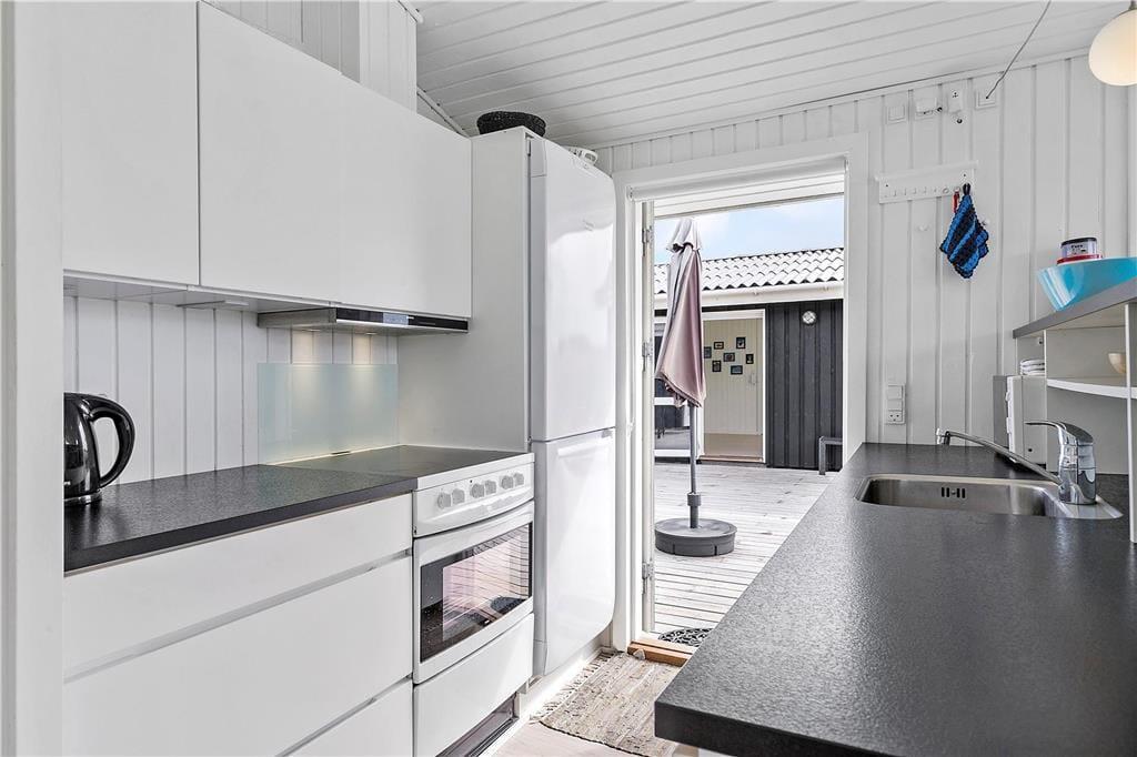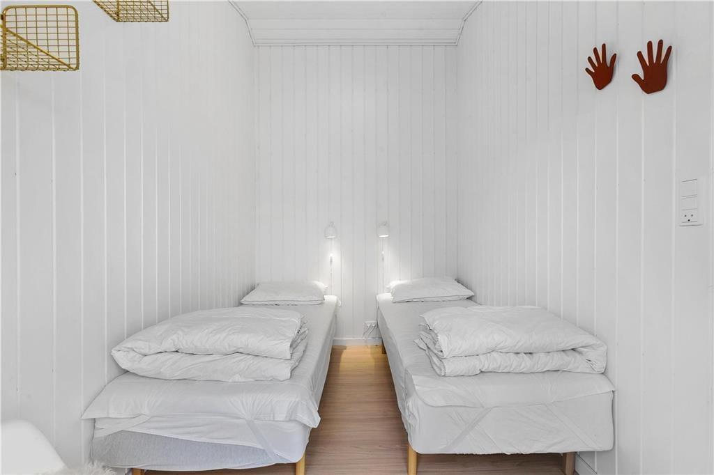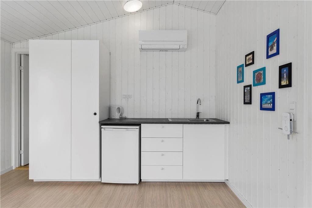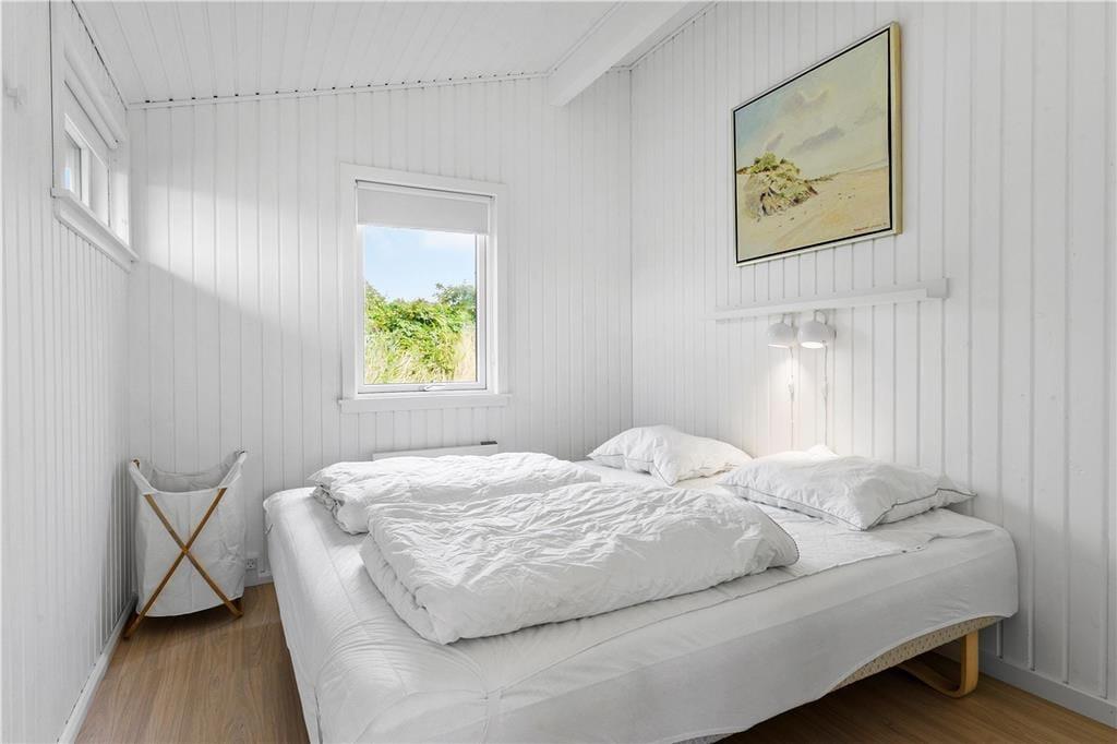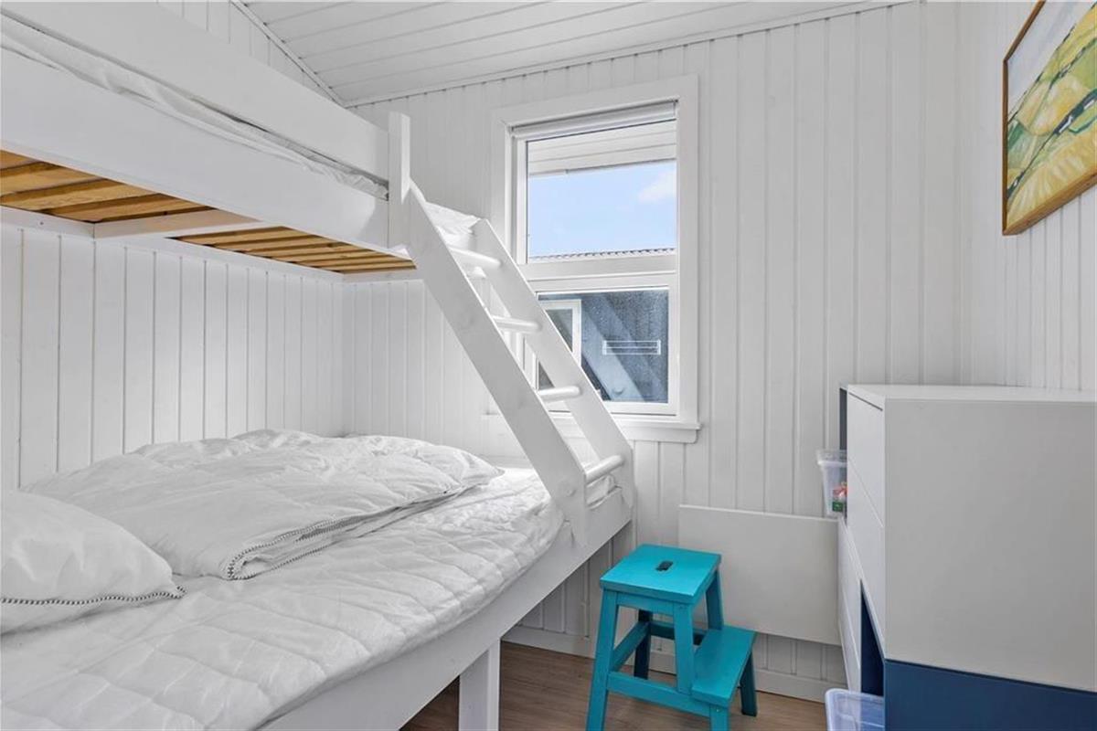 Hell, einfach und einladend – so lässt sich die Einrichtung des gut renovierten Sommerhauses sowie des Anneks kurz beschreiben. In beiden Gebäuden gibt es Decken bis zum First und weiß gestrichene Holzwände, die den Räumen einen klassischen Sommerhauscharakter verleihen. Und dank der großen Fensterflächen könnt ihr das Tageslicht genießen, während ihr drinnen Brettspiele spielt, köstliche Mahlzeiten genießt und euch in der Couch entspannt. Das Hauptgebäude bietet einen Wohnraum mit integrierter Küchenzeile, ein Badezimmer und zwei Schlafzimmer, wobei eines mit einem Doppelbett ausgestattet ist. Im anderen Zimmer steht ein ¾-Bett, und darüber gibt es einen zusätzlichen Schlafplatz in der Koje. Wenn ihr Freunde oder Familie zum Urlaub eingeladen habt, können sie in den zwei Einzelbetten oder der Alkoven-Schlafstelle im Schlafzimmer des Anneks schlafen. Das Annek verfügt außerdem über ein eigenes Badezimmer mit Duschmöglichkeiten sowie eine kleine Küchenzeile mit Kühlschrank, und es gibt sogar Turnringe und Kletterseile für Kinder und junggebliebene Erwachsene.