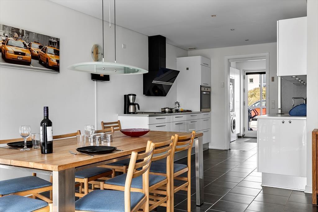 Das Ferienhaus ist Teil eines hübschen Reihenhauskomplexes aus dem Jahr 2007. Innen bietet das Haus viel Tageslicht, und die Akustikdecken sowie die helle Farbgestaltung tragen zu einer angenehmen Raumatmosphäre bei. Im Erdgeschoss findet ihr einen Wohnbereich, der euch schnell wie zu Hause fühlen lässt: Eine gemütliche Sofaecke, einen Esstisch für sechs Personen und eine offene Küche mit viel Platz zum Kochen. Außerdem gehören ein Eingangsbereich mit Waschmöglichkeiten, ein schönes Badezimmer und ein Schlafzimmer zum Grundriss. Das Obergeschoss verfügt über zwei weitere Schlafzimmer und ein zusätzliches Badezimmer. Insgesamt bietet das Haus eine großartige Raumaufteilung, die sich sowohl für Familienurlaube als auch für gemütliche Auszeiten mit guten Freunden eignet.