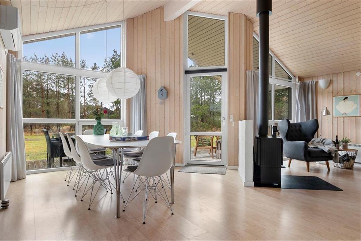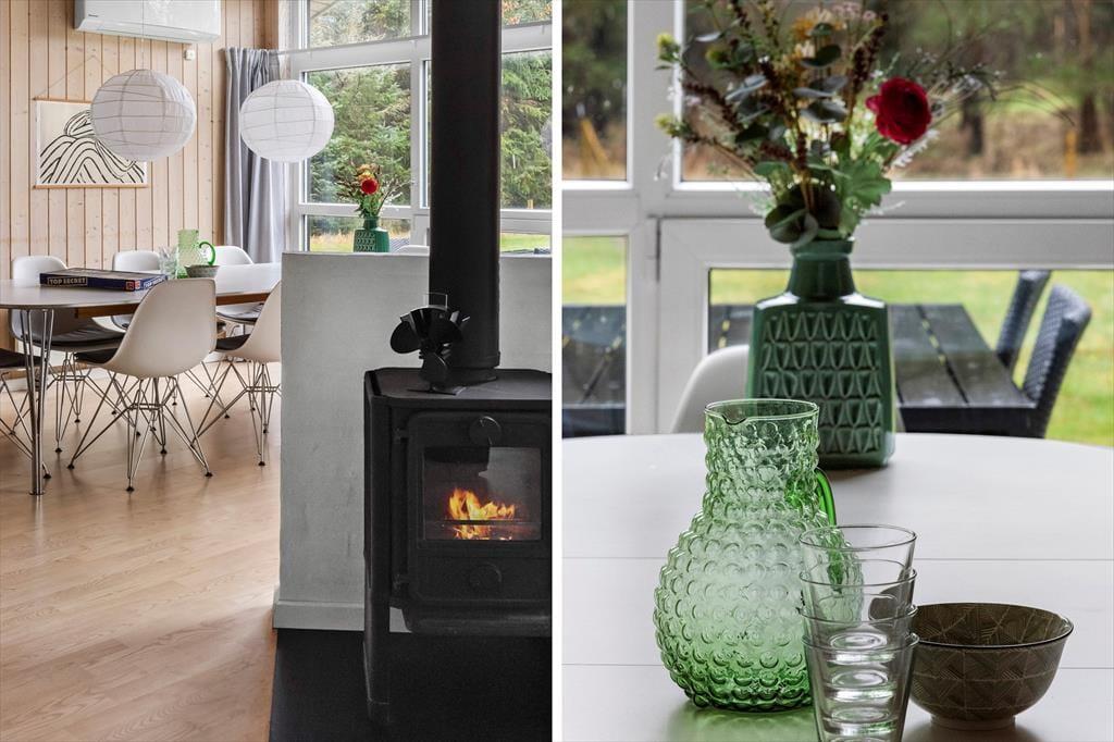 Wenn du das Ferienhaus betrittst, wirst du sofort die lichtdurchflutete und einladende Atmosphäre spüren. Das Haus ist mit großen Fenstern ausgestattet, die die umliegende Natur ins Wohnzimmer holen, und die hohen Decken verleihen den Räumen ein besonderes Gefühl von Weite und Luftigkeit. Die offene Küche ist nahtlos mit dem Wohnbereich verbunden, wo du die Aussicht auf die wunderschönen Dünen genießen kannst, die sich am Horizont erheben. Hier gibt es viel Platz für gemeinsames Beisammensein, egal ob du in der gut ausgestatteten Küche kochst oder im offenen Wohnzimmer entspannst. Das Ferienhaus verfügt über drei schöne Schlafzimmer und ein Badezimmer, sodass die ganze Familie den Urlaub in vollen Zügen und mit maximalem Komfort genießen kann.