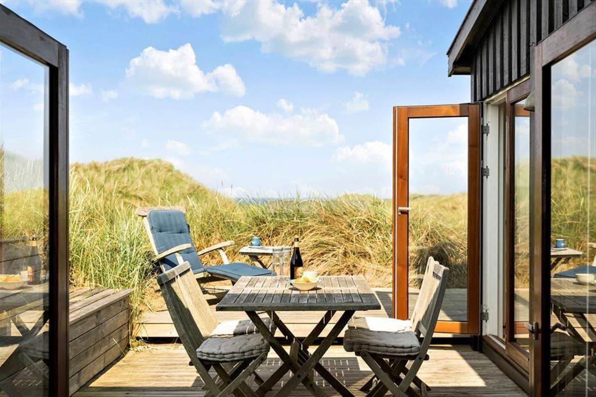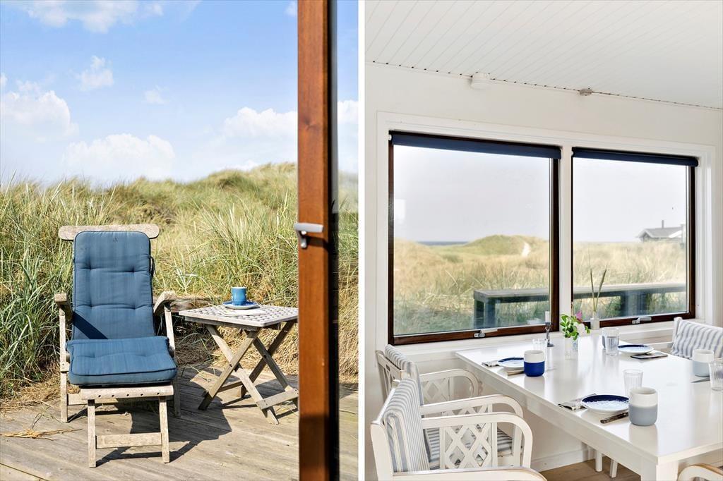 Smagfuld indretning, solrige terrasser og skøn udsigt over havet og kysten. Frisk havluft i lungerne og udsigt til bølgende marehalm og blå bølger. I bor i det smukkeste kystlandskab bare 150 meter fra Løkken Strand, når I holder ferie i dette stemningsfulde og smukt indrettede sommerhus.