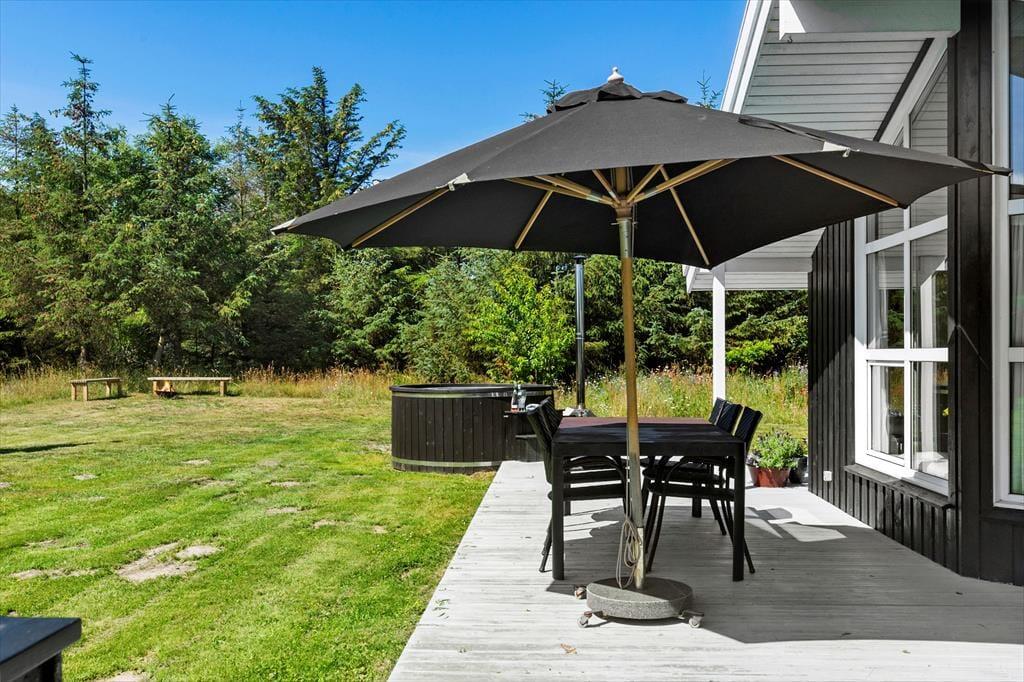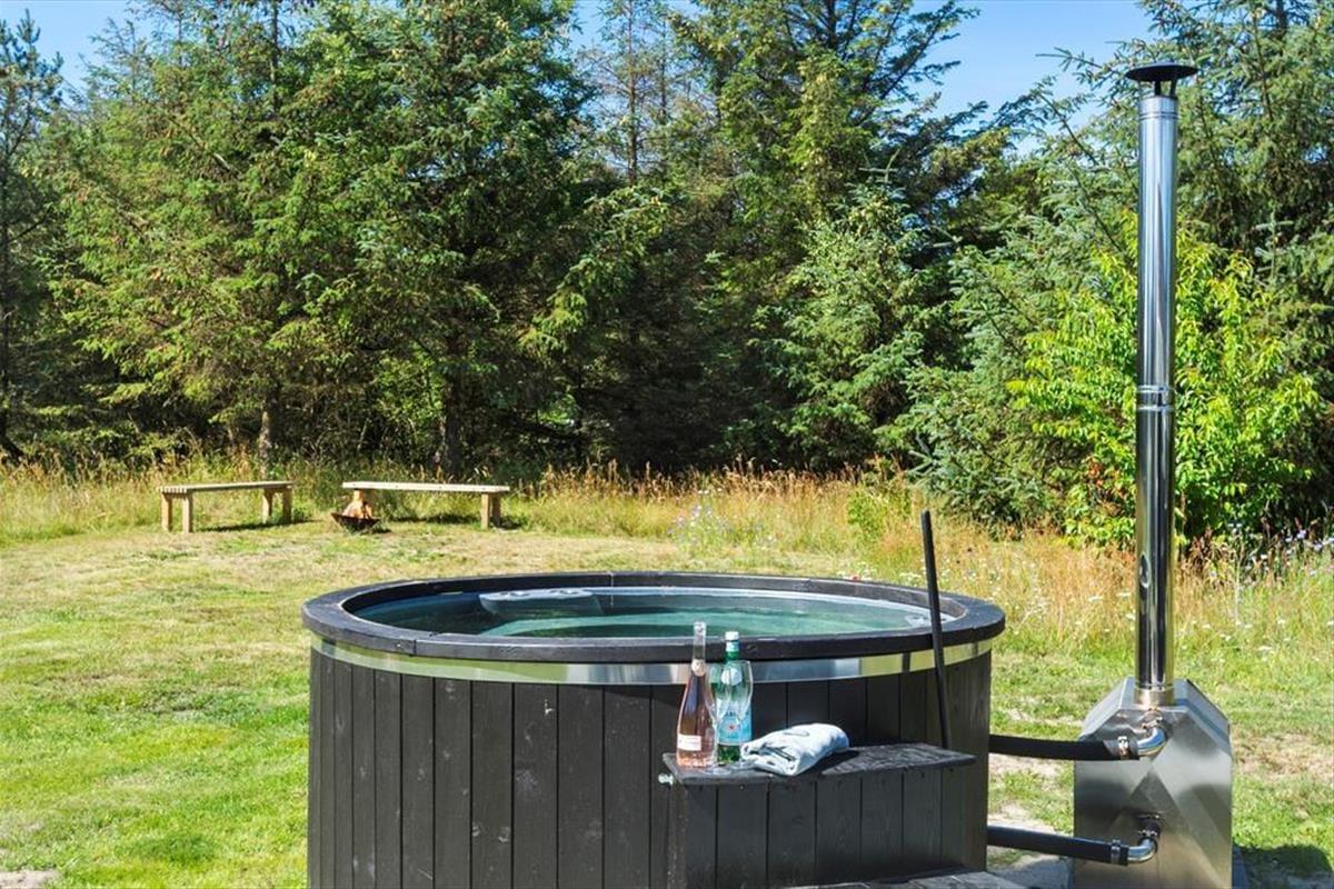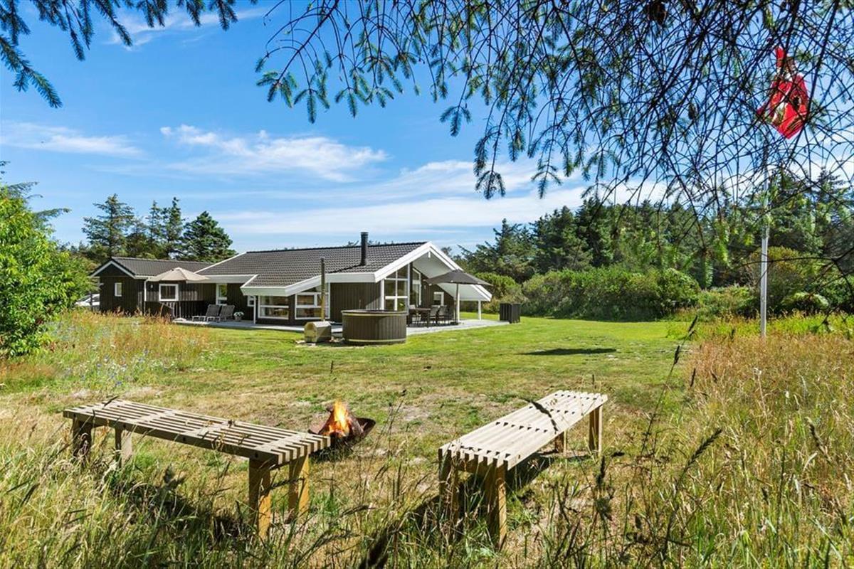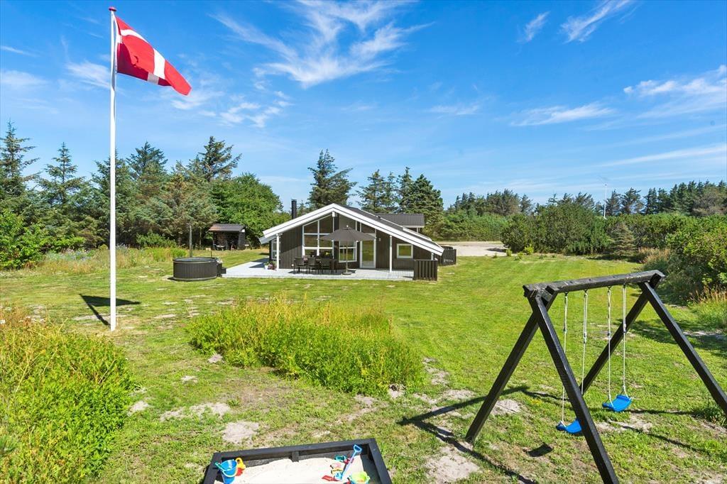 Sobald die Sonne scheint und die Temperaturen steigen, ist es eine gute Idee, das Leben auf die schönen Terrassen zu verlagern, die auf mehreren Seiten des Ferienhauses auf Sie warten. Das Grundstück ist mit seinen 2564 m² ziemlich groß, sodass es viel Platz gibt, um sich auf der Wiese zu vergnügen. Die jüngsten Feriengäste werden vielleicht auch die Schaukeln und die Sandkiste im Garten zu schätzen wissen – während die Erwachsenen sich darüber freuen können, dass das Auto sicher im Carport steht, wenn mit dem Ball gespielt wird. Im Garten finden Sie auch ein Badefass, das während Ihres Aufenthalts genutzt werden kann.