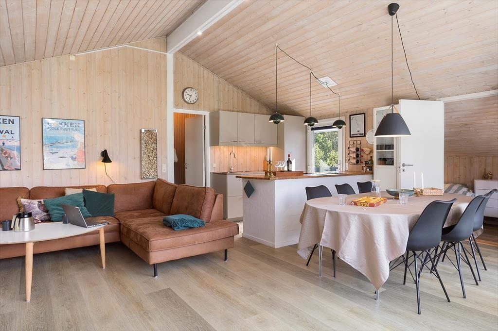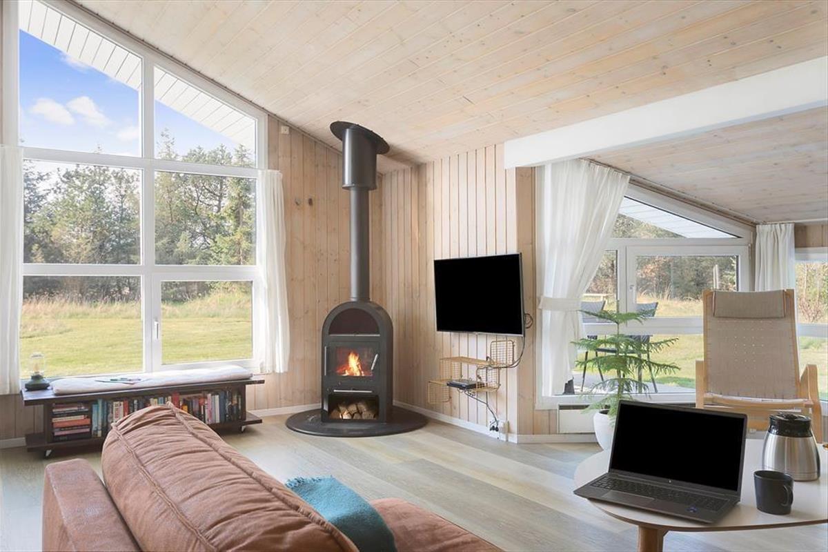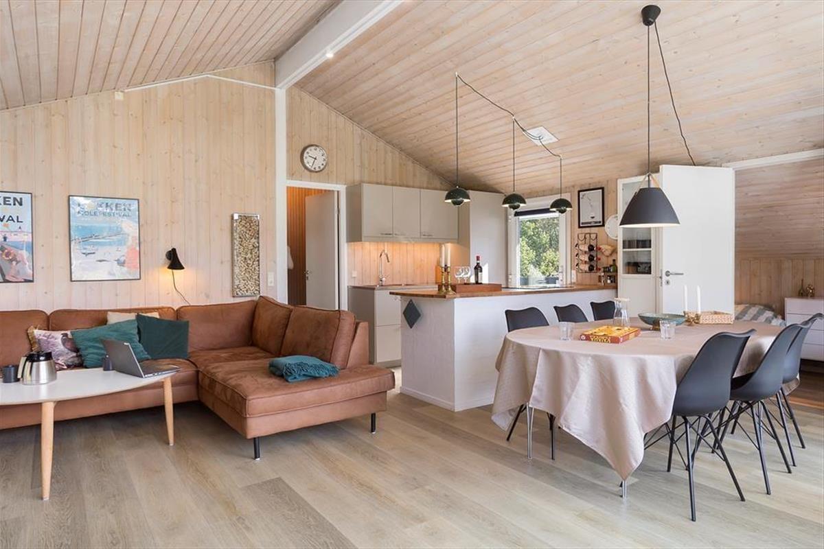 Es ist deutlich zu sehen, dass das Ferienhaus gepflegt wurde, sodass jedes der 78 m² sauber und gut erhalten ist. Dank der hellen Farbtöne und großen Fensterfronten ist die Atmosphäre leicht und einladend, und der schöne Blick auf die grünen Umgebung trägt natürlich auch zum guten Raumgefühl bei. Das Haus verfügt über drei Schlafzimmer, sodass insgesamt sechs Personen im Haus Platz finden. Der größte Raum des Hauses ist nicht überraschend das Wohnzimmer, das ein schönes, hochvolles Wohnzimmer mit komfortablen Möbeln, einem Kamin und einer gut ausgestatteten offenen Küche bietet. Schließlich gibt es noch das Badezimmer, das neben einer praktischen Waschmaschine auch einen Whirlpool und eine Sauna bietet, sodass Sie sich entspannen und Ihre Urlaubstage in vollen Zügen genießen können.