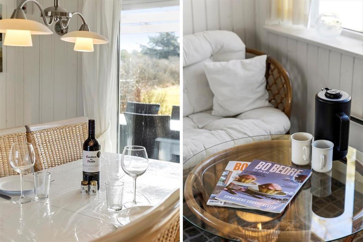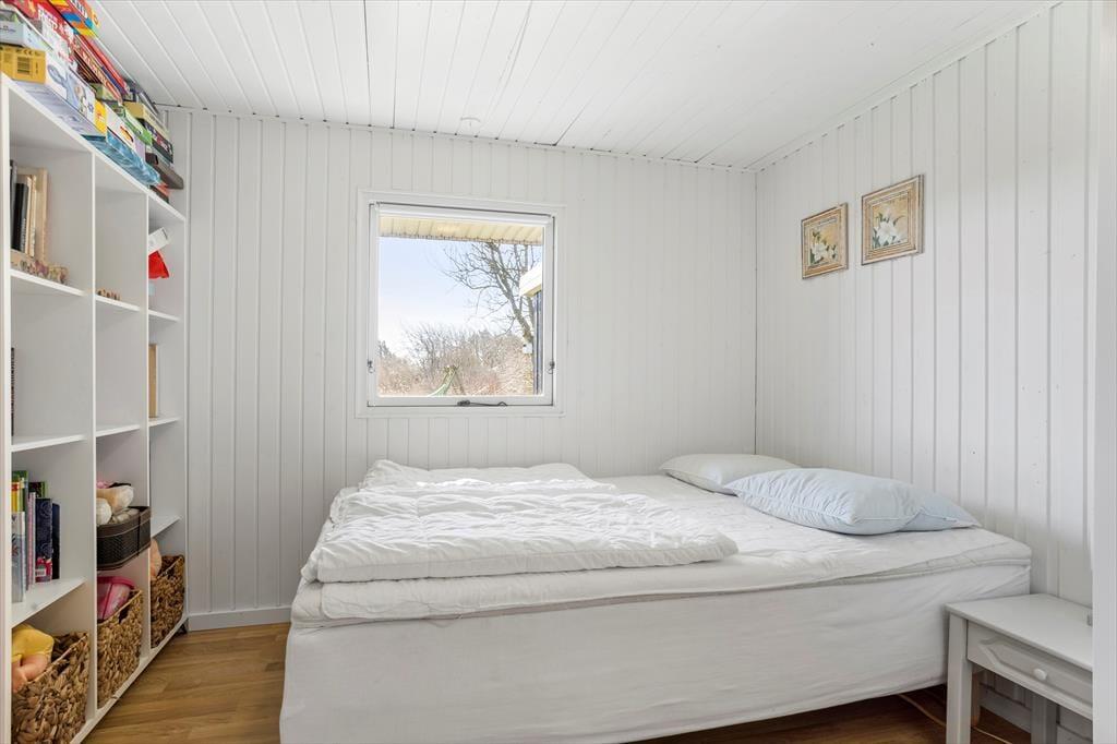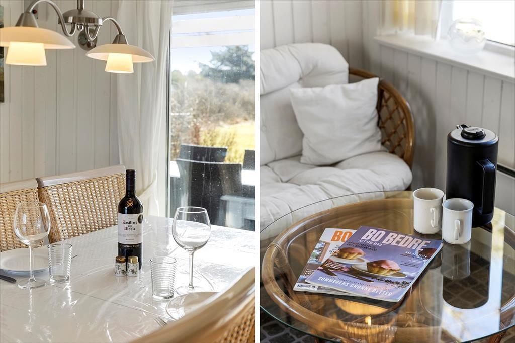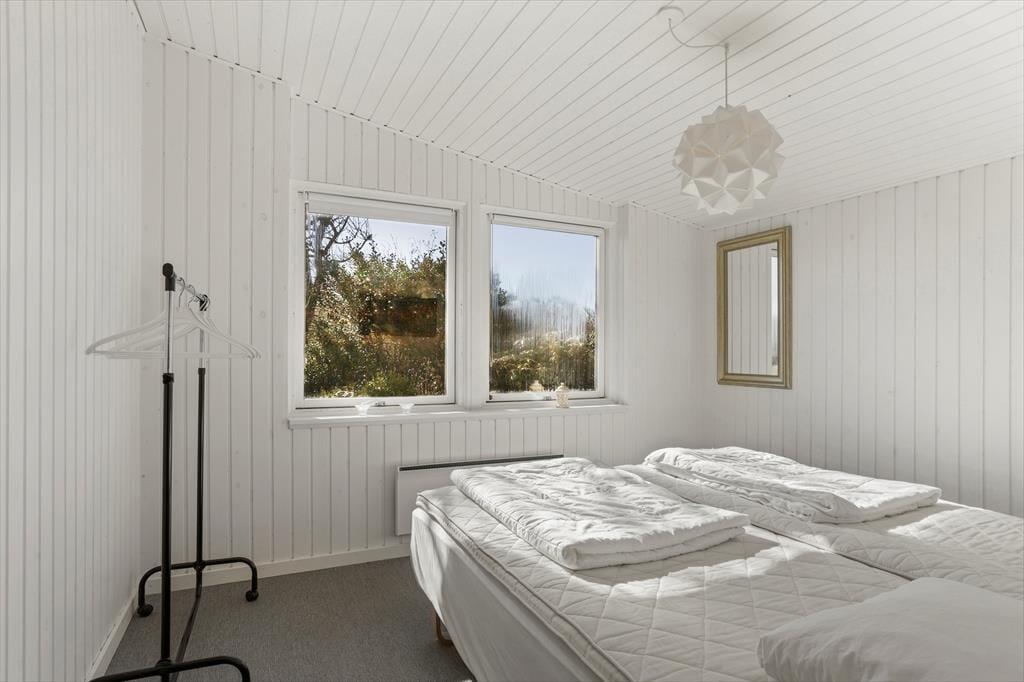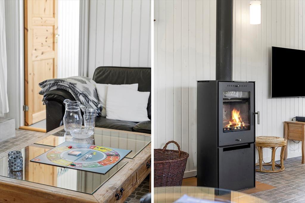 Dies ist ein "richtiges" Ferienhaus mit einer schwarz gestrichenen Holzfassade und weißen Fensterrahmen, die in einem schönen Kontrast zum Grün des Gartens stehen. Die Idylle könnte fast nicht perfekter sein. Das Haus ist sehr gut eingerichtet, und die gemütliche Gemeinschaft während des Urlaubs hat hier ideale Bedingungen. Die halb-offene Küche ist mit einem Esszimmer verbunden, und es gibt auch ein schönes Wohnzimmer mit Kaminofen. Es gibt vier Schlafzimmer – drei mit Doppelbetten und eines mit Etagenbetten. Schließlich gibt es zwei Badezimmer, von denen eines mit einer Badewanne und das andere mit einer Dusche ausgestattet ist.