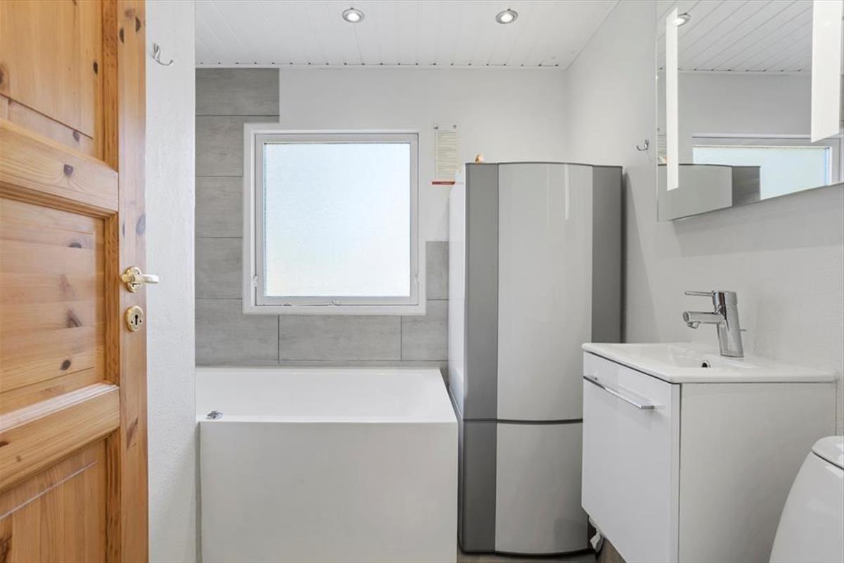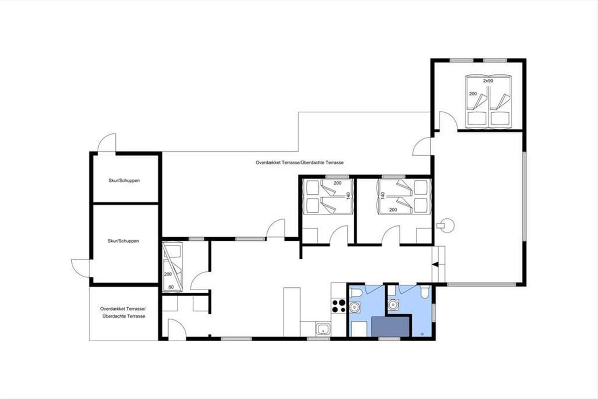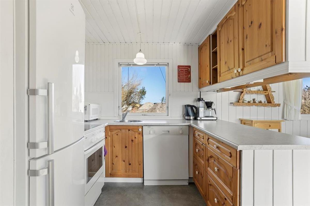 Dies ist ein "richtiges" Ferienhaus mit einer schwarz gestrichenen Holzfassade und weißen Fensterrahmen, die in einem schönen Kontrast zum Grün des Gartens stehen. Die Idylle könnte fast nicht perfekter sein. Das Haus ist sehr gut eingerichtet, und die gemütliche Gemeinschaft während des Urlaubs hat hier ideale Bedingungen. Die halb-offene Küche ist mit einem Esszimmer verbunden, und es gibt auch ein schönes Wohnzimmer mit Kaminofen. Es gibt vier Schlafzimmer – drei mit Doppelbetten und eines mit Etagenbetten. Schließlich gibt es zwei Badezimmer, von denen eines mit einer Badewanne und das andere mit einer Dusche ausgestattet ist.