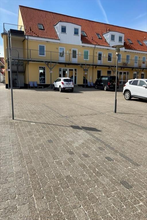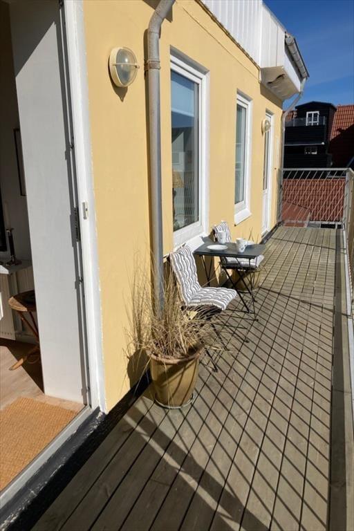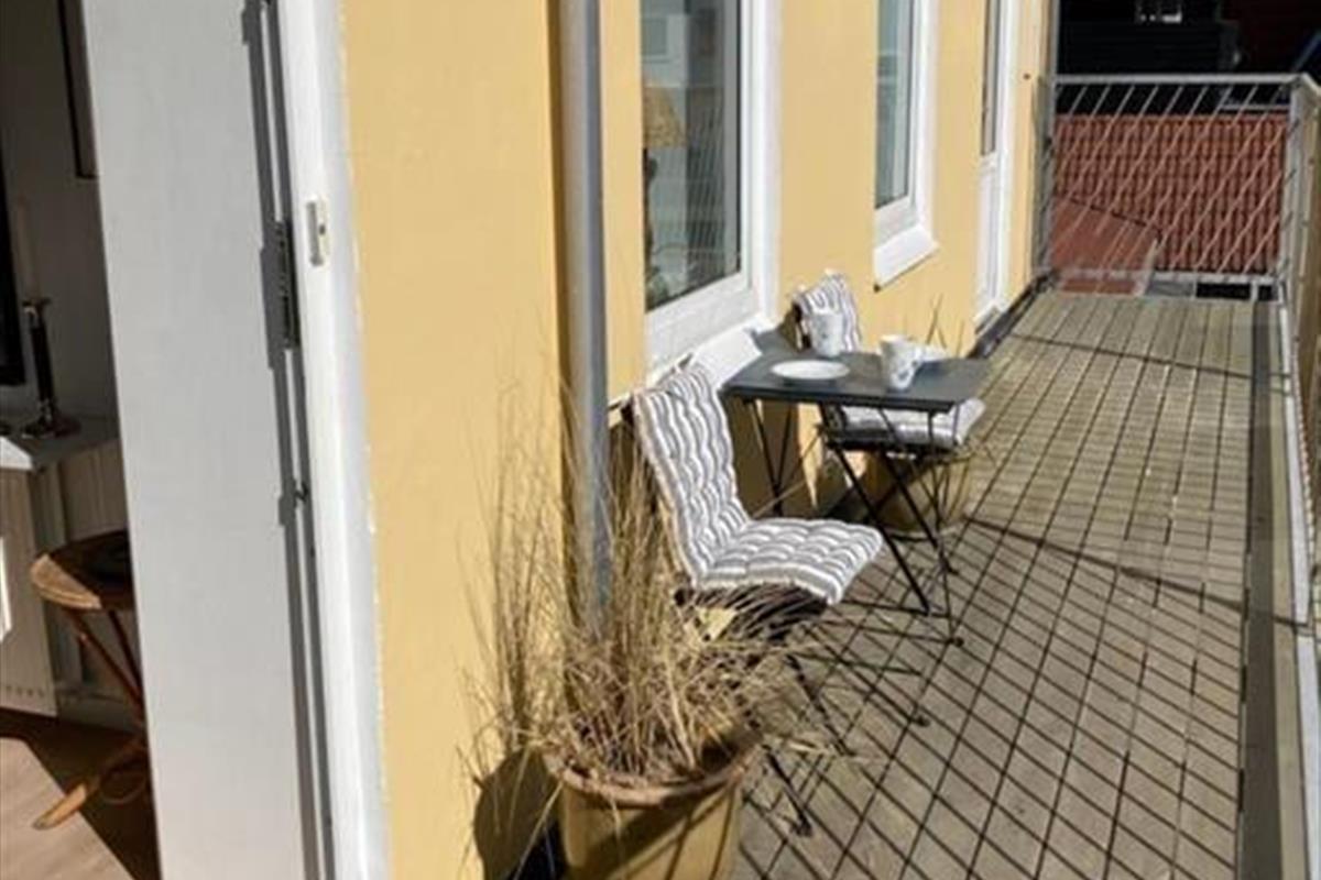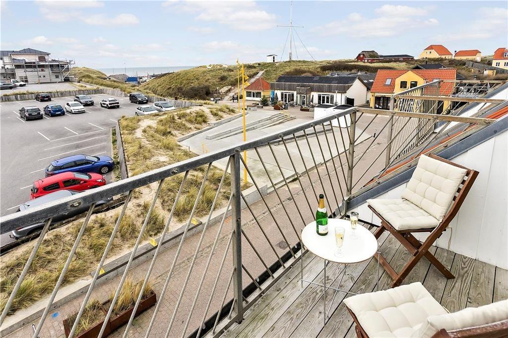 Scheint die Sommersonne draußen, können Sie die Glastüren des Wohnzimmers weit öffnen und direkt auf den Balkon treten. Hier können Sie sich in den Gartenmöbeln niederlassen, ein kühles Getränk genießen, den Meerblick bewundern und das gemütliche Ferienleben auf dem Platz unten beobachten. Der Strand ist so nah, dass Sie frische Meeresluft in der Nase spüren, wenn Sie dort sitzen – und vielleicht werden Sie sogar inspiriert, für ein schnelles Bad hinunterzugehen, bevor Sie zum entspannten Leben auf dem Balkon zurückkehren. Der nächste Ladepunkt für Elektroautos befindet sich 100 Meter entfernt.