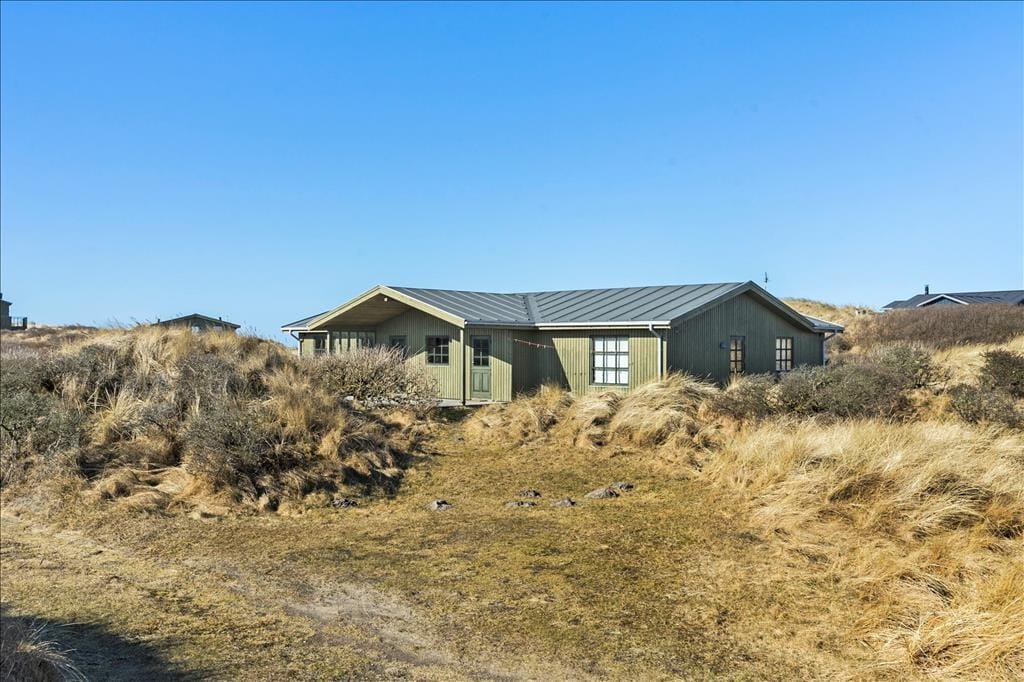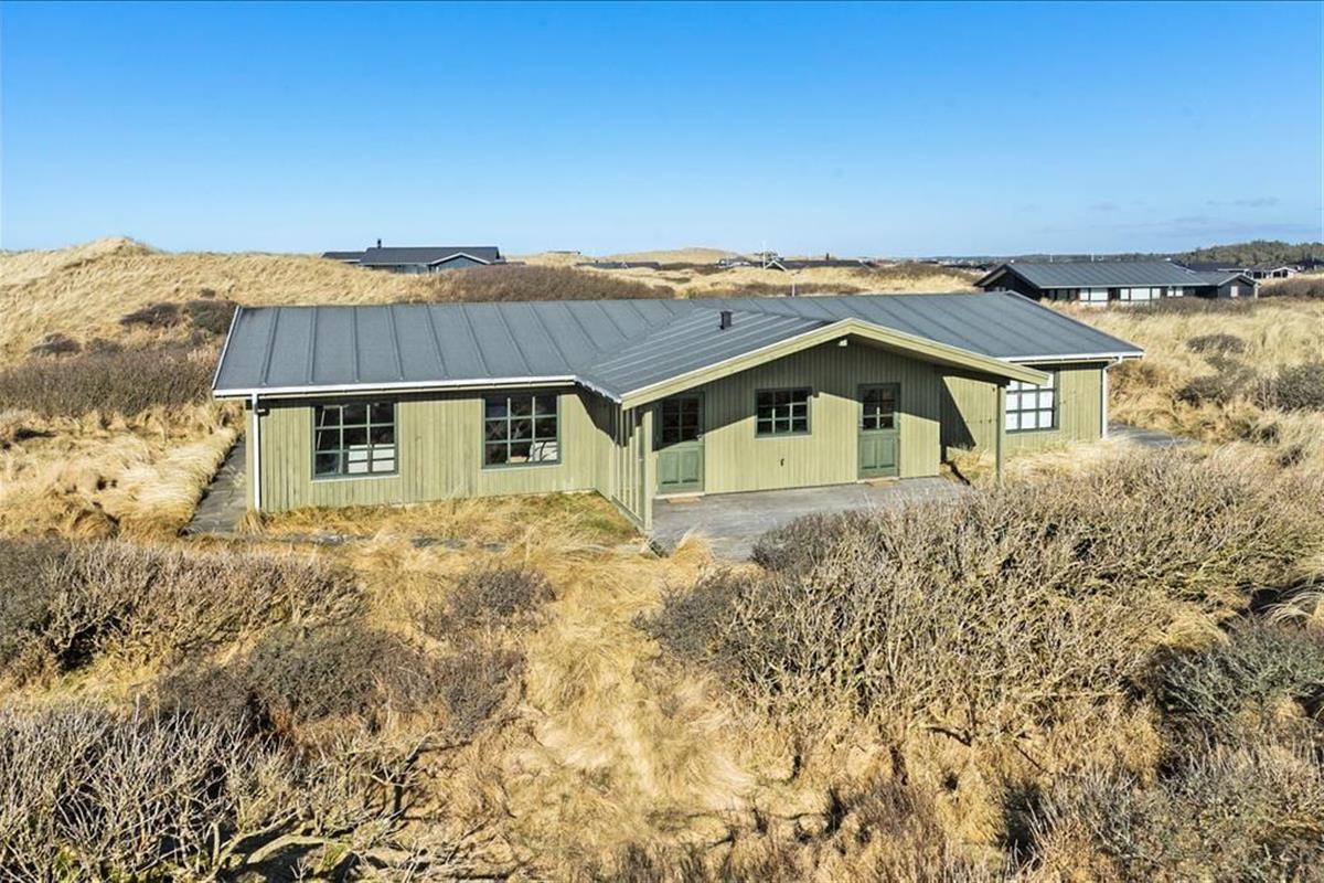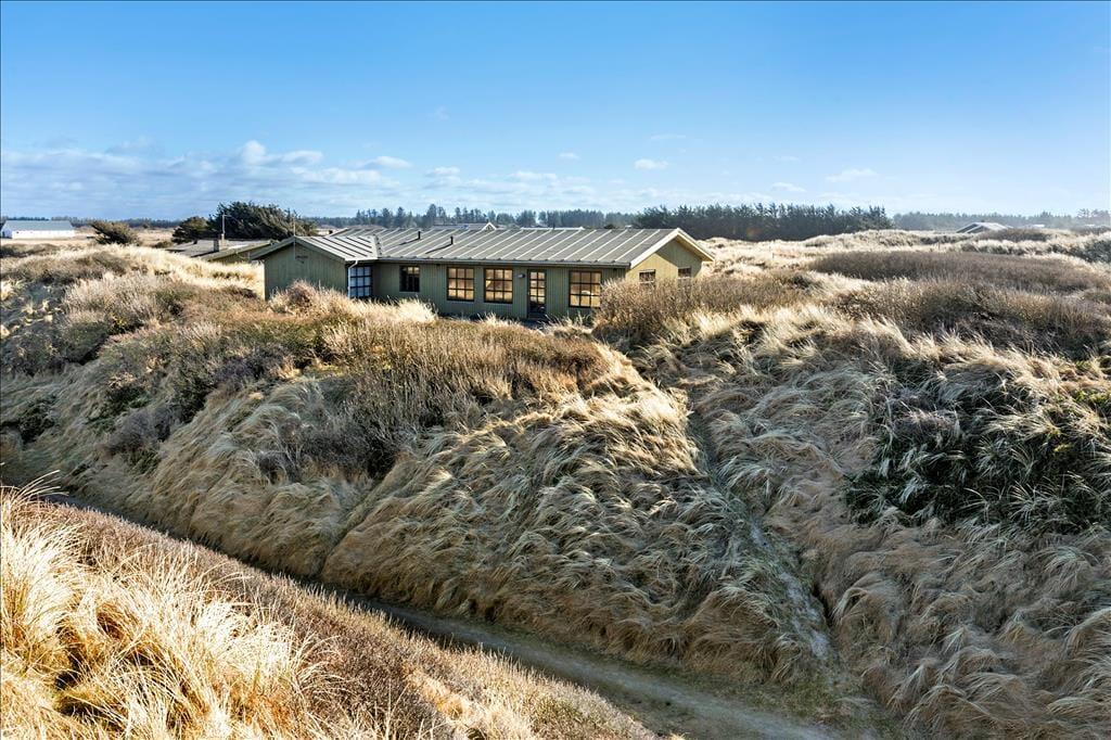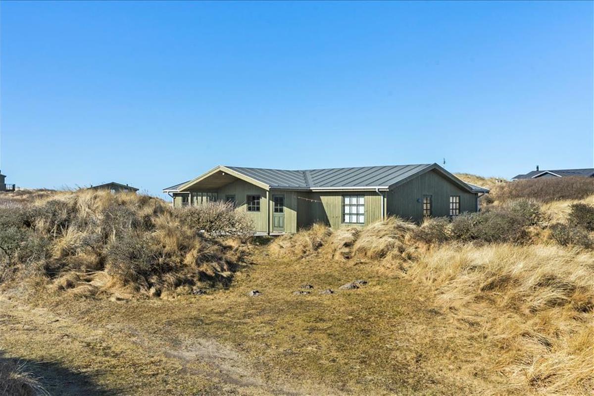 Das 600 m² große Dünengrundstück verschmilzt mit der umgebenden Landschaft, sodass das Leben im Freien mit freiem Zugang zur westjütländischen Natur stattfindet. In der Nähe der Straße kann das Auto geparkt werden, und rund um das Haus wurden mehrere schöne Terrassen angelegt, auf denen ihr grillen, in der Sonne liegen und den Urlaub in Ruhe genießen könnt.