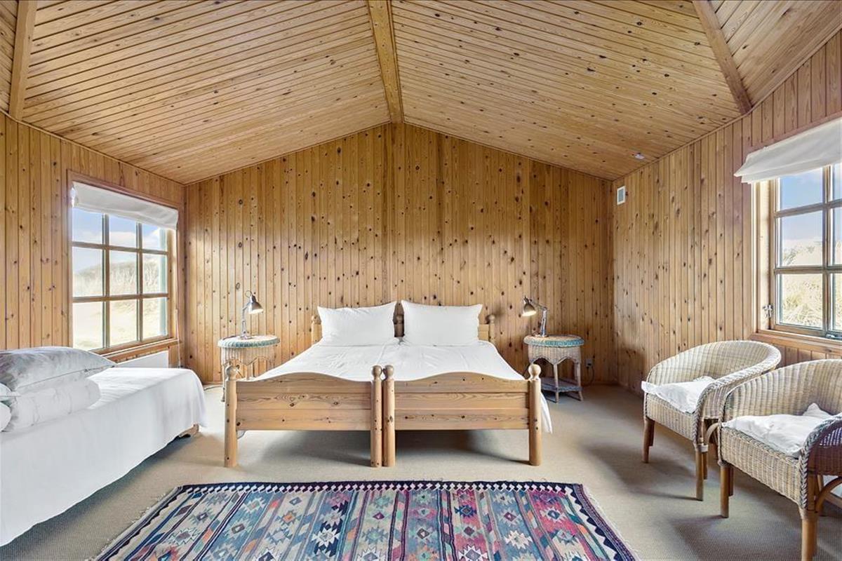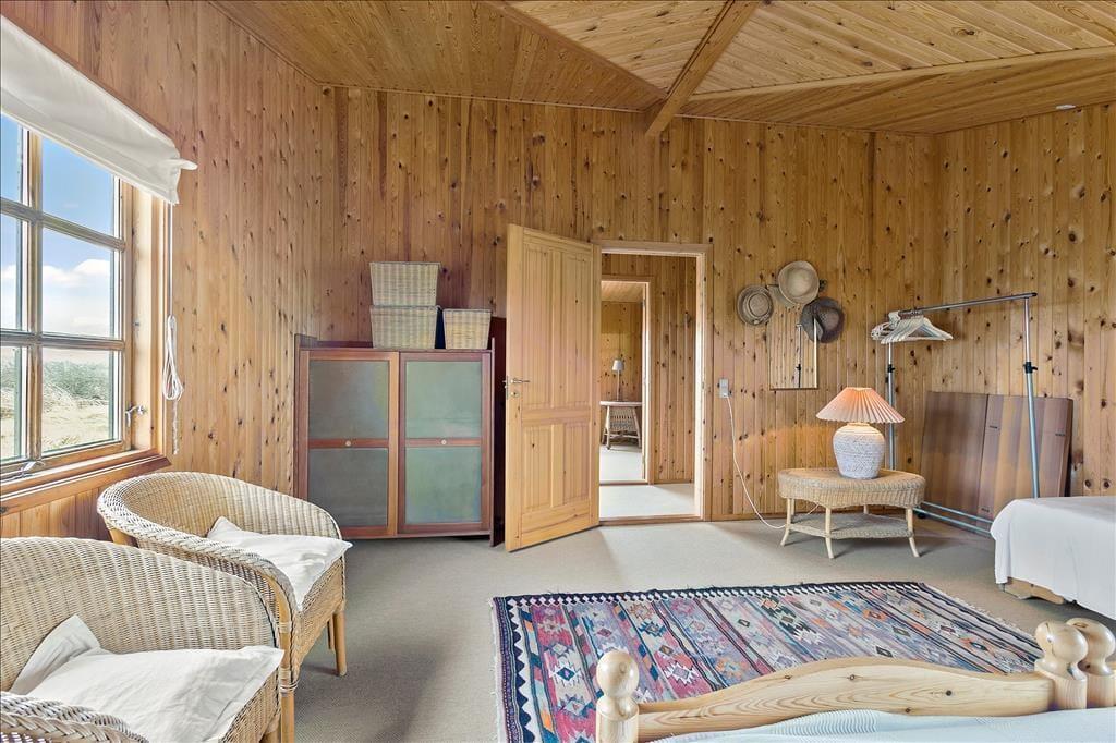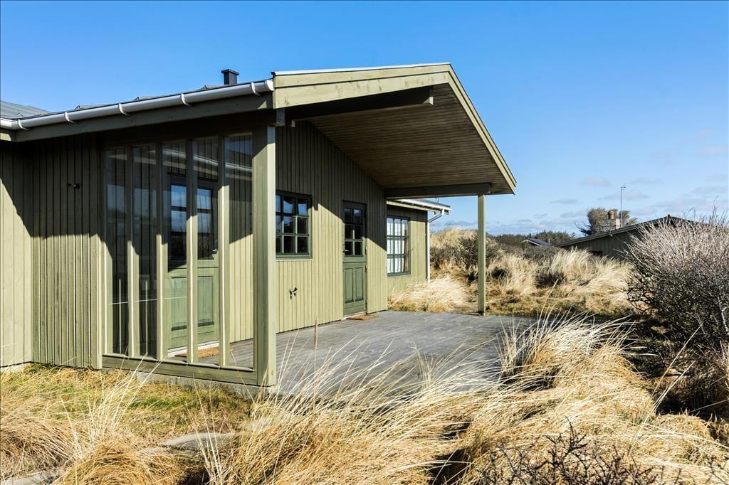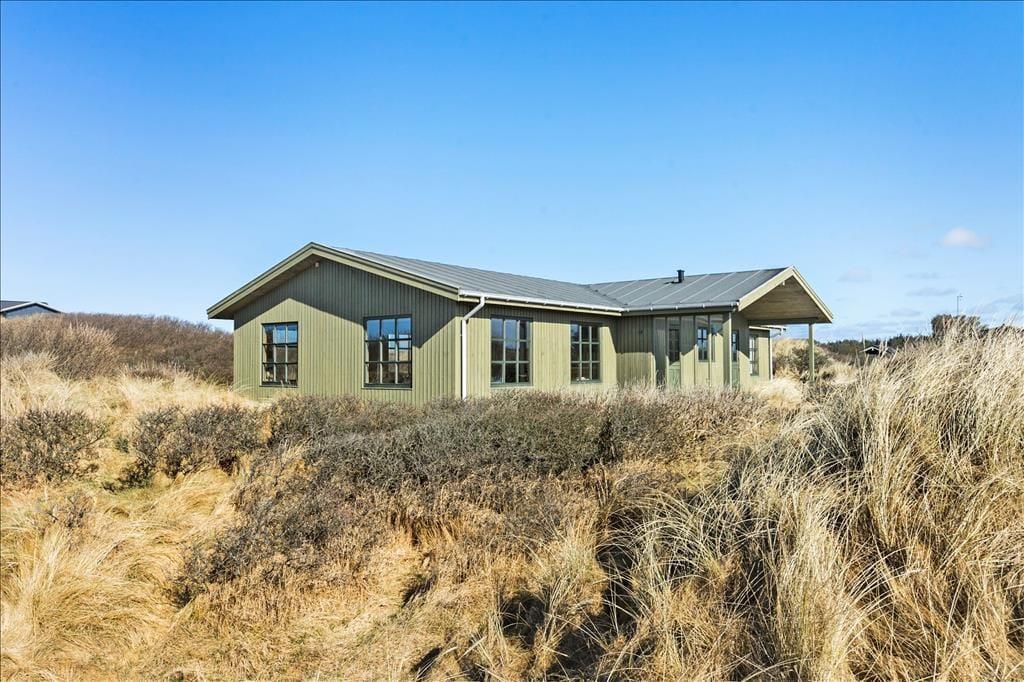 Das 600 m² große Dünengrundstück verschmilzt mit der umgebenden Landschaft, sodass das Leben im Freien mit freiem Zugang zur westjütländischen Natur stattfindet. In der Nähe der Straße kann das Auto geparkt werden, und rund um das Haus wurden mehrere schöne Terrassen angelegt, auf denen ihr grillen, in der Sonne liegen und den Urlaub in Ruhe genießen könnt.