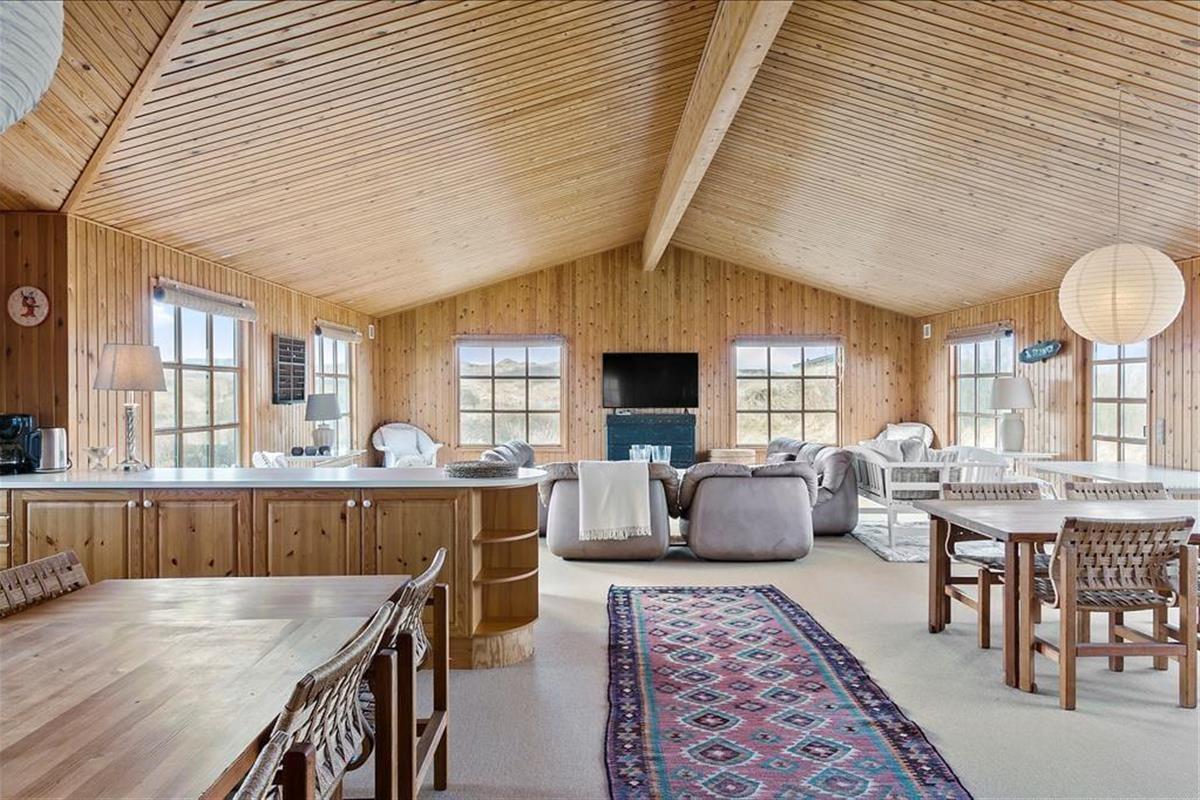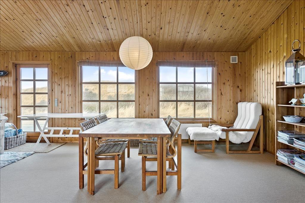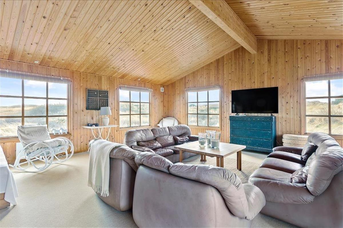 Ihr erhaltet einen schönen Rahmen für euren Urlaub, wenn er in diesem großen und gut gepflegten Holzferienhaus stattfindet. Durch die Fenster könnt ihr direkt auf die sanften Seegraswellen und weichen Dünen blicken, und nur 100 Meter entfernt warten der Løkken Strand und die Nordsee.