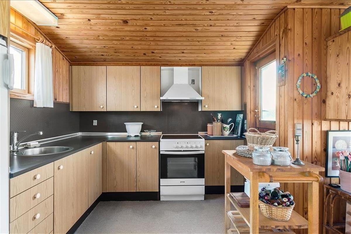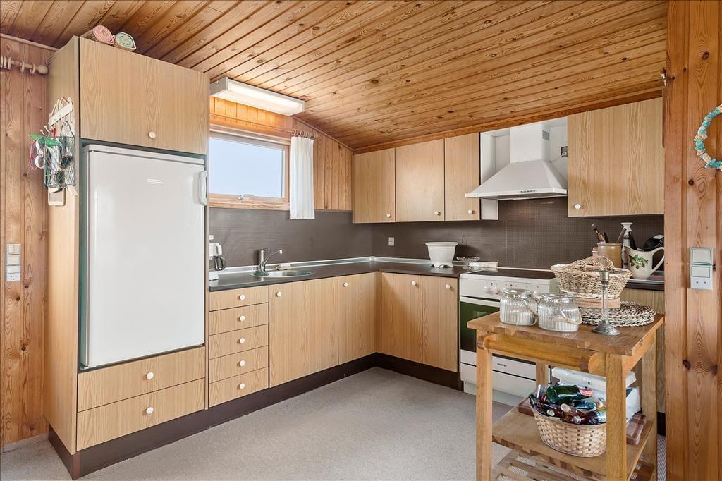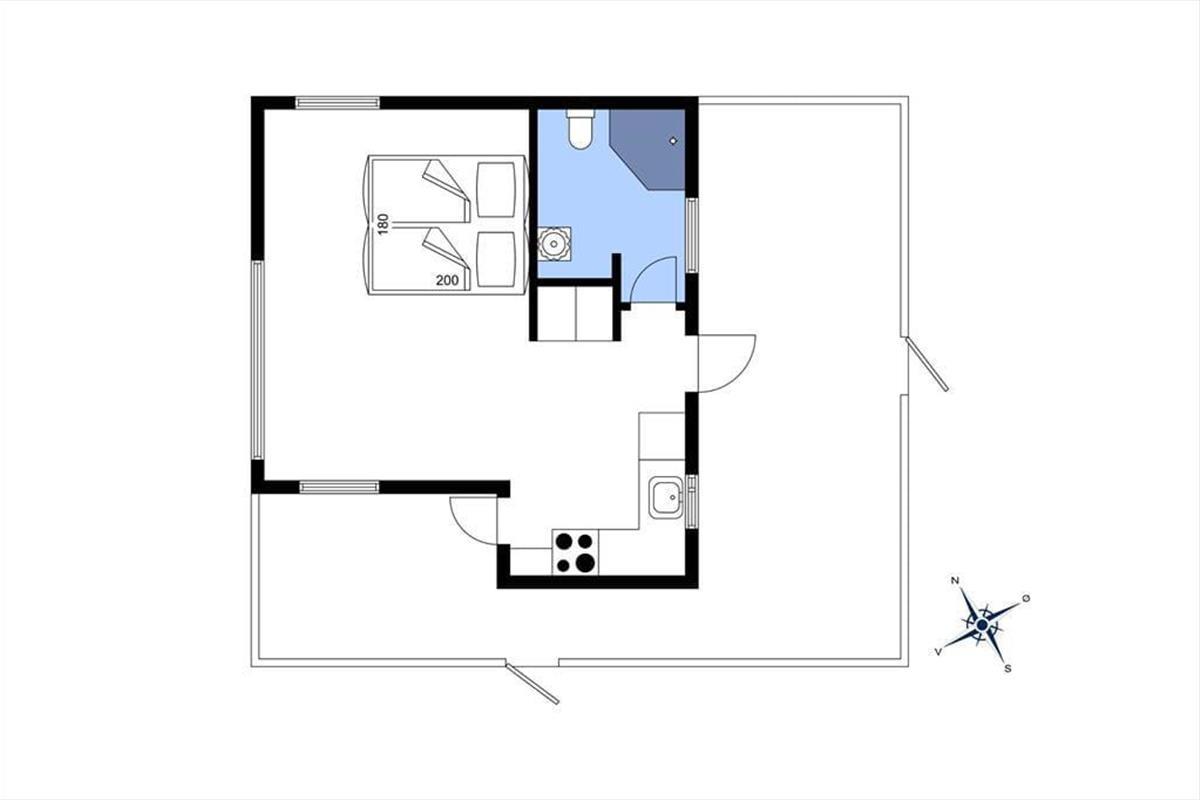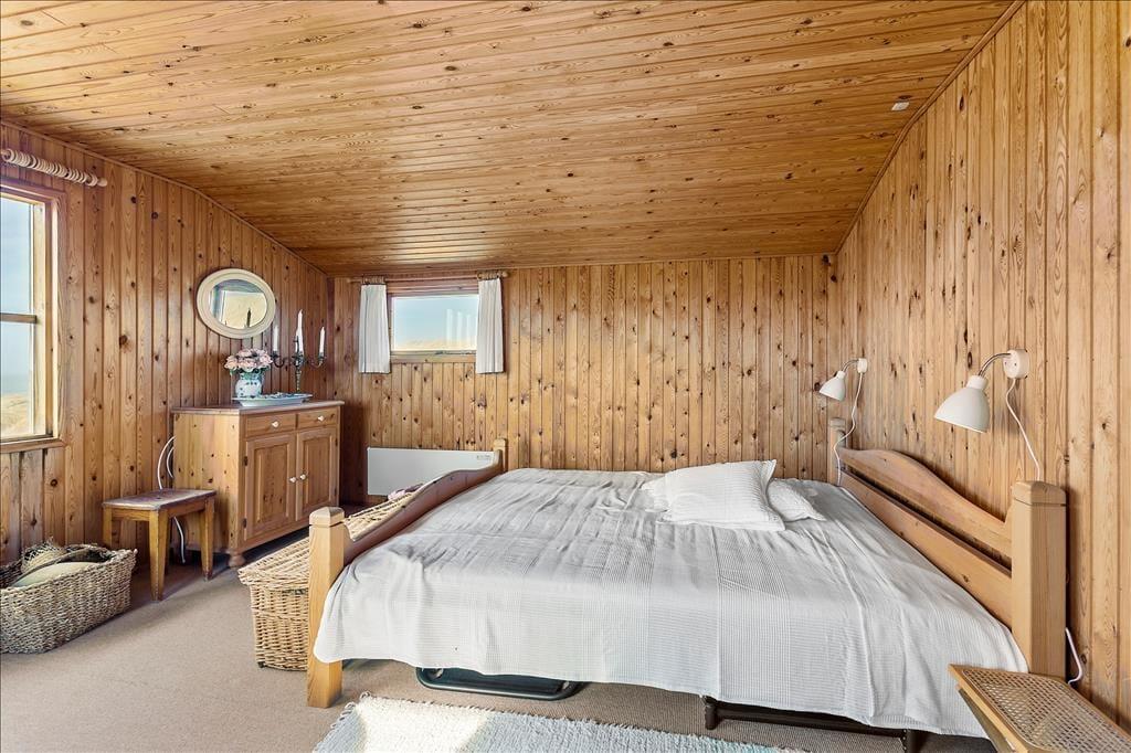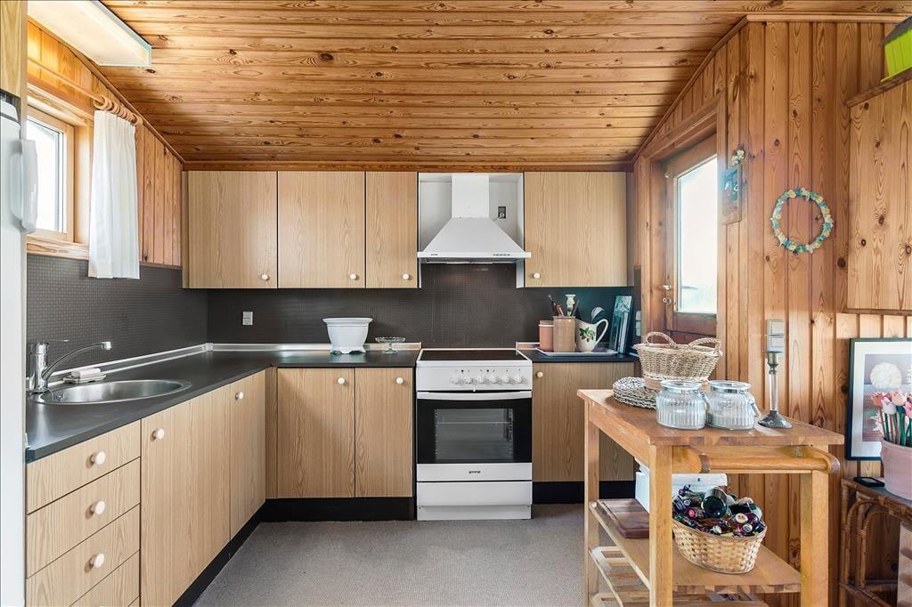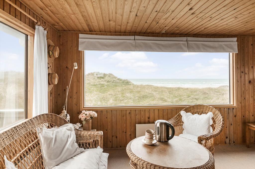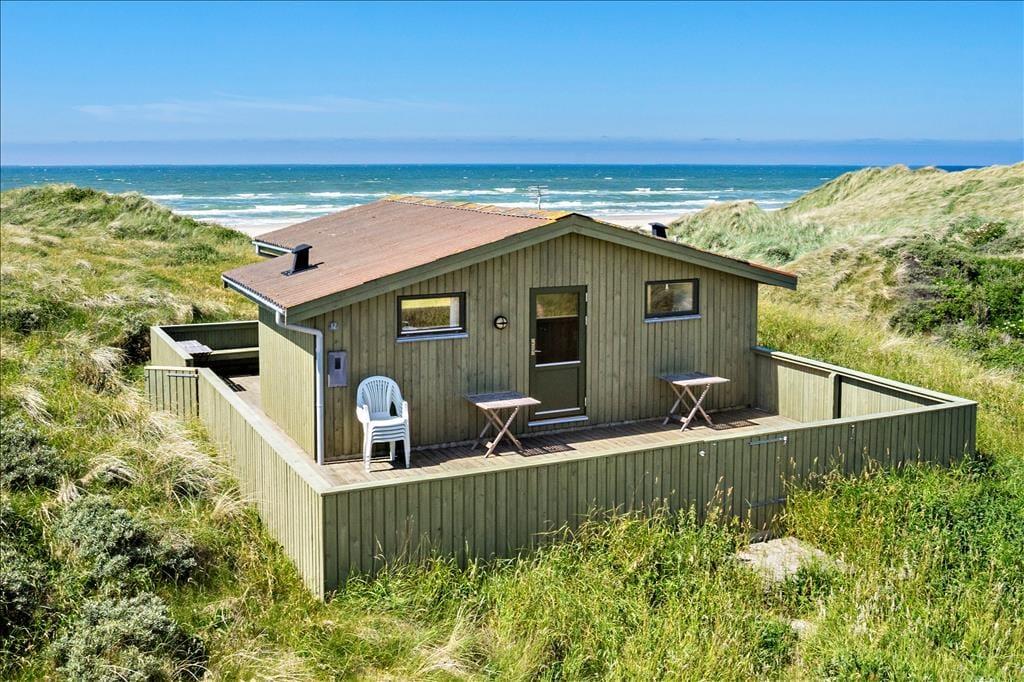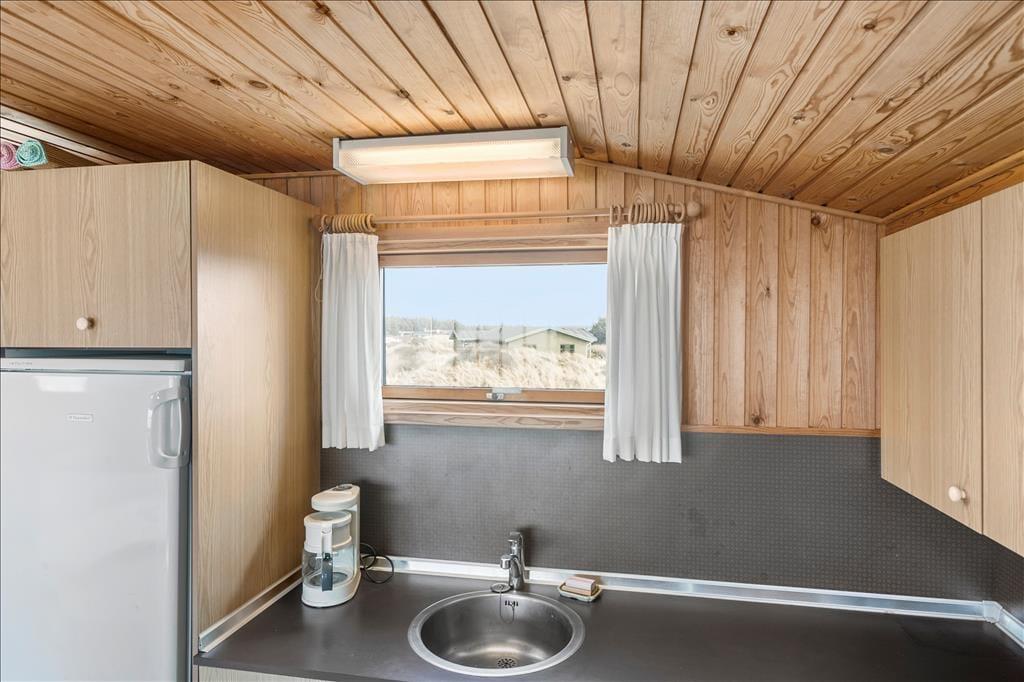 Das gepflegte Ferienhaus gehört mit seinen 36 m² nicht zu den größten auf dem Markt, aber genau das macht den Charme aus, wenn Sie Ihre Tage hier an der Küste verbringen. Drinnen finden Sie alles, was ein richtiges Ferienhaus ausmacht: Die Einrichtung ist einfach und charmant, und die gemütliche Atmosphäre lädt zu entspannten Lesestunden, Kartenspielen, tiefgründigen Gesprächen und generell einem Urlaub im ruhigen Tempo ein. Der Grundriss umfasst ein Badezimmer mit Dusche sowie ein Schlafzimmer, ein Wohnzimmer und eine Küche, die in einem offenen Wohnbereich vereint sind. Die Fenster lassen Tageslicht aus allen Himmelsrichtungen herein und bieten einen Blick auf die schöne Umgebung – am besten jedoch ist der Blick nach Westen, wo Sie auf das offene Wasser der Nordsee schauen können.