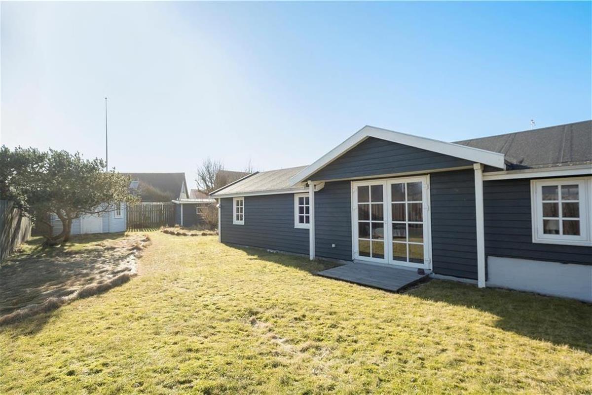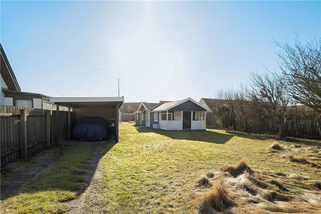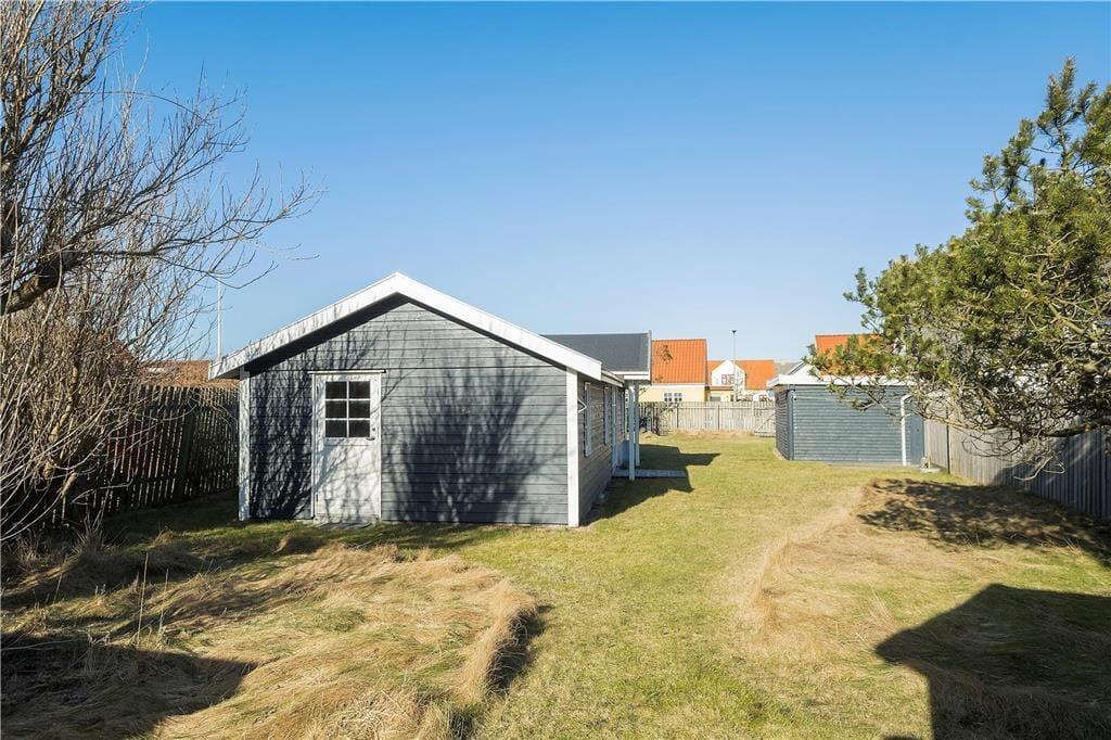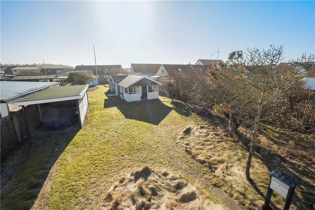 Das Ferienhaus liegt etwas zurückgesetzt von der Straße auf einem 655 m² großen Grundstück, das durch einen Zaun rundherum abgeschirmt ist. Das bedeutet, dass der Garten komplett geschlossen und recht ungestört ist – ein wunderbarer Ort, um die Sonne zu genießen, zu grillen oder auf der Rasenfläche zu spielen. Ein gemütlicher Aufenthaltsort ist die überdachte Terrasse, wo ihr bis spät in die Nacht sitzen könnt, während die Dunkelheit über Løkken hereinbricht.