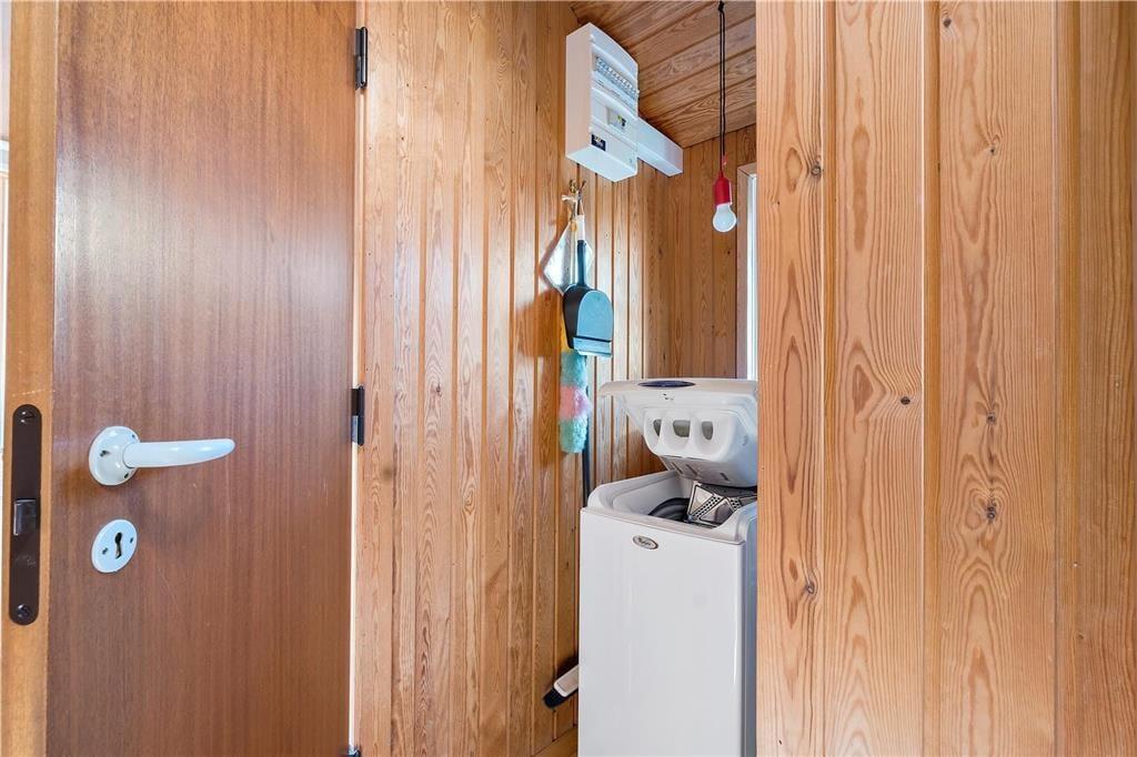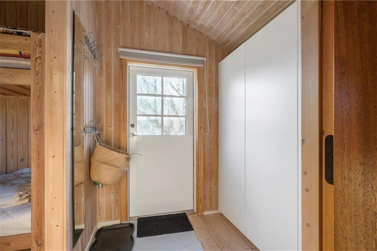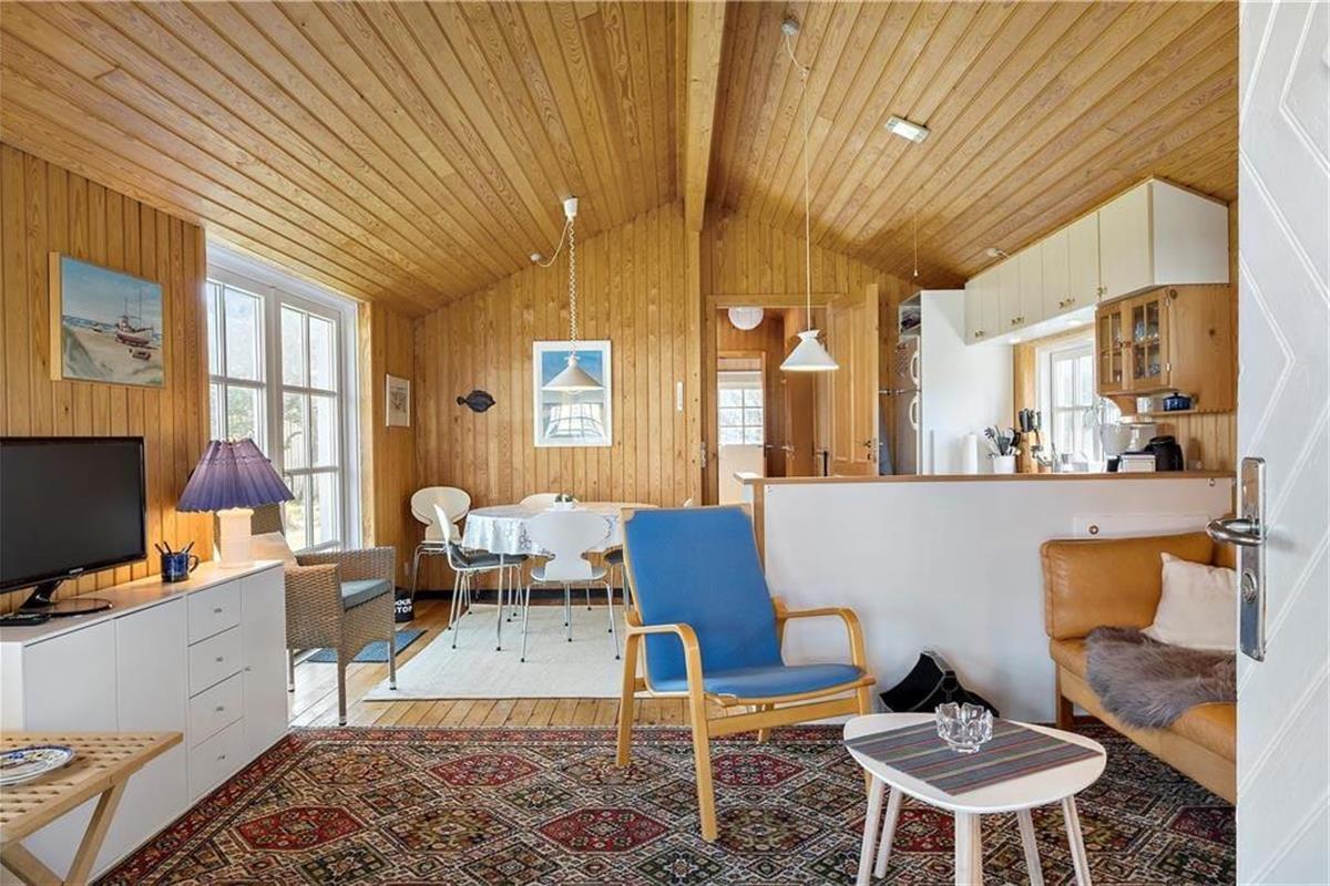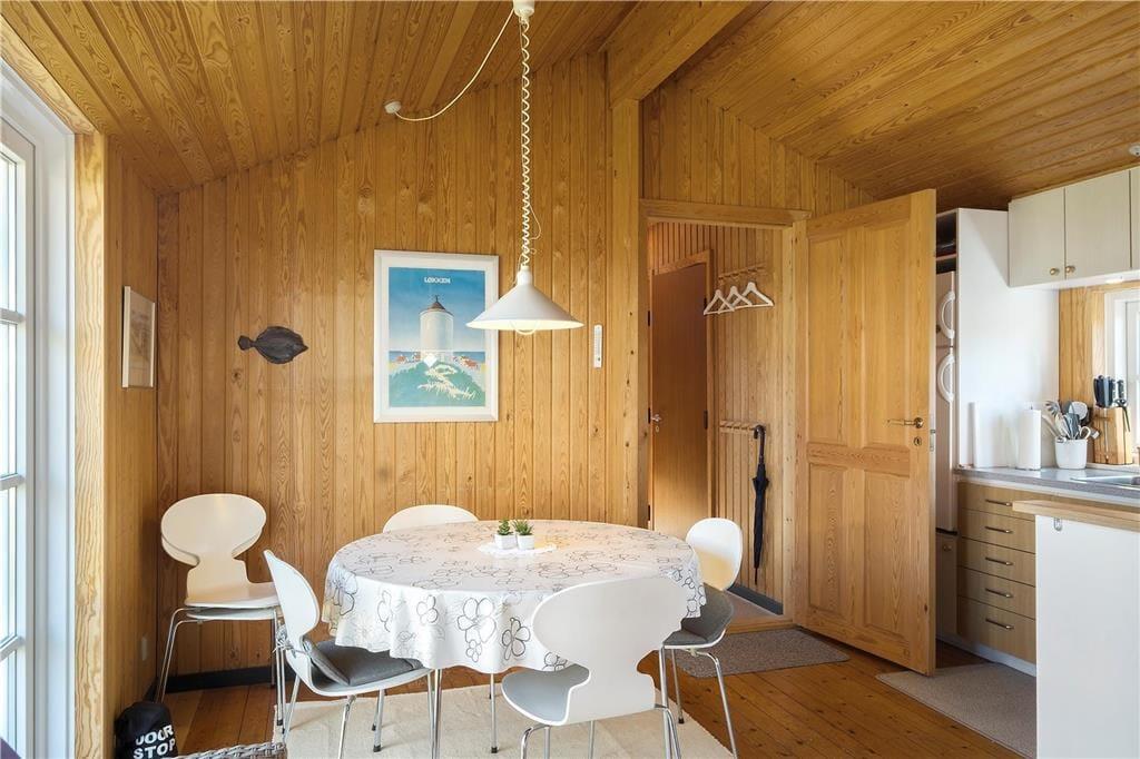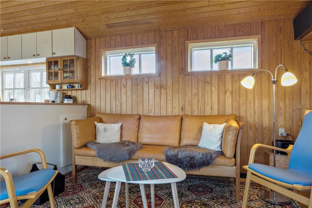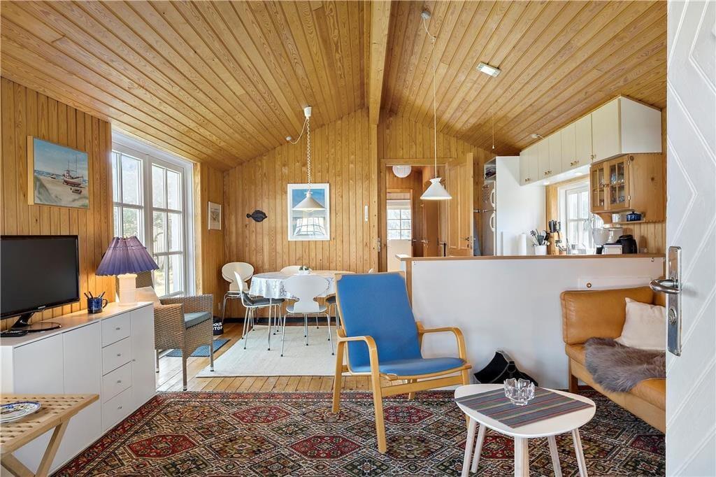 Im Inneren stehen euch 54 m² zur Verfügung, sodass das Ferienhaus nicht zu den größten auf dem Markt gehört. Aber wer braucht schon viele Quadratmeter, wenn der Rahmen so charmant ist und man ohnehin viel Zeit zusammen verbringen möchte? Am einen Ende des Ferienhauses befinden sich zwei Schlafzimmer, ein Waschraum, eine Toilette und eine separate Dusche, während das andere Ende aus einem gemütlichen Wohnzimmer mit integrierter Küche besteht. Mit Holzleisten an den Wänden, einer hohen Decke und Sprossenfenstern strahlt das Haus echte Sommerhausatmosphäre aus, und die Einrichtung trägt zur gemütlichen Stimmung bei.