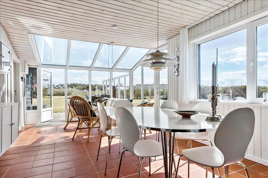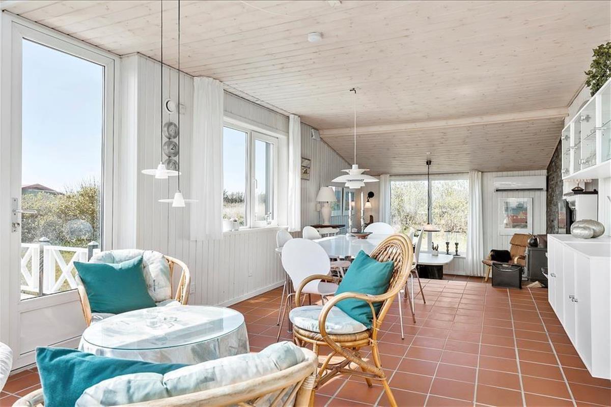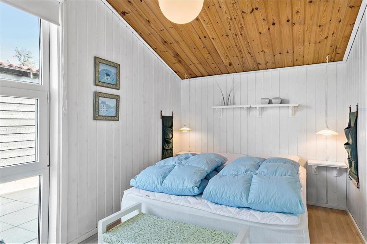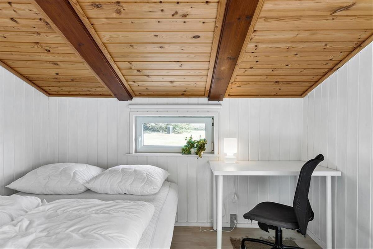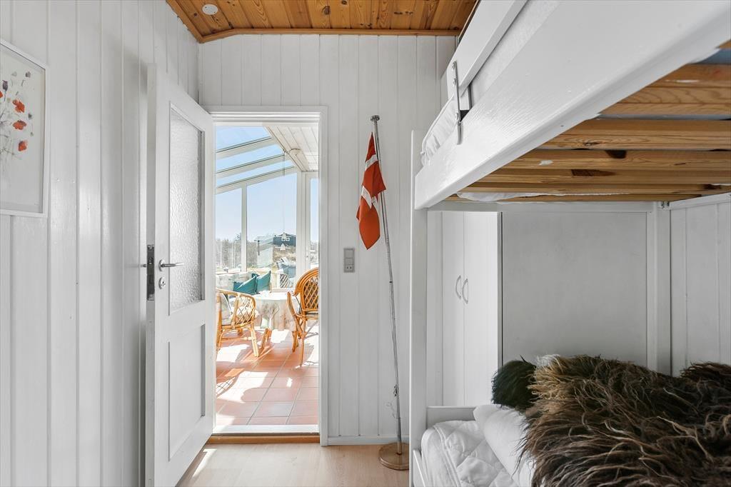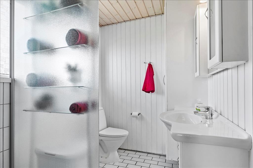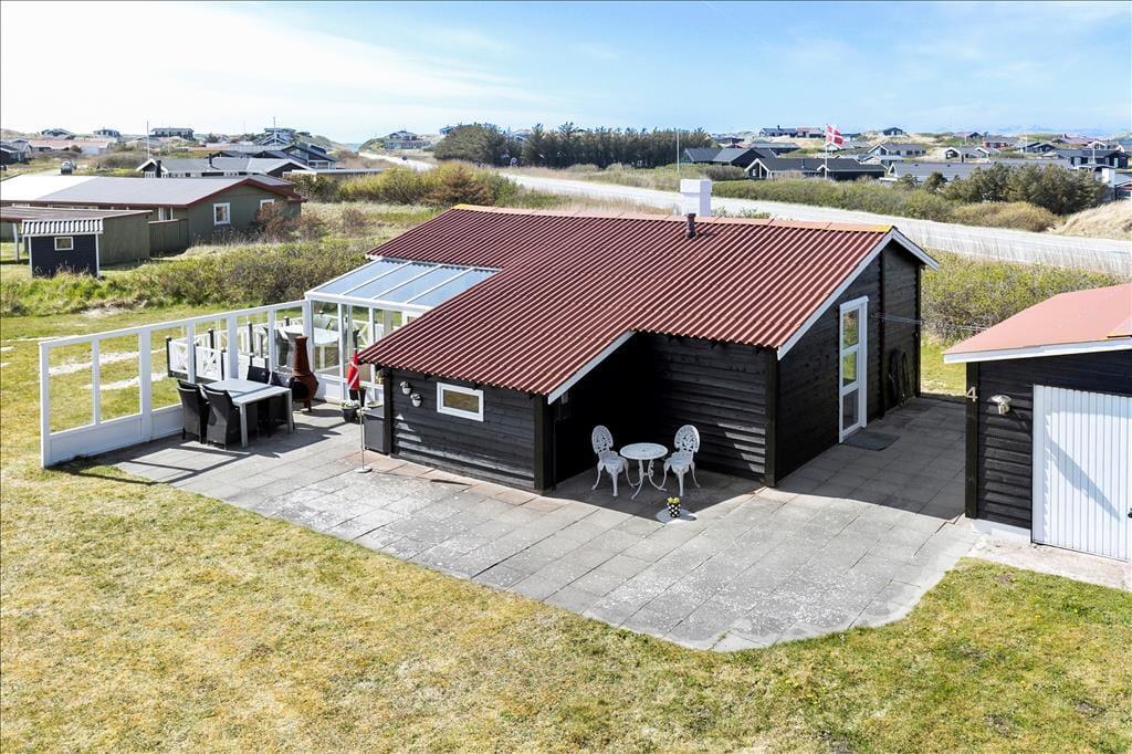 Mit dem Baujahr 1956 kann man es sicher als ein älteres Ferienhaus bezeichnen, aber im Laufe der Jahre wurde es gut gepflegt, sodass es gut erhalten und einladend wirkt. Drinnen können sechs Feriengäste es sich gemütlich machen – unter anderem im Wohnbereich, der aus einem niveaugetrennten Wohnzimmer und einer gut funktionierenden Küche besteht. Im Wohnzimmer steht ein Kaminofen, und nach Süden sorgt ein großes Fenster für zusätzliches Sonnenlicht während des Tages. Das Badezimmer des Ferienhauses ist hell, schlicht und funktional, und schließlich bietet das Haus drei Schlafzimmer, die jeweils mit Doppelbetten und einem Etagenbett ausgestattet sind.
