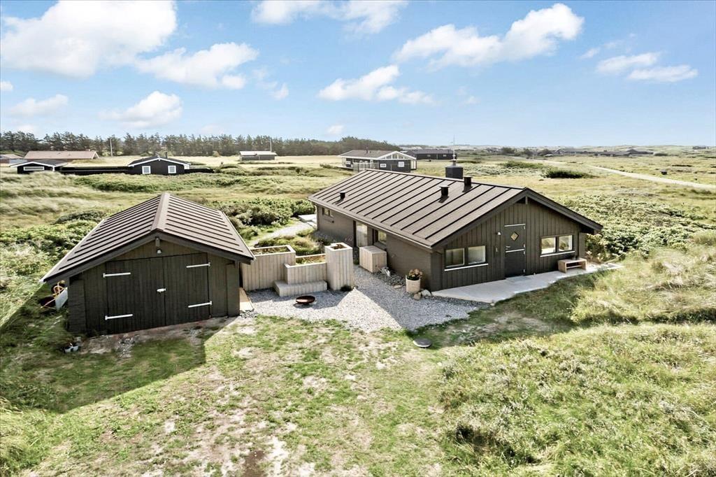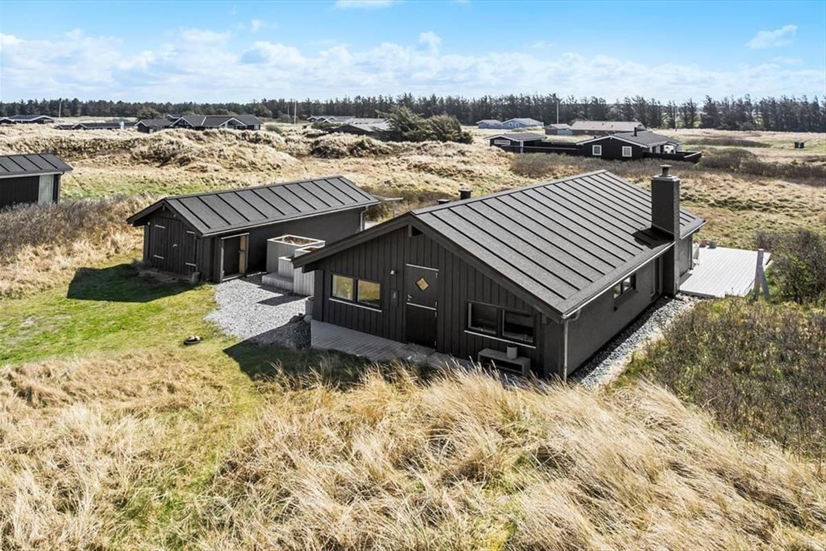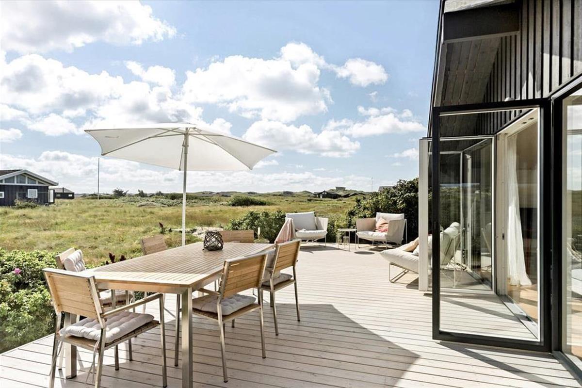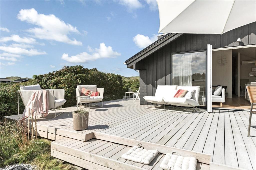 Draußen können Sie sich auf das Leben auf dem großen Naturgrundstück freuen, das sich mit der umliegenden Landschaft verbindet. Südlich des Ferienhauses befindet sich eine große Holzterrasse, die mit hochwertigen Gartenmöbeln sowie einem Grill ausgestattet ist, sodass Sie das Abendessen in der schönen und friedlichen Umgebung zubereiten können.