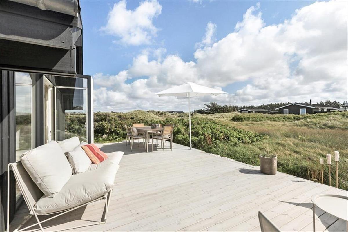 Dieses Ferienhaus wurde 2021 renoviert – und das Ergebnis ist äußerst zufriedenstellend! Daher können Sie sich auf einen Aufenthalt in hellen und schönen Innenräumen freuen, und draußen können Sie auf einer großen Holzterrasse mit Aussicht auf die wellenförmige Dünenlandschaft von Løkken in der Sonne entspannen.