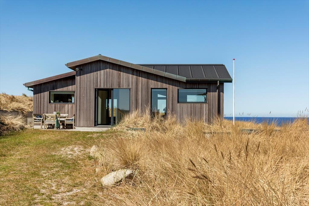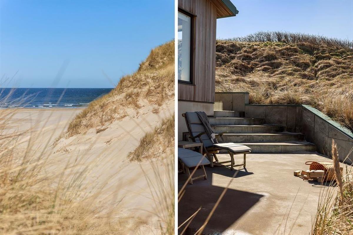 Das Ferienhaus befindet sich am Ende einer Sackgasse und in erster Reihe zur Nordsee auf einem großen Dünengrundstück. Direkt daneben führt ein Weg zum Strand, sodass es nur einen Augenblick dauert, bis Sie das Wasser erreichen, wenn der Anblick der blauen Wellen Sie zu einem Sprung ins Wasser verführt. Der breite Sandstrand ist ein wunderbarer Ort zum Spielen und für Strandspiele, und am Abend werden Sie mit den schönsten Sonnenuntergängen belohnt. Der Weg nach Løkken Stadt kann sowohl entlang der Küste als auch über die Straße führen – in jedem Fall sind es nur etwa zwei Kilometer bis zu Geschäften, Restaurants und dem lebhaften Stadtleben.