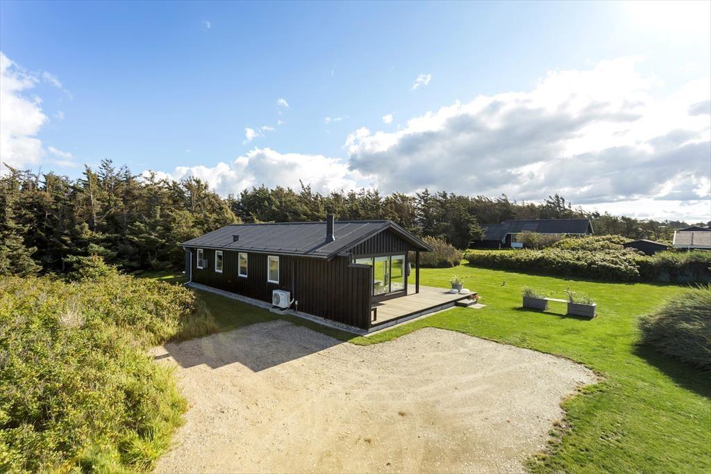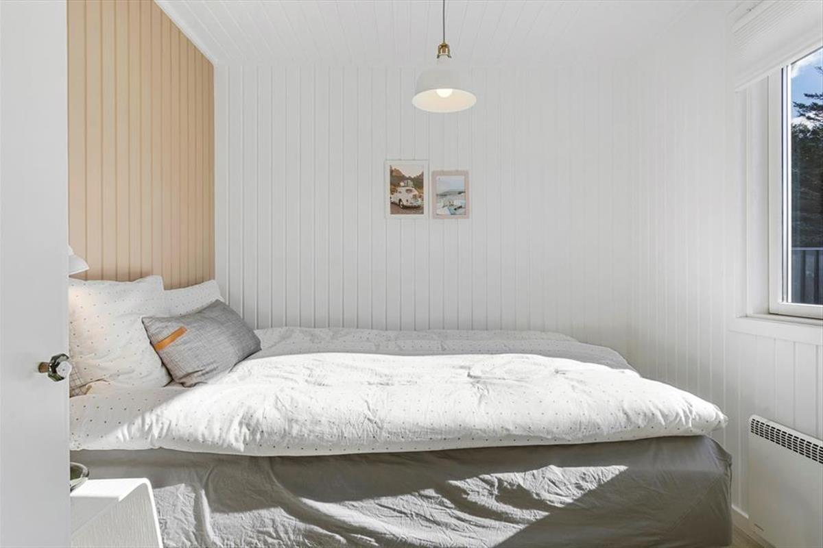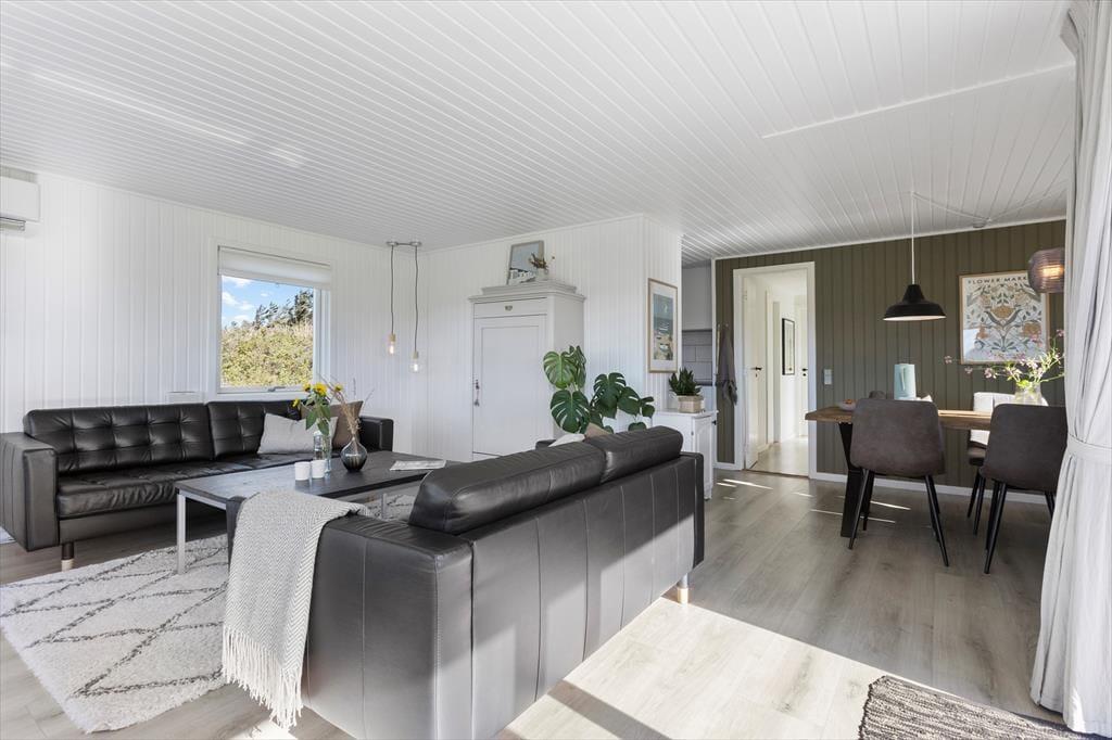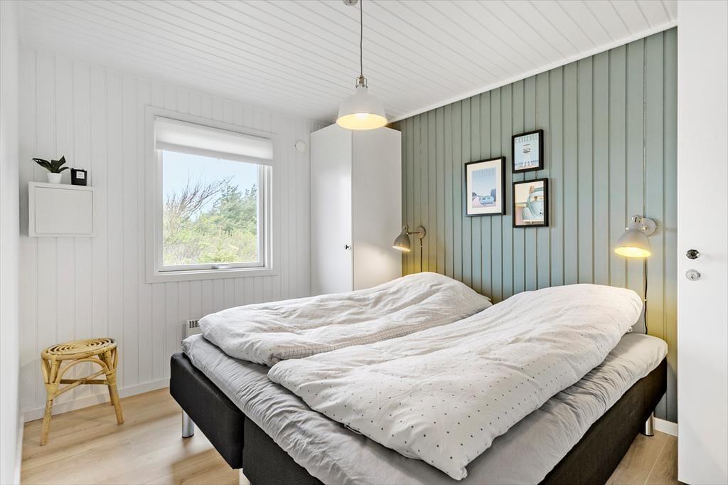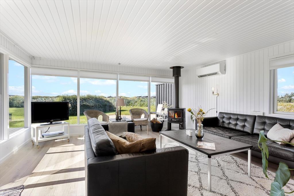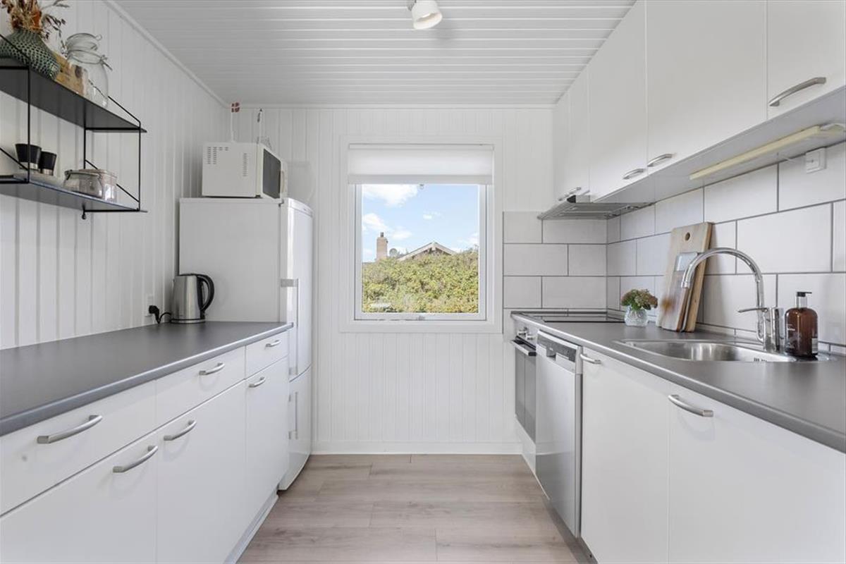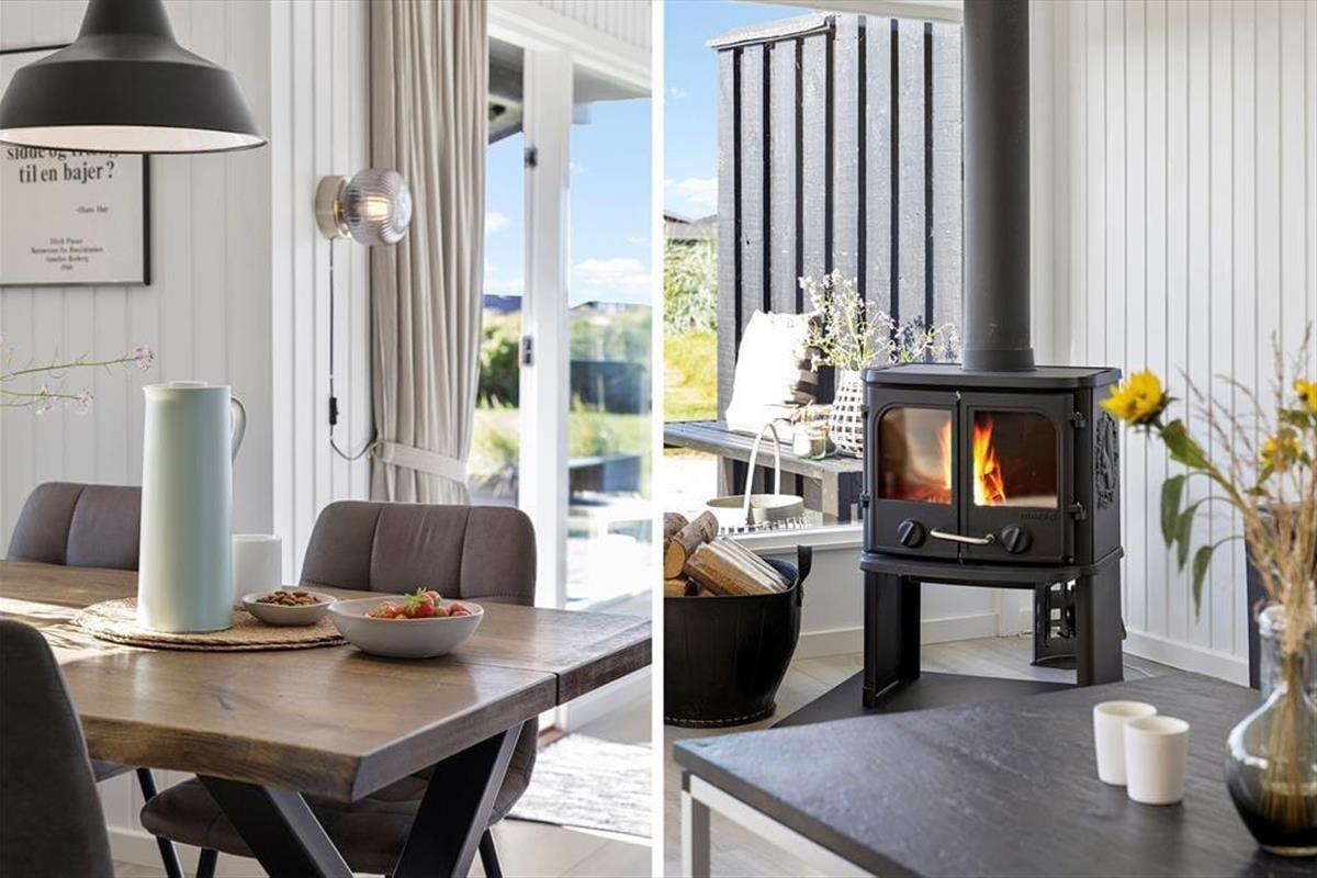 Die Modernisierung des Sommerhauses fand 2022 statt. Hier wurde eine helle Farbpalette verwendet und die passenden Möbelstücke ausgewählt. Der Kaminofen im Wohnzimmer trägt zur gemütlichen Atmosphäre bei, und wenn ihr gleichzeitig nach Westen auf die kleinen Dünen und hübschen Sommerhäuser der Umgebung blicken könnt, ist alles perfekt. Im Wohnzimmer gibt es zudem eine Wärmepumpe mit Kühlfunktion sowie einen Flachbildfernseher mit Satellitenanschluss und Chromecast. Die Küche ist hübsch, gut ausgestattet und bietet viel Arbeitsfläche. Das Haus verfügt außerdem über ein Badezimmer mit Dusche, Fußbodenheizung und Waschmaschine. Schließlich befinden sich drei gute Schlafzimmer im östlichen Teil des Hauses.